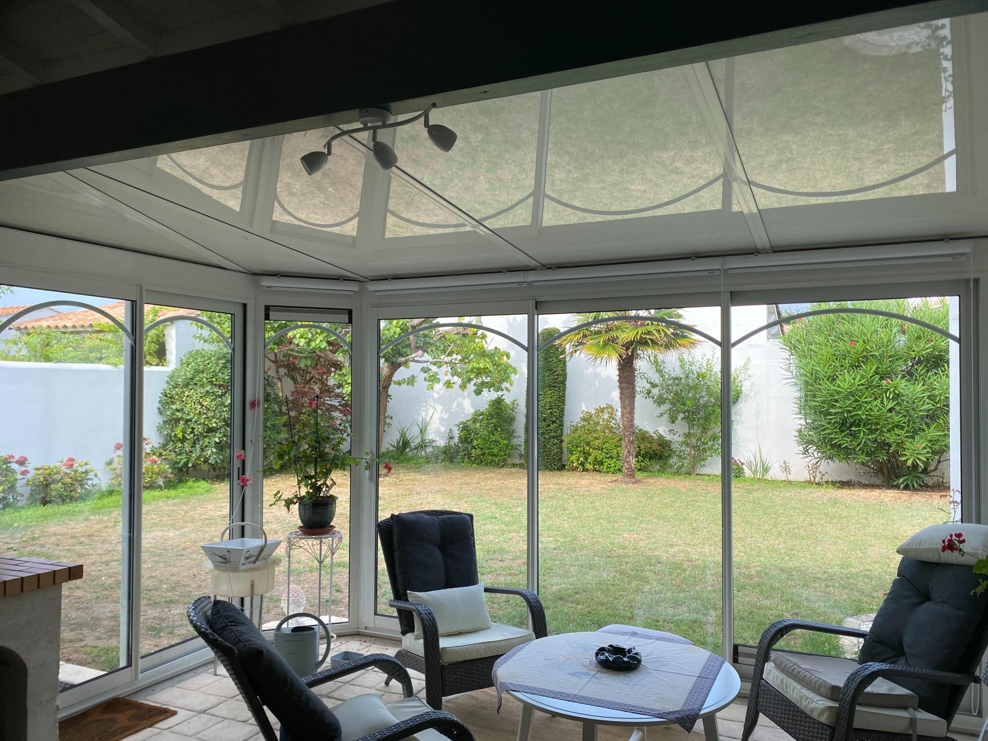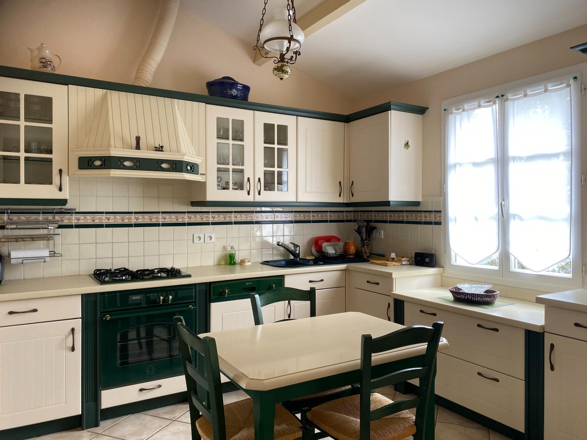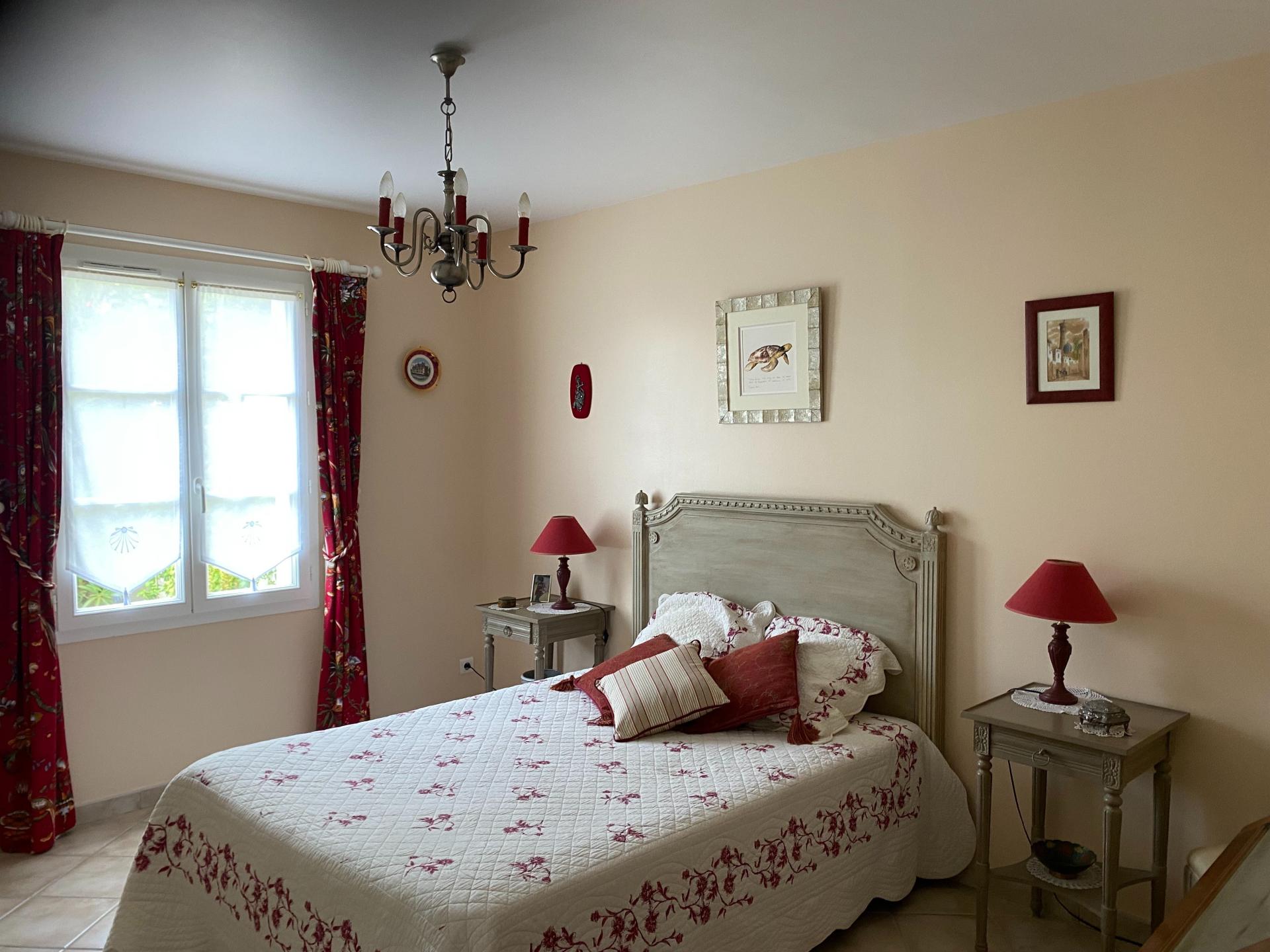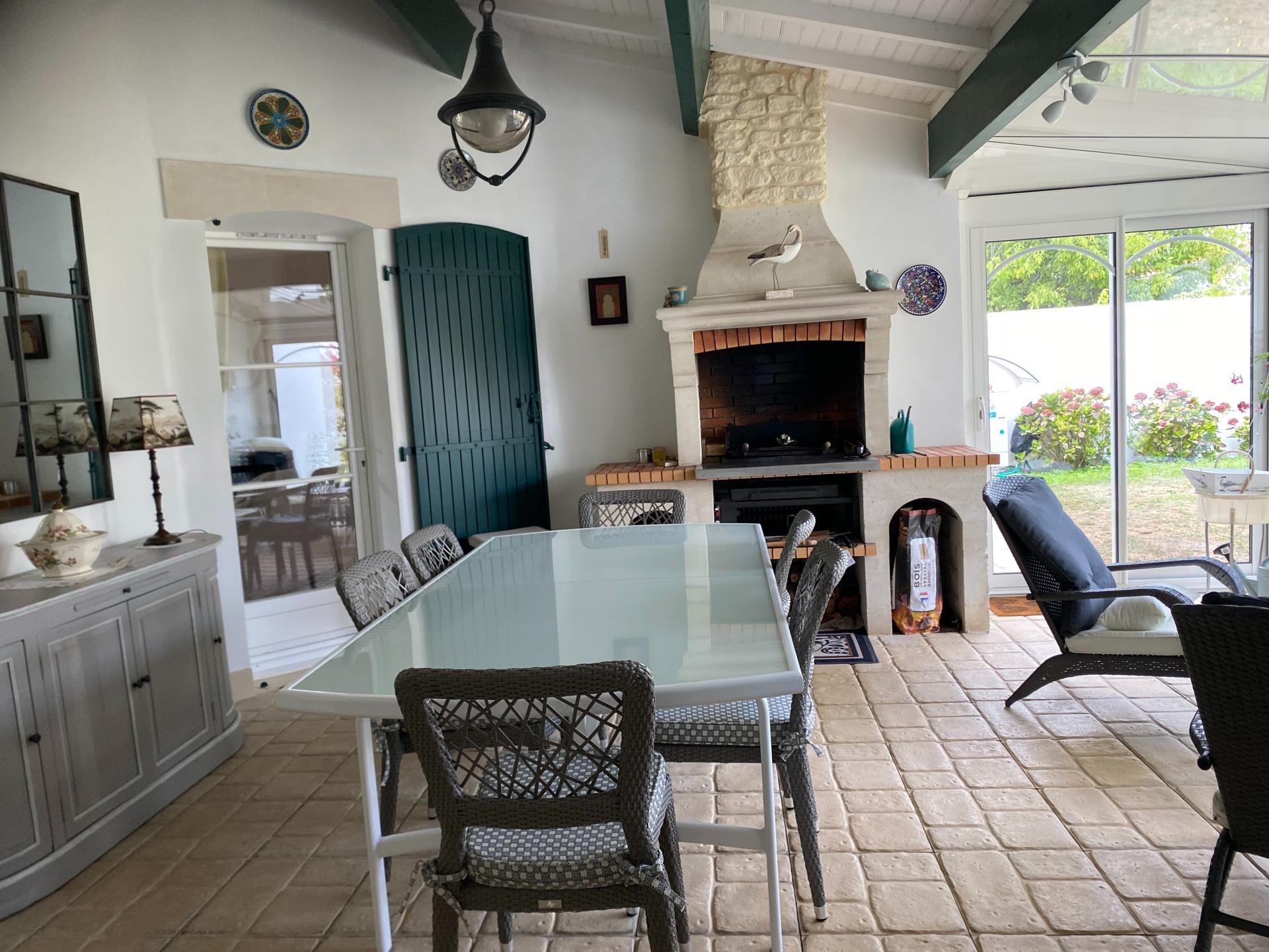 Au calme et à proximité de la piste cyclable Maison harmonieuse de type rétaise, construite dans les règles de l'art, double exposition est/ouest Celle-ci comprend dans la partie jour, une belle Pièce de Vie avec lumière traversante (47m2), cheminée foyer ouvert, plafond haut, sous rampant avec poutres, la Cuisine aménagée et équipée électro-ménager NEFF, donne sur une grande terrasse avec store à banne électrique, Le hall avec placard dessert la partie nuit comprenant 3 grandes Chambres (2 avec placard), Salle d'eau, Salle de bains & 2è WC Une véranda (option habitable) avec barbecue (30M2) donne sur le terrain ensoleillé, sans vis à vis & piscinable Le garage avec l'accès à la Cuisine et au terrain permet de stationner 2 voitures + vélos et de nombreux rangements Assainissement collectif Chauffage au sol avec PAC réversible et contrôlable à distance Domotique Connexion à la fibre Coût total énergétique 1340/1860€ Taxe foncière 1630 € Propriétaires soigneux N'hésitez pas à me joindre 7/7 de 8h à 20h Rendez-vous visite possible 7/7 de 9h à 18h