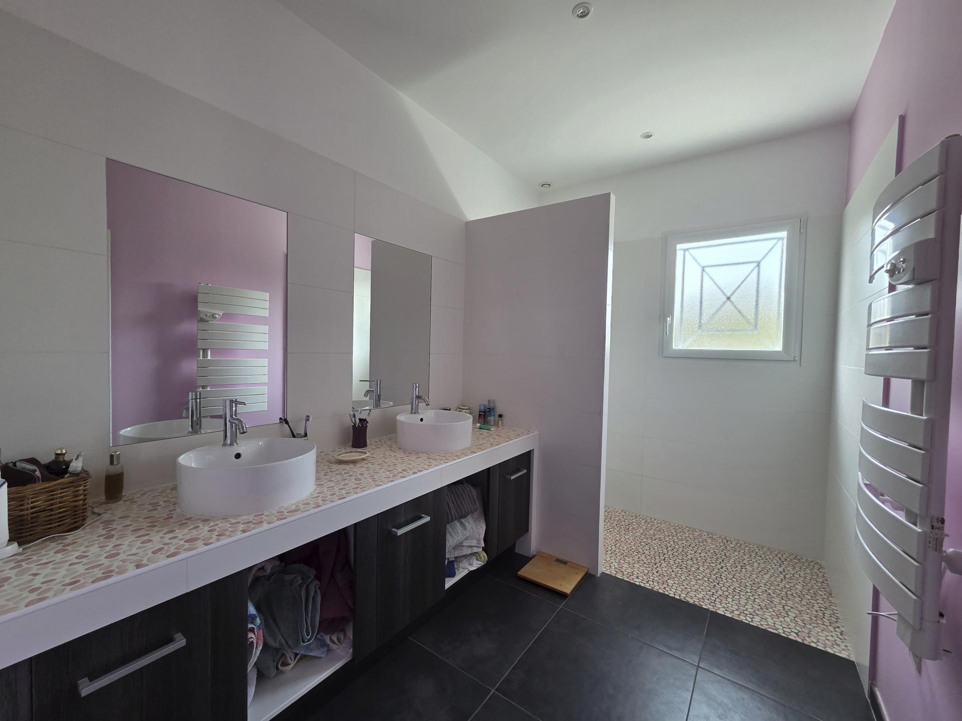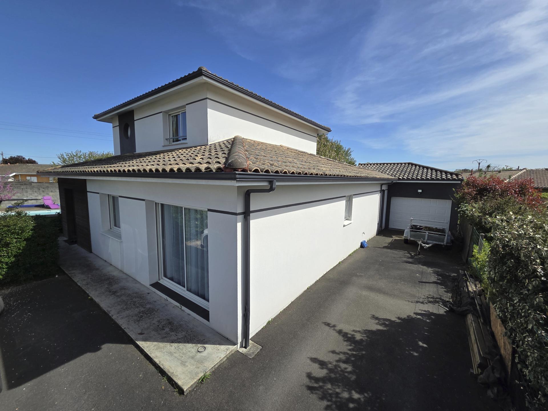 169 m² lumineux avec 5 chambres, 2 en RDC, piscine chauffée, garage, jardin sans vis-à-vis, proche commodités.