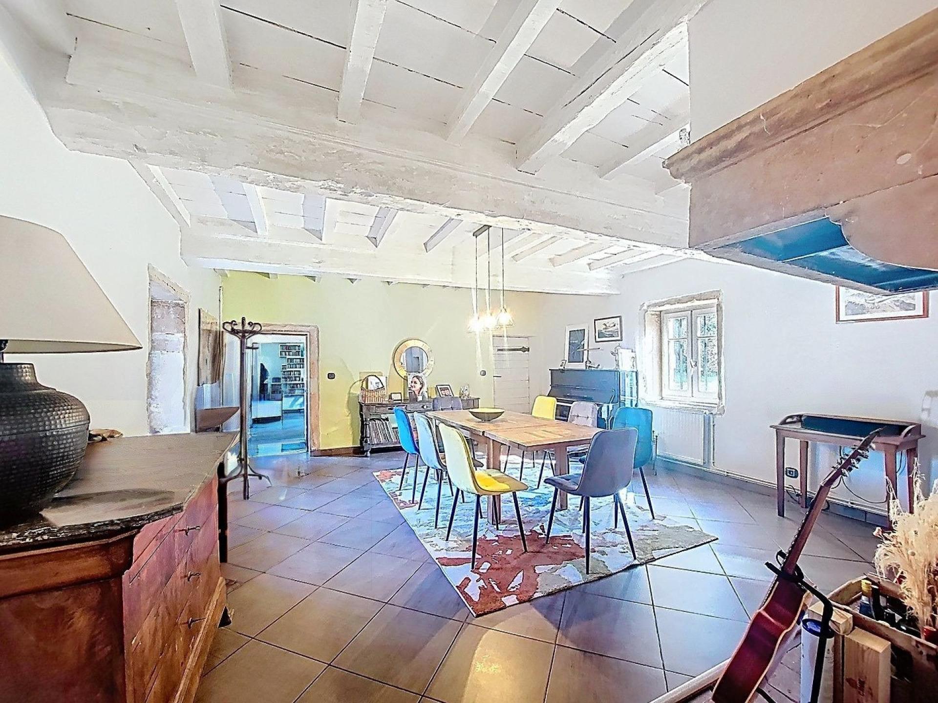 À Messimy-sur-Saône, au calme , cette ancienne ferme de plus de 400 m², entièrement rénovée, prend place au cœur d’un parc arboré de 3 400 m². Elle se compose d’une maison principale et d’un gîte indépendant aménagé dans une ancienne grange, offrant de multiples possibilités : grande famille, chambres d’hôtes, gîte touristique… La maison principale séduit par ses volumes, son charme préservé (poutres, matériaux d’origine) et ses pièces de vie chaleureuses : salle à manger avec cheminée d’époque, cuisine aménagée avec espace repas, salon accueillant, bibliothèque cosy et véranda ouverte sur le parc, idéale en toute saison. La véranda devient une vraie pièce à vivre, tournée vers le parc, permettant de savourer l’extérieur en toute saison. À l’étage, quatre chambres spacieuses, dont deux en suite, garantissent confort et autonomie. Le gîte, accessible par une entrée indépendante, offre une vaste pièce de vie avec cuisine ouverte mettant en valeur l’authenticité de la grange rénovée, complétée par deux élégantes suites à l’étage. L’ensemble dispose également de dépendances utiles : bureau, atelier, buanderie...pensés pour une gestion fluide du quotidien ou d’une activité touristique. À l’extérieur, le parc paysager constitue un véritable havre de paix : essences variées, espaces soignés, cour intérieure au charme authentique et piscine creusée avec terrasse bois invitant à la détente. Une propriété rare, mêlant cachet, volumes, modernité et potentiel, au cœur de Messimy-sur-Saône.