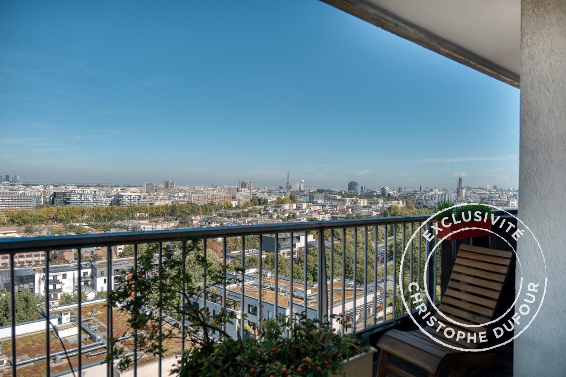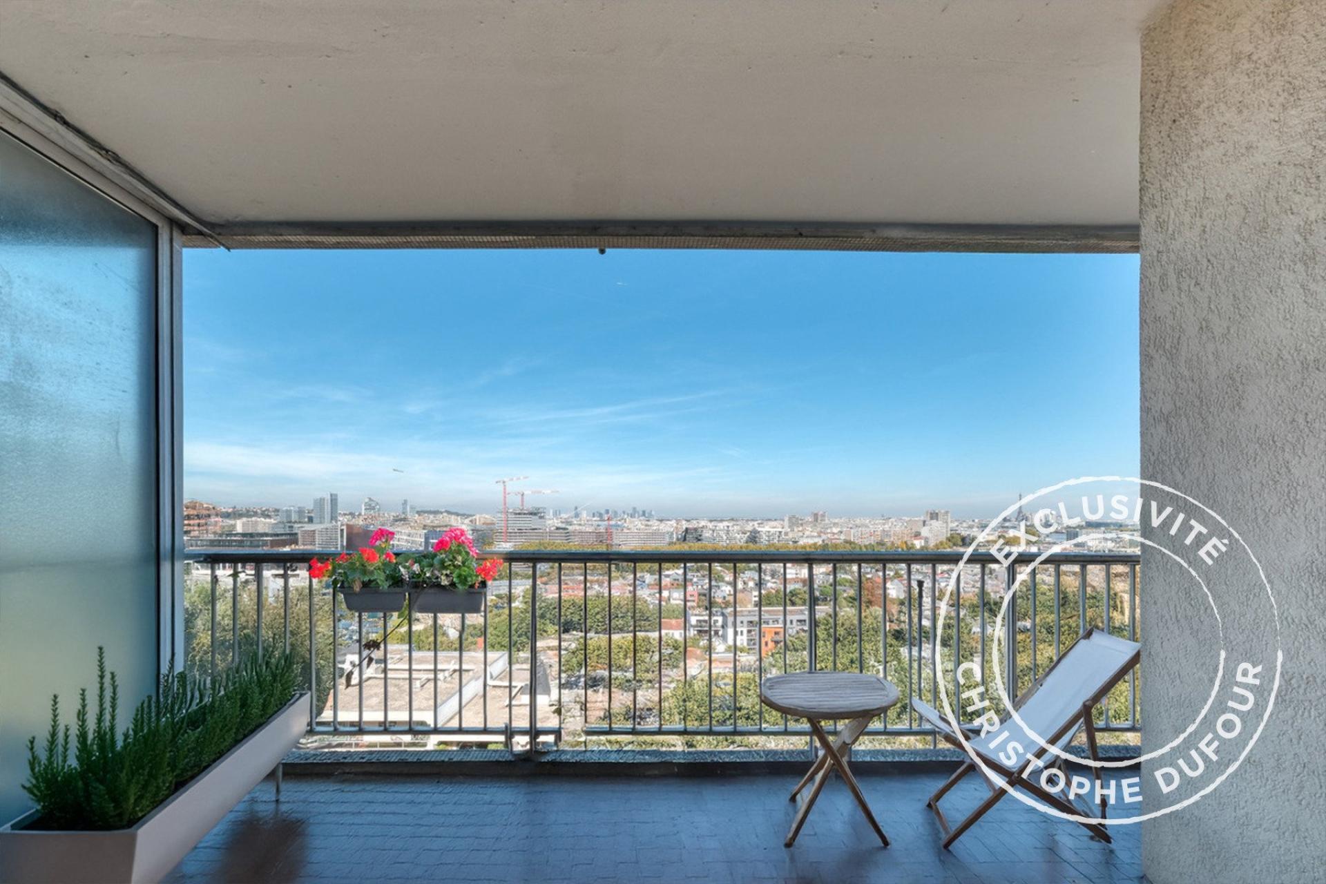 Dans une résidence des années 70, ce duplex de 122 m2 au 7e et 8e étage bénéficie d’une superbe vue sur la ville (de la Défense à la Tour Eiffel). Le 7e étage présente un double séjour (46 m2) traversant prolongé de chaque côté par un balcon-terrasse, une chambre, une salle d’eau, une cuisine fermée, une penderie et des toilettes indépendantes. Le 8e étage présente un bureau, 2 chambres, 1 salle d’eau, des toilettes indépendantes, une penderie, et bénéficie également de chaque côté d’un balcon-terrasse. Un double-box et une cave complètent ce bien. Local Vélos dans la copropriété. Des travaux sont à prévoir.