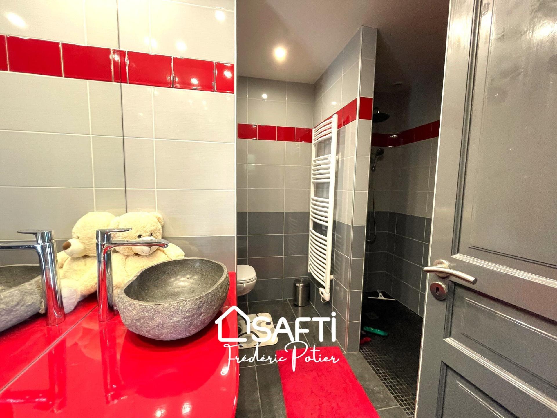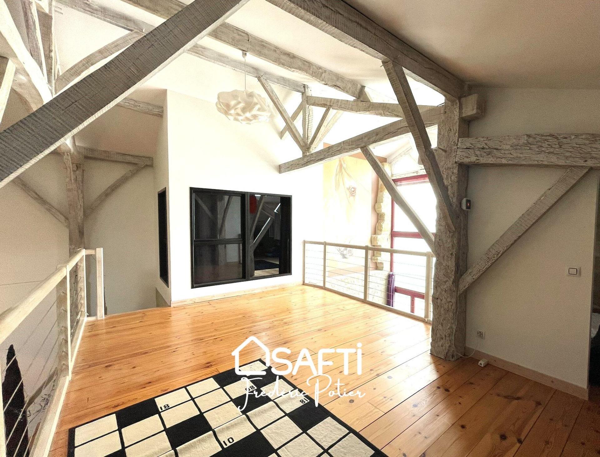 Ancien corps de ferme rénové comportant 3 chambre et un T1 indépendant. Grande pièce de vie de 97m² avec une hauteur sous plafond de 6,50m.