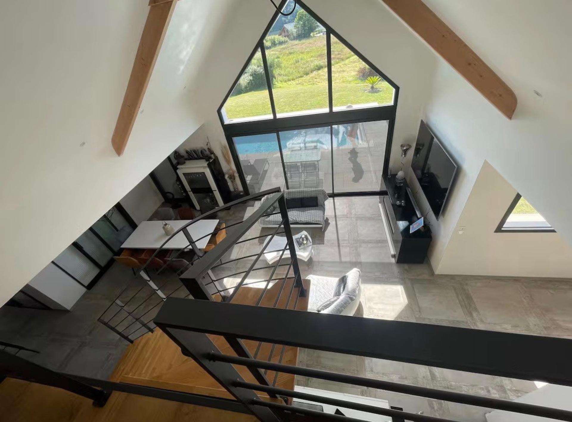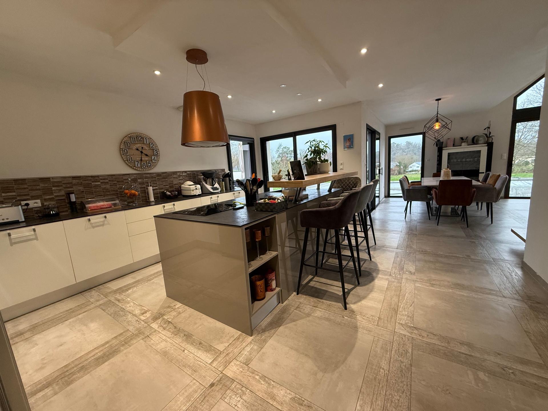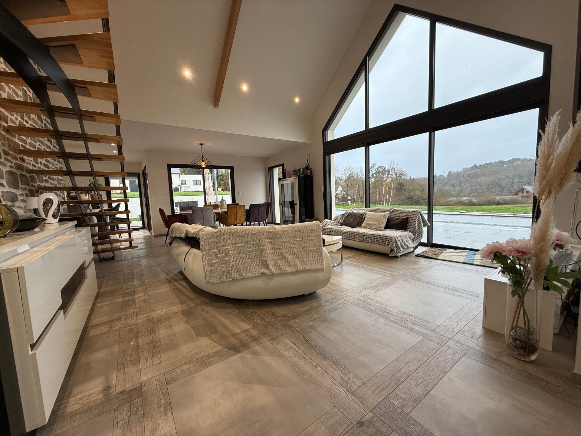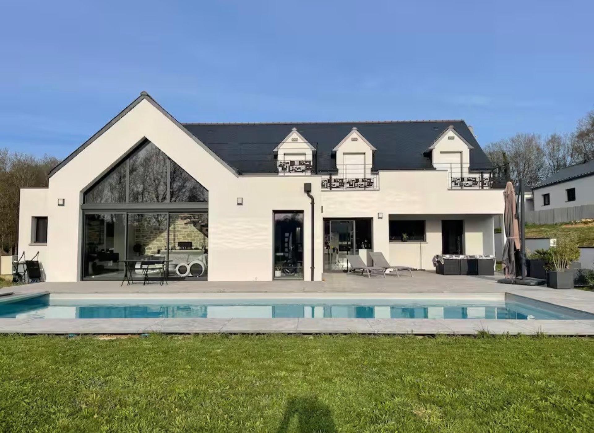 Située à Nivillac, sur le secteur recherché de Folleux, cette propriété bénéficie d’un environnement calme et arboré, avec une vue imprenable sur la Vilaine. Un cadre rare où la nature et la sérénité dominent, offrant un panorama exceptionnel visible depuis toutes les pièces de la maison. Construite en 2018, cette maison contemporaine d’environ 200 m² est implantée sur une superbe parcelle de 5 592 m². L’extérieur séduit par ses grands espaces paysagers et sa piscine, ainsi que par la présence d’un garage et d’un sous-sol offrant de nombreuses possibilités de rangement ou d’aménagement. À l’intérieur, le rez-de-chaussée propose un magnifique séjour aux volumes généreux, baigné de lumière et ouvert sur la vue de la Vilaine, une cuisine équipée, ainsi qu’une suite parentale avec salle d’eau et dressing, un WC et un accès garage. L’étage se compose d’une grande mezzanine, de trois chambres bénéficiant toutes d’un accès terrasse pour admirer la vue, d’une salle d’eau et d’un WC indépendant.
