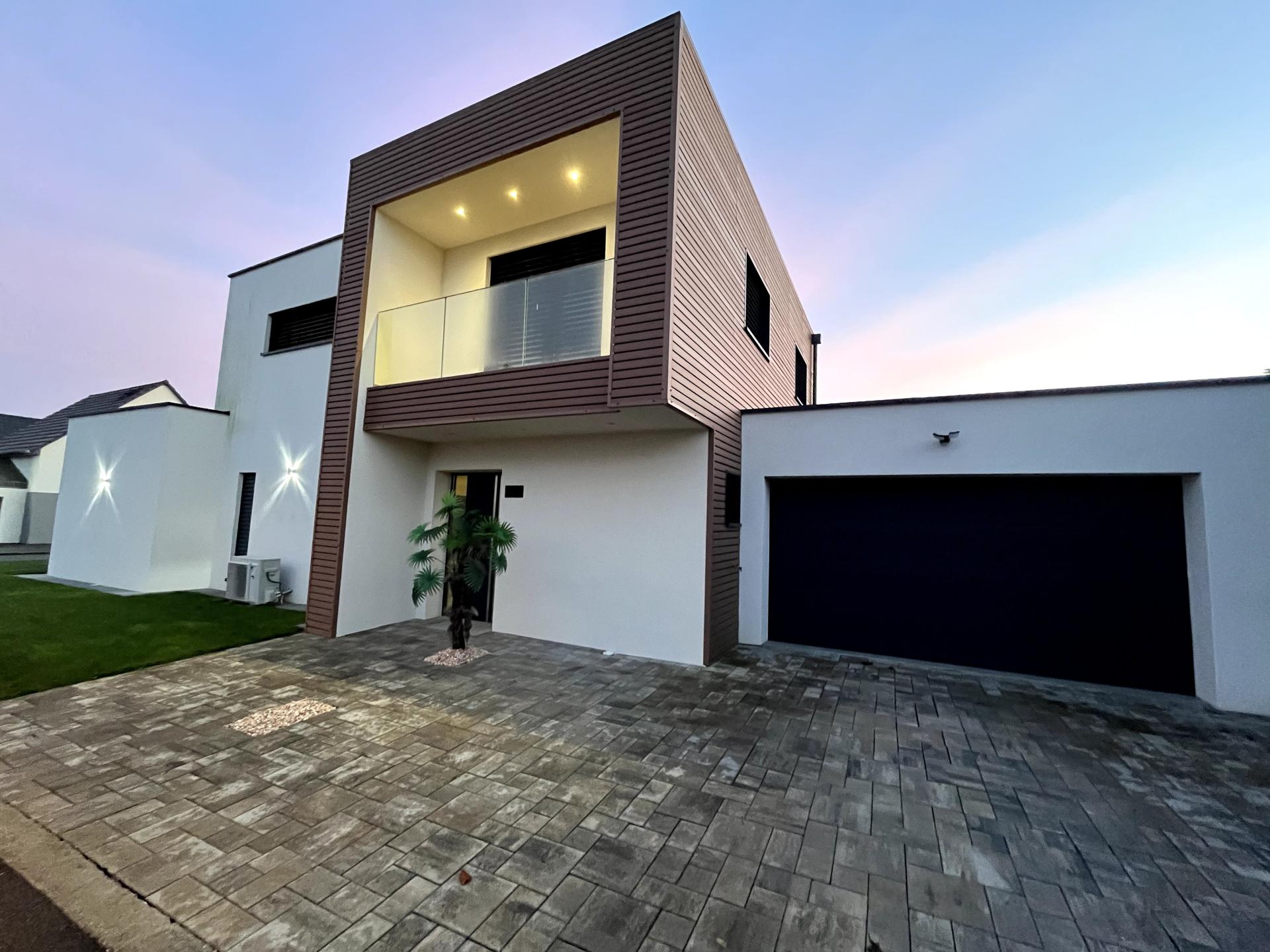 Située à Obersaasheim, cette résidence de 2022 de 131m² avec garage de 31m² profite du charme d'un village paisible, offrant un cadre de vie agréable aux habitants. Proche des commerces et des écoles, elle allie tranquillité et praticité. Idéalement située, elle offre un accès aisé aux commodités tout en préservant une atmosphère calme propice à la vie de famille. A seulement 30 minutes de Colmar, et 10 minutes de Breisach. En extérieur, cette propriété offre un terrain de 390 m² entièrement aménagé et piscinable avec 4 places de parking. . Dès l 'entrée vous apprécierez la mezzanine avec de hauts plafonds, ainsi que d'une pièce de vie baigné de lumière. Cuisine équipée moderne avec îlot central, ouverte sur un spacieux séjour de 60m², donnant directement sur une belle terrasse couverte, pouvant servir plus tard de véranda suivant vos envies.Toujours sur le même niveau une suite parentale de 17 m² avec salle d 'eau privative, offre fonctionnalité et confort au quotidien , et nous finirons avec un second Wc indépendant sur la partie rez-de-chaussée. La technologie Smart home permet de contrôler les volets BSO, la porte de garage.... à distance. La possibilité de créer de l'espace se rajoute, une plate-forme par exemple, sur la partie mezzanine, pour en faire un espace bien être supplémentaire, selon les besoins . A l'étage vous trouverez deux chambres de 12m² env, dont une avec balcon, offrant une vue panoramique sur le paysage . Également à l'étage une salle de bains luxueusement équipée d'une grande douche à effet pluie, d'une double vasque, un miroir éclairé et d'un Wc. Nous finirons par une buanderie, ou zone de rangement, d'un second accès terrasse supplémentaire constructible de 30m2 env. Cette propriété récente offre un cadre de vie moderne et adaptable, idéal pour une famille en quête de confort, de praticité, et d'élégance. Équipée d 'une pompe à chaleur basse consommation avec chauffage au sol , de la climatisation, de triple vitrage, volets BSO, d'un adoucisseur d'eau, d'une isolation extérieur, permets d 'avoir un confort thermique de Classe énergétique A/A. Un pavillon respectueux de l'environnement. Un spacieux garage de 31m² avec accès direct à la maison comble le tout. Contactez-moi dès aujourd'hui pour organiser une visite et découvrir cette architecture . Nous parlons Allemand, et nous conseillons sur la partie financière.