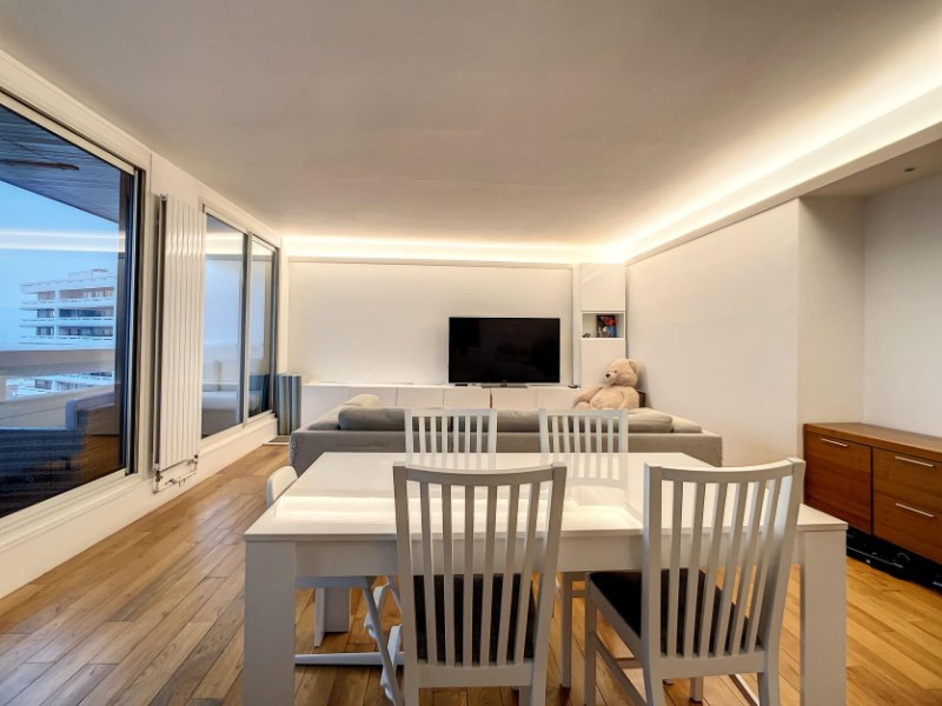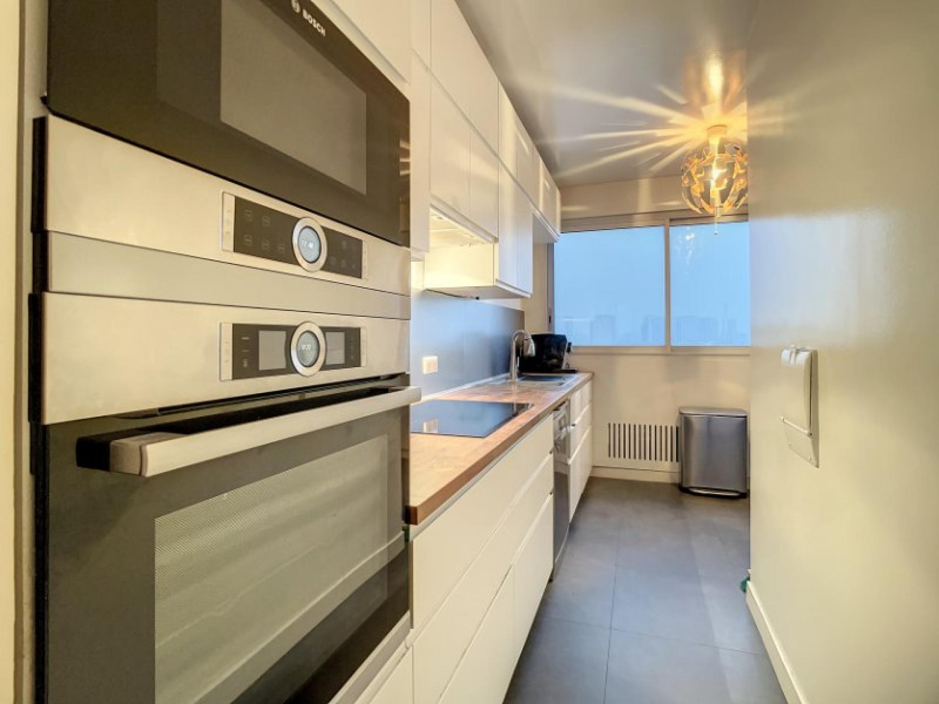 Paris 75015, au 14ème étage (2 ascenseurs) d'un immeuble moderne de standing, Appartement 91,91m² (Carrez) refait à neuf, traversant très agréable, ensoleillé et sans vis à vis. Grand balcon / Loggia de 13m² orientée sud. Vue dégagée et Tour Eiffel depuis les chambres et la cuisine. Composition: entrée, un grand salon, salle à manger, une cuisine dinatoire équipée, 2 chambres (possibilité 3), une salle de bains, une salle d’eau avec toilettes, et WC séparés, nombreux placards. Très bonne distribution. Double vitrage récent, porte blindée, parquet en teck massif, une cave et un parking complètent ce bien. Présence d’un gardien, résidence sécurisée 24/24. Proche des commerces, écoles et transports: métro stations Balard et Lourmel ligne 8 et L12, tramway T3a. A quelques minutes à pieds du ministère des Armées, de la Porte de Versailles, du Parc André Citroën, de la Coulée verte... l'aquaboulevard… Accès terrasse au dernier étage avec vue 360° sur tout Paris.