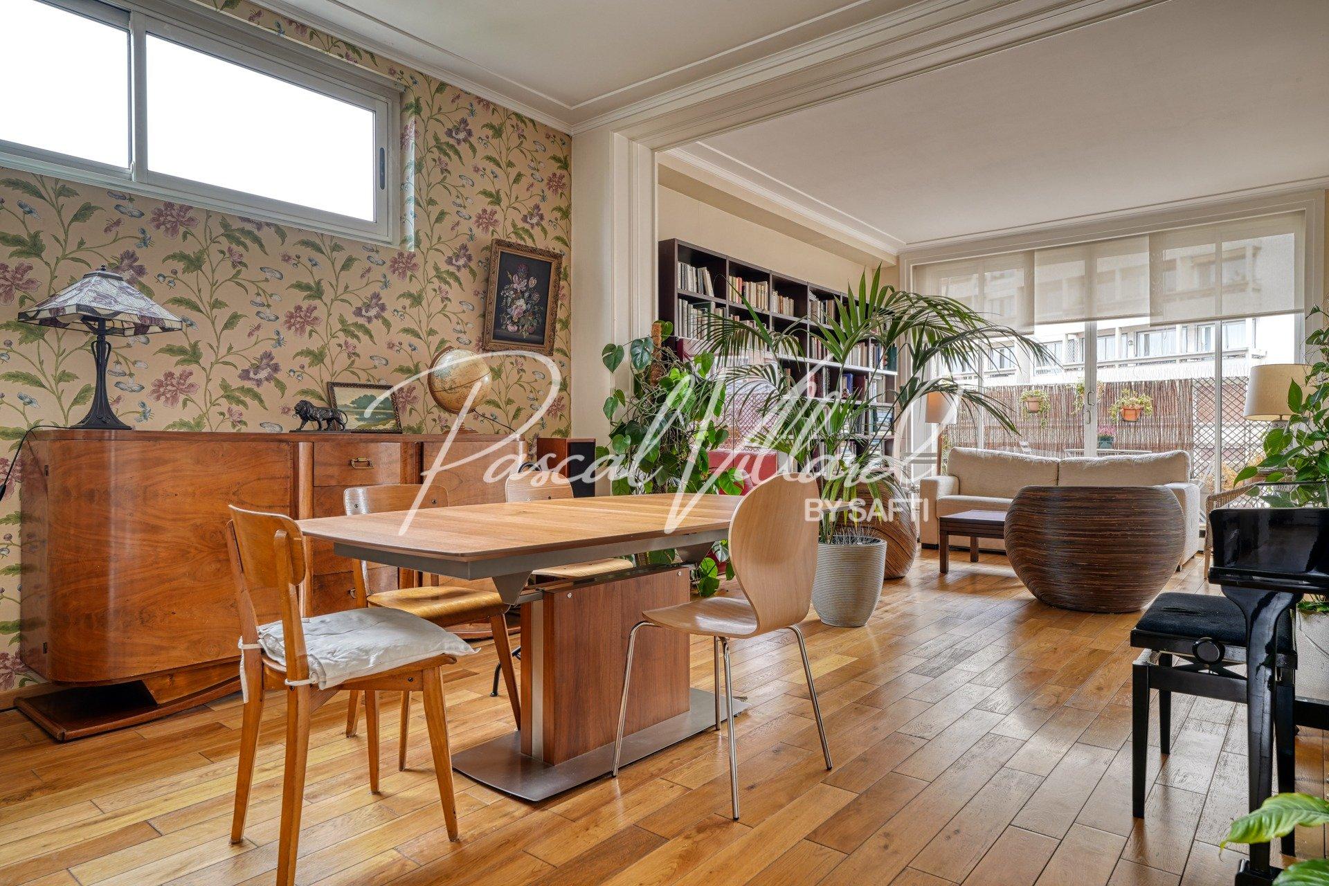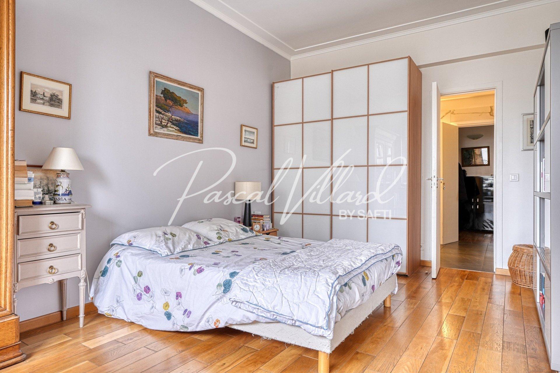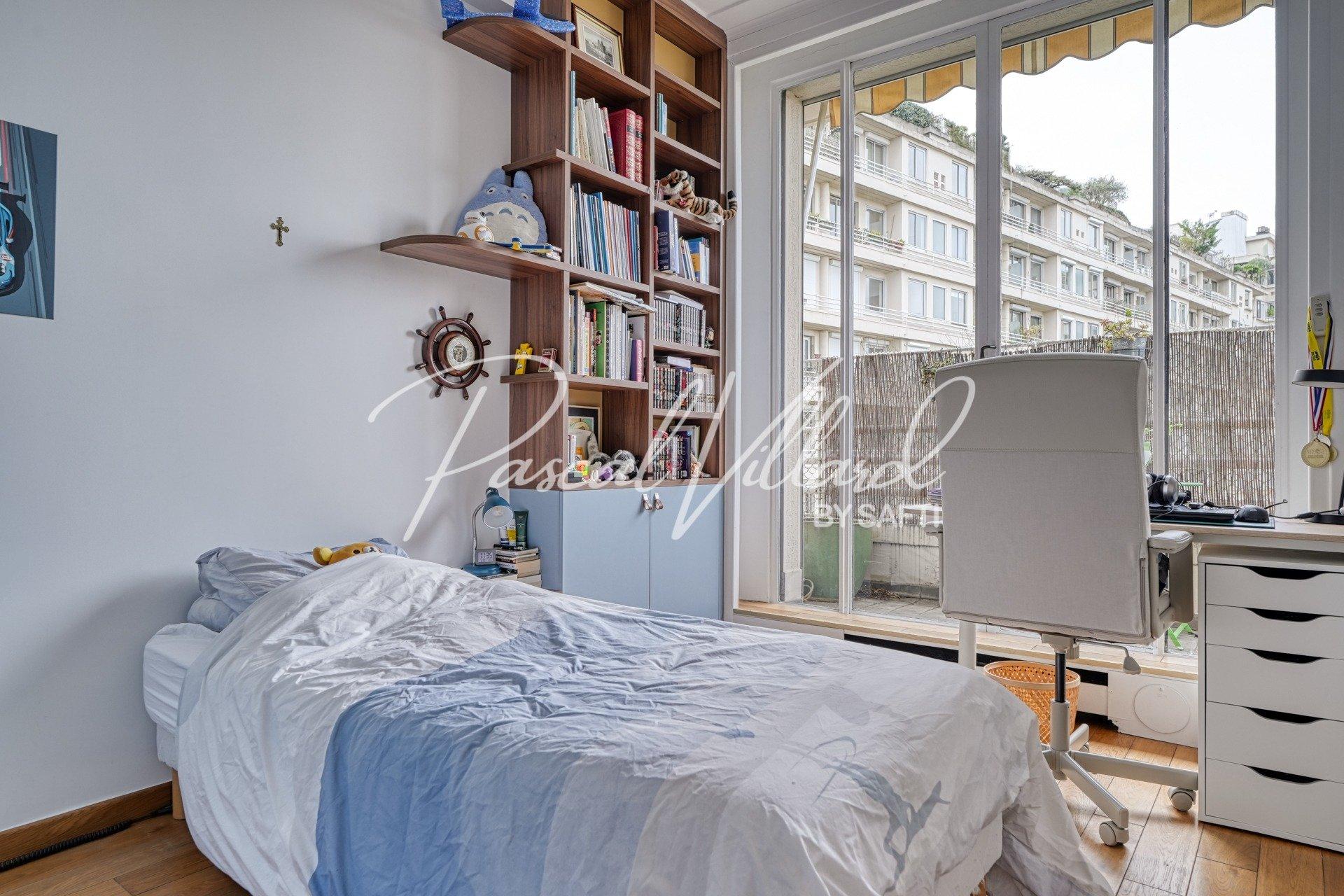 PARIS XVI – QUARTIER JASMIN Secteur Montmorency / Docteur Blanche Dans une résidence de très grand standing, entièrement sécurisée, avec parc privé et gardien 24h/24 – 7j/7, je vous propose de découvrir un élégant appartement familial traversant de 138 m² environ, situé au 5ᵉ étage avec ascenseur. Il bénéficie de deux balcons, de très beaux volumes et d’une hauteur sous plafond d’environ 3 mètres. Vous apprécierez son plan parfaitement agencé, qui se compose comme suit : • Vous entrez par un hall avec rangements qui distribue les différentes pièces. • Vous profitez d’un double séjour d’environ 35 m², idéal pour recevoir. • L’espace nuit offre une suite parentale de 20 m² ouvrant sur un balcon, avec sa salle de bains et son WC. • Deux autres chambres, dotées de rangements sur mesure (Compagnie des Ateliers), s’ouvrent sur un second balcon donnant sur un espace vert, et se partagent une salle d’eau. • Une pièce complémentaire d’environ 9 m² peut accueillir un bureau, une 4ᵉ chambre d’appoint ou un espace TV selon vos besoins. • Vous disposez également d’une grande cuisine dînatoire d’environ 20 m², séparée, aménagée et équipée, & son cellier attenant. • Un WC séparé complète la partie jour. Vous profiterez de prestations de qualité, de volumes généreux et d’une très belle luminosité tout au long de la journée. Une cave généreuse, accessible par ascenseur, vient compléter ce bien. Un local vélo est également à votre disposition dans l’immeuble. En sous-sol, une place de parking, accessible par ascenseur, est proposée en supplément. Les charges incluent le chauffage collectif CPCU, l’eau chaude, le gardiennage 24/7 avec télésurveillance ainsi que l’entretien paysager des jardins, vous garantissant un confort de vie haut de gamme. Vous bénéficierez d’une adresse très recherchée, à proximité immédiate des commerces, du métro Jasmin et d’établissements scolaires privés et publiques de renom. Une visite s’impose pour apprécier pleinement le charme et les nombreux atouts de cet appartement. Contactez -moi pour plus d’informations ou pour organiser une visite.