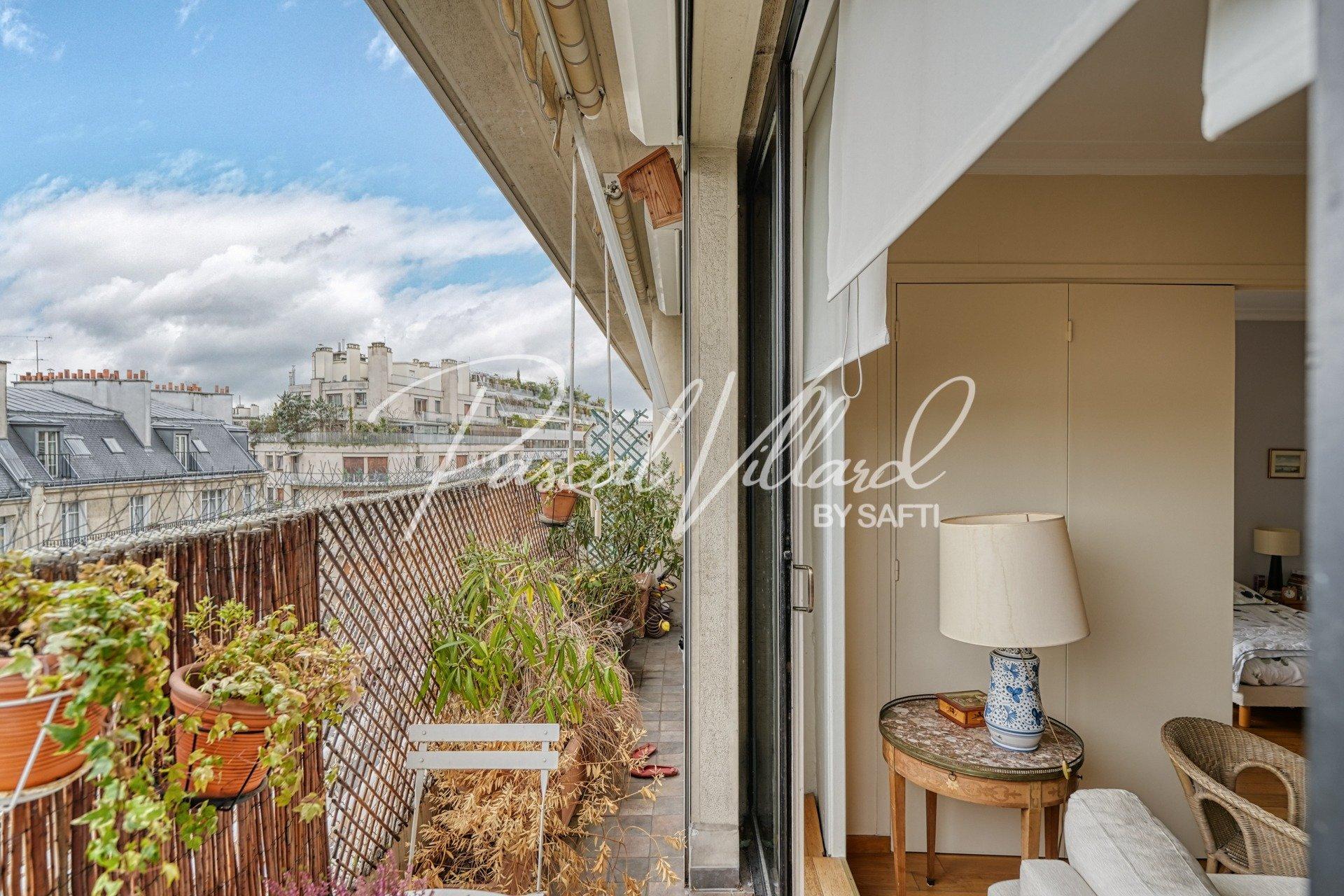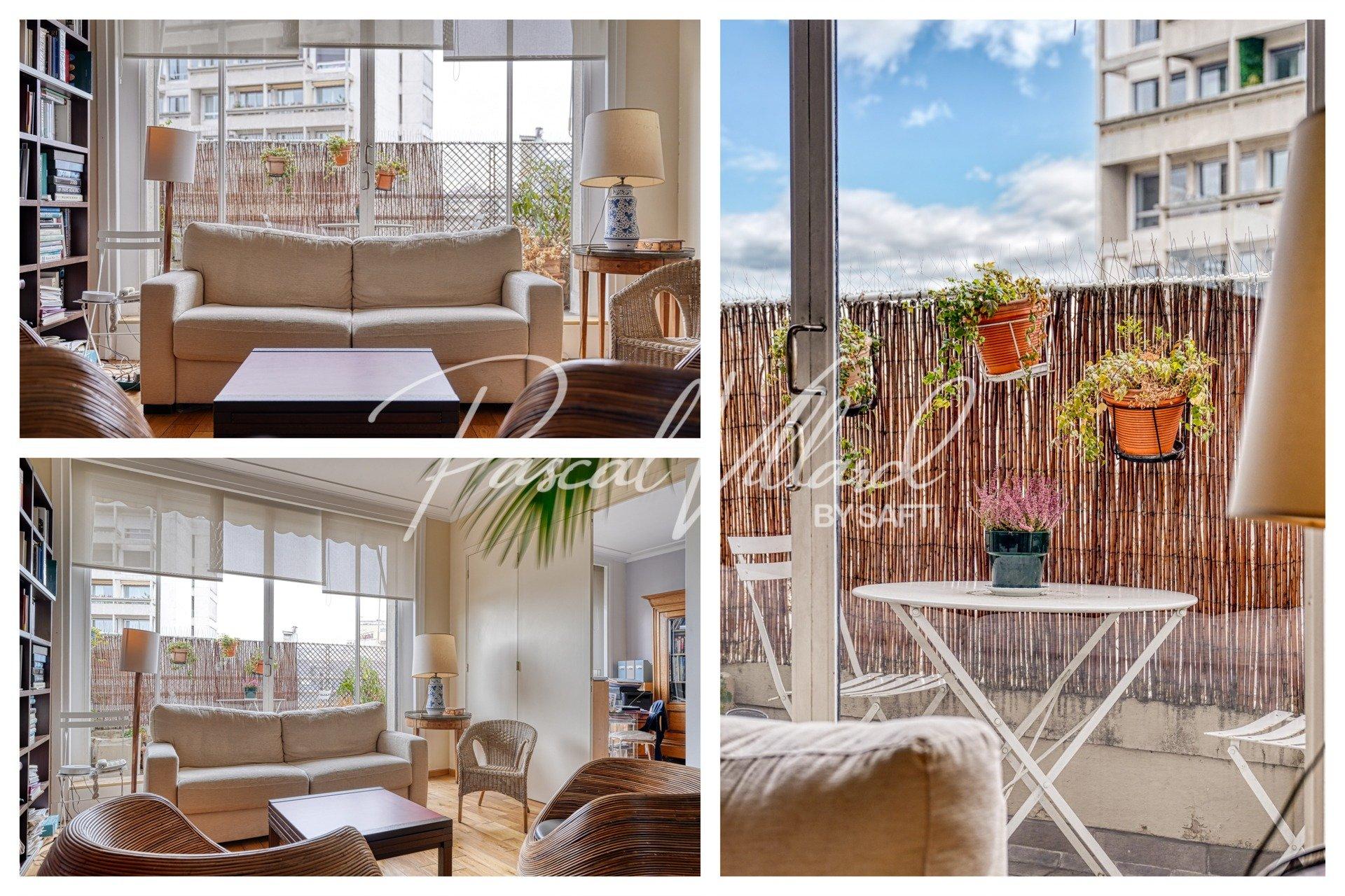 Appartement familial traversant en étage élevé avec 2 balcons dans une résidence sécurisée à Auteuil nord, Paris 16.