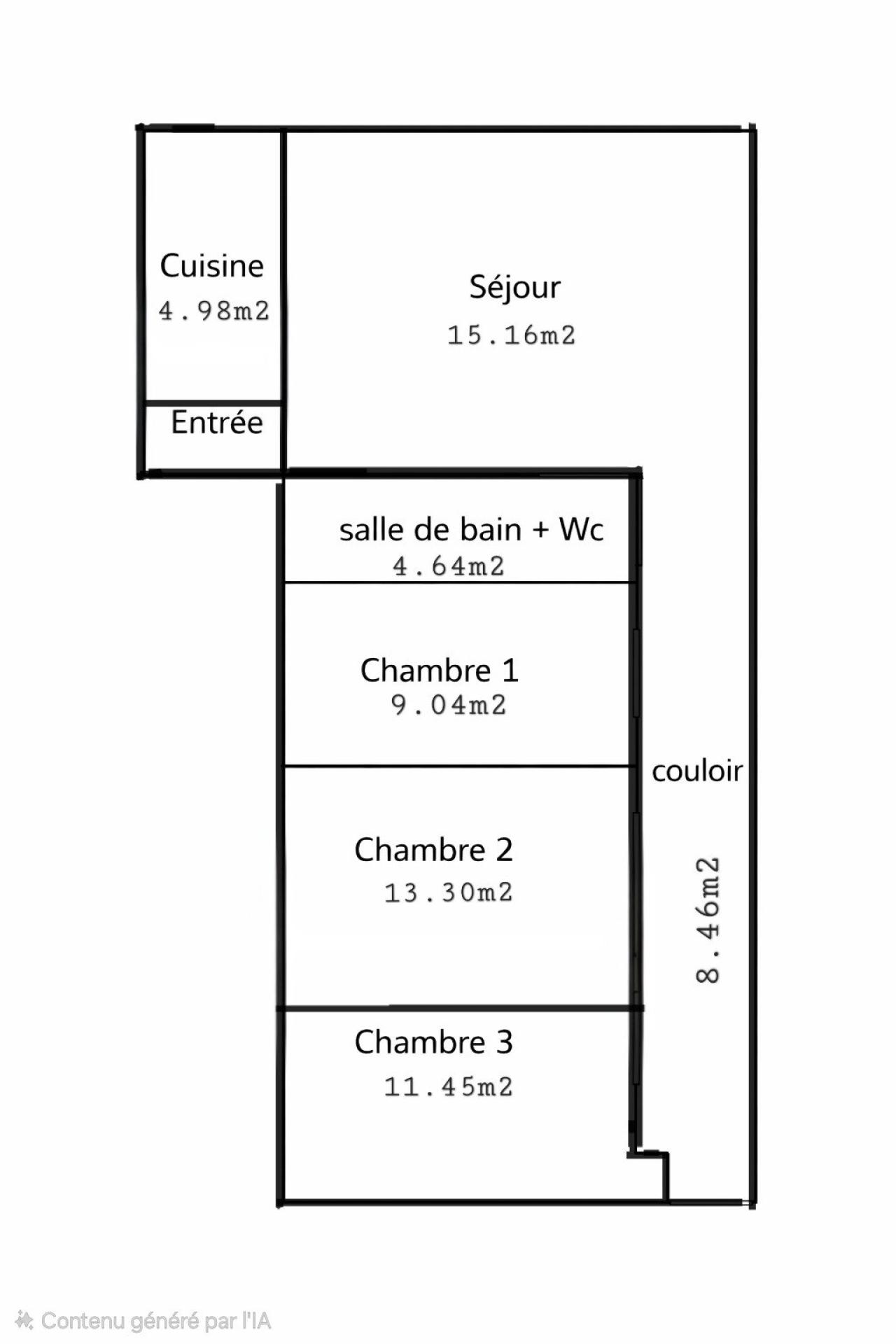 Appartement de 68m2 3 chambres à proximité des écoles et commerce