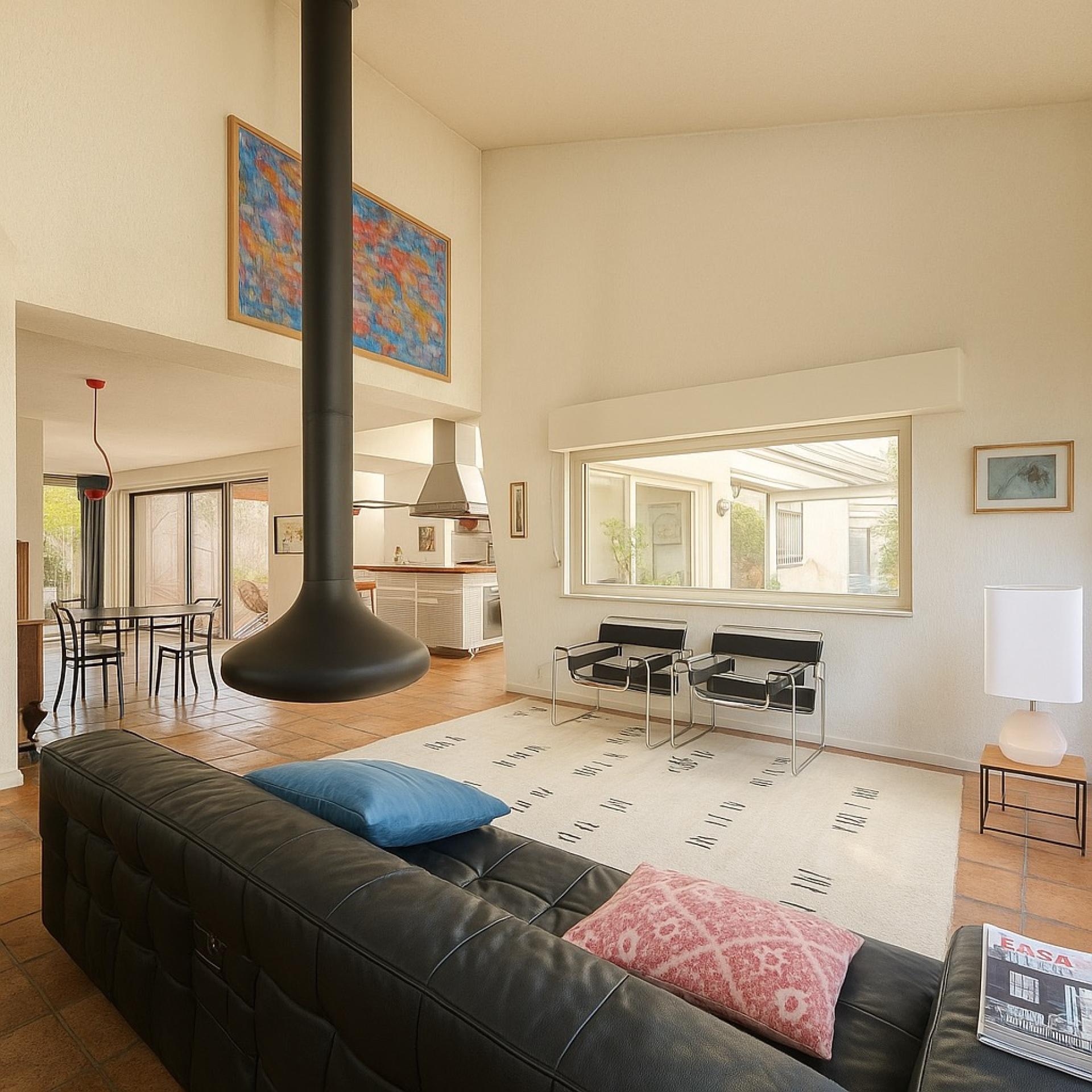 Située à Peymeinade dans un environnement calme et préservé, découvrez cette magnifique villa moderniste de 177 m2 conçue dans les années 80 par l'architecte Cannois Jean-Edouard Girardot, édifiée sur une parcelle de 1300 m2. Cette villa exceptionnelle réunit tous les atouts pour séduire les amateurs d'architecture moderne, elle a été pensée pour communiquer avec la nature qui l'entoure. Elle se compose comme suit : De plain pied se trouve un magnifique espace de vie baigné de lumière avec sa cheminée suspendue. La cuisine ouverte s'intègre harmonieusement à la véranda et au salon, créant un espace convivial et fluide. Vous trouverez une chambre parentale avec sa salle de bain ainsi qu'une chambre supplémentaire avec sa salle d'eau. L'escalier véritable pièce maitresse de la pièce principale vous mène à l'étage qui se compose de deux chambres dont l'une peut être séparée en deux. Très beau jardin méditerrannéen avec sa piscine et son espace détente. Un grand garage pouvant accueillir 3 véhicules et une cave complètent le bien.