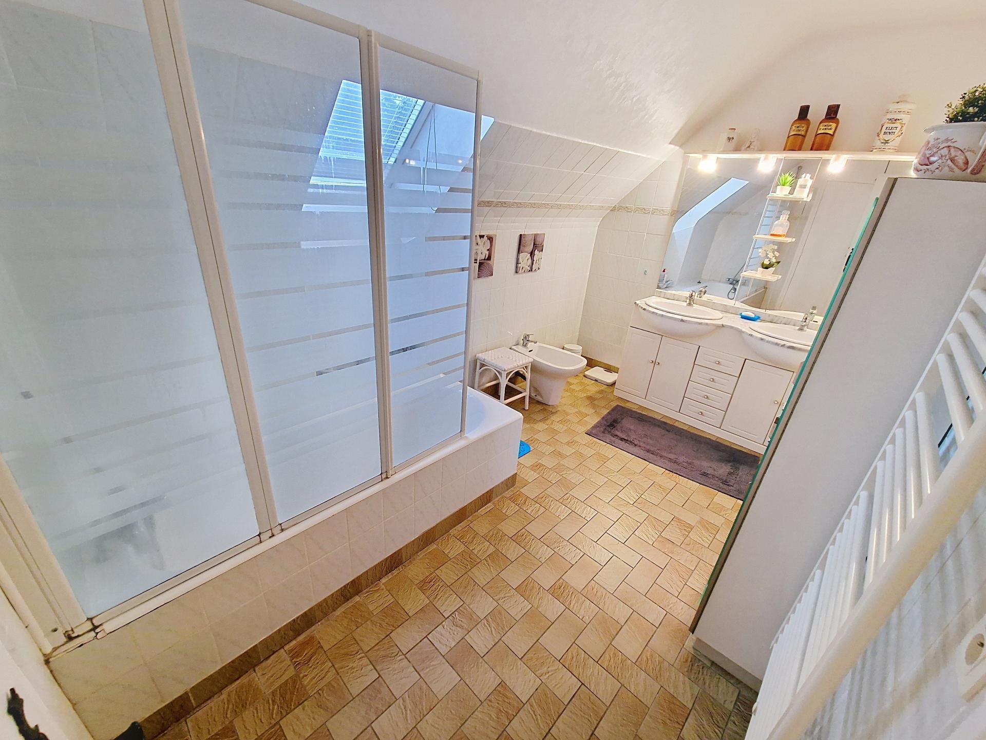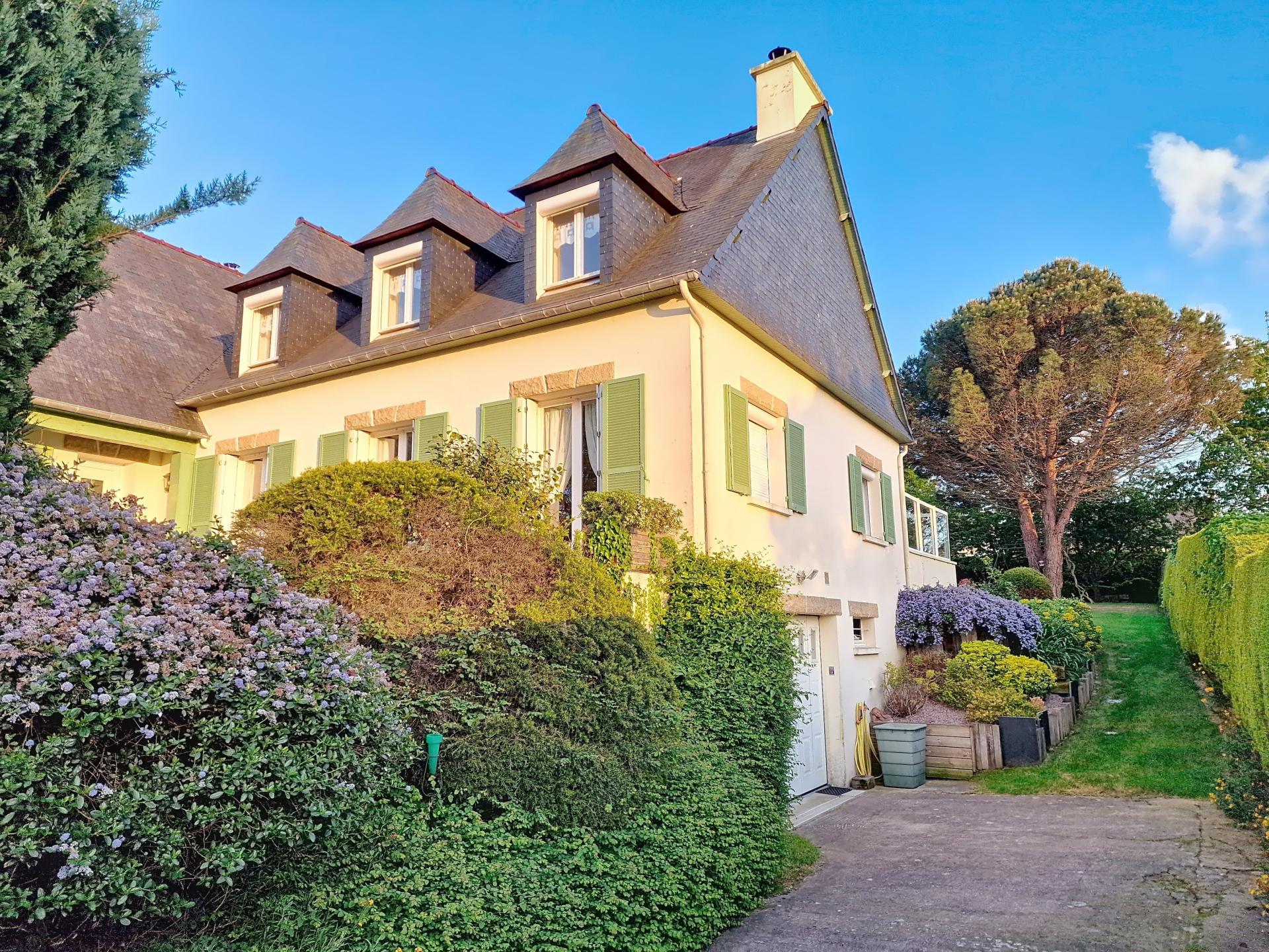 Située à Pléneuf-Val-André (22370), côté bourg de Pléneuf, cette propriété bénéficie d'un bel emplacement, offrant un cadre paisible à seulement quelques pas des commodités locales (commerces, écoles...) et des plages pittoresques de la côte bretonne. La maison, sur un beau terrain fleuri et arboré de plus de 2000 m², dispose d'une spacieuse terrasse offrant une vue dégagée sans vis-à-vis, et bien orientée. À l'intérieur, cette demeure d'environ 230 m² répartis sur 2 niveaux présente 9 pièces confortables: - Le rez-de-chaussée comprend un grand salon/salle à manger avec foyer fermé, une grande cuisine équipée et aménagée avec porte donnant sur la terrasse, un bureau ou chambre, une très grande chambre avec espace bibliothèque avec accès direct à la terrasse, une salle d'eau, des toilettes, et une entrée avec rangements. - À l'étage, on découvre 5 chambres supplémentaires, une salle de jeux, une salle de bains, des toilettes, et un grenier. - Le sous-sol total de plus de 130m² permet d'y garer plusieurs véhicules, et offre un agencement optimal pour un confort de vie au quotidien (garage, atelier, cave, stockages, buanderie). Cette belle propriété constitue un lieu de vie idéal pour une résidence principale ou secondaire.
