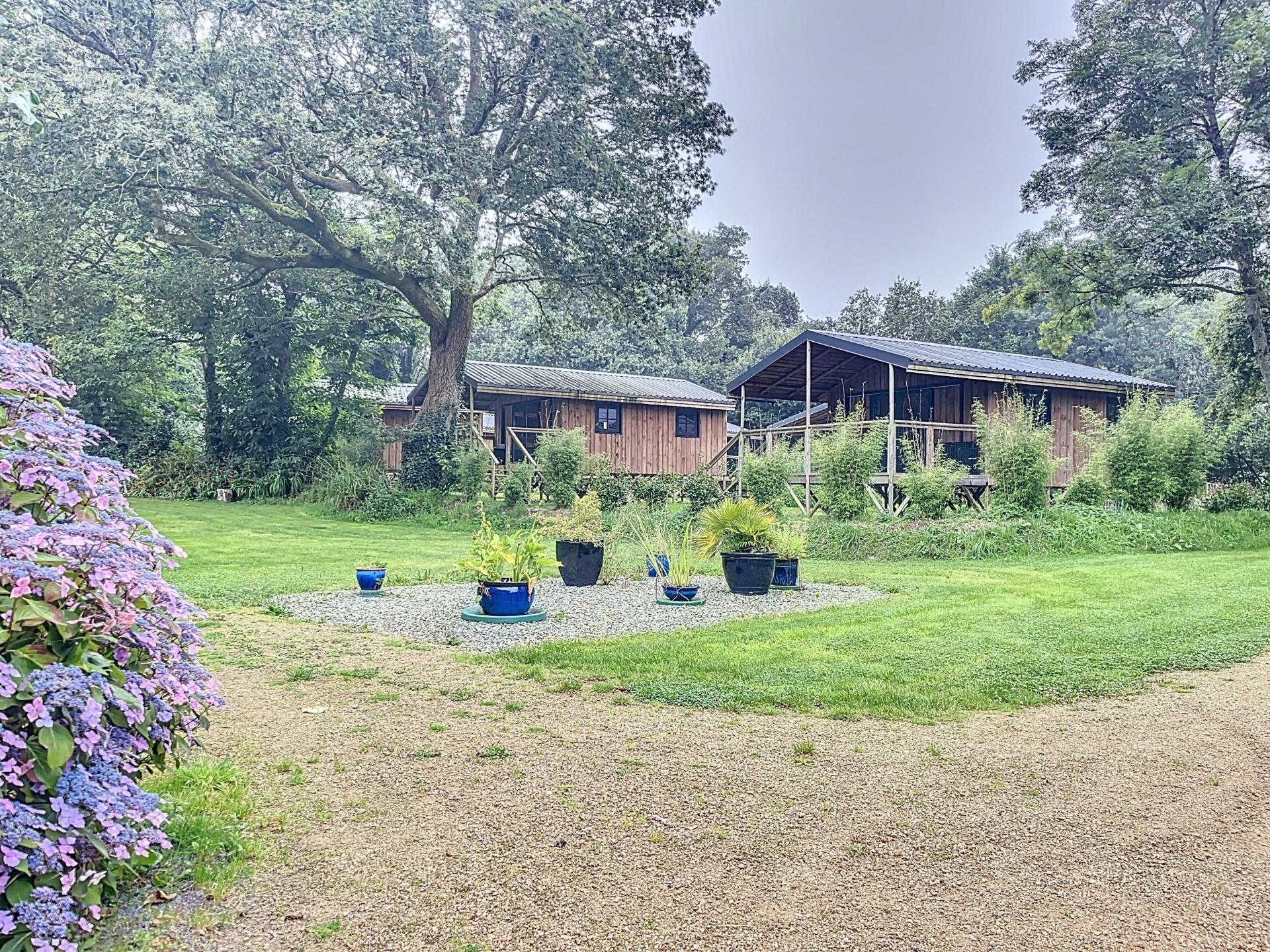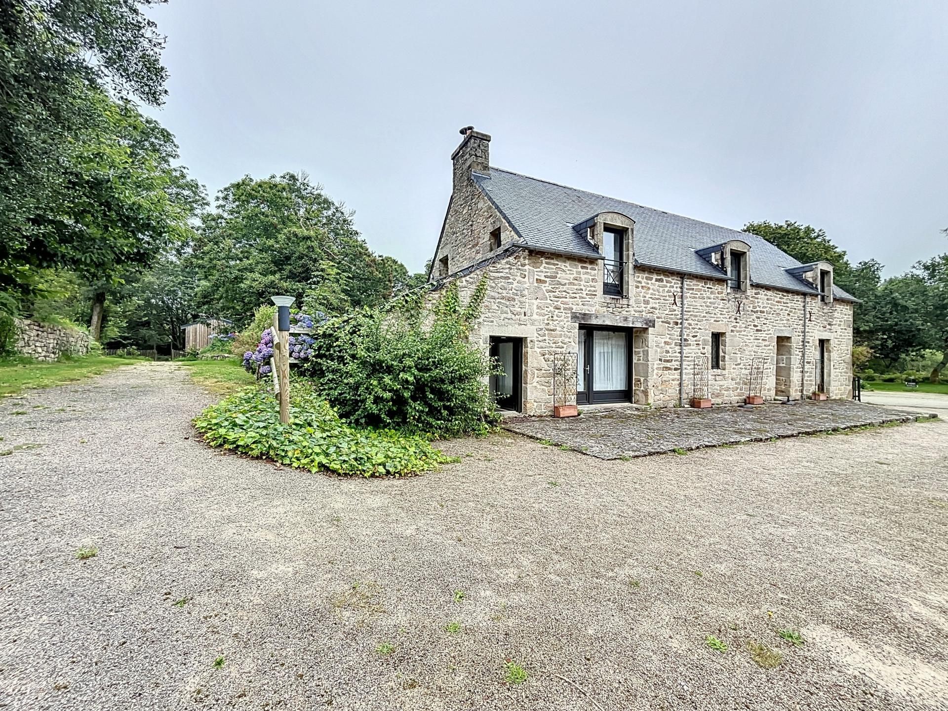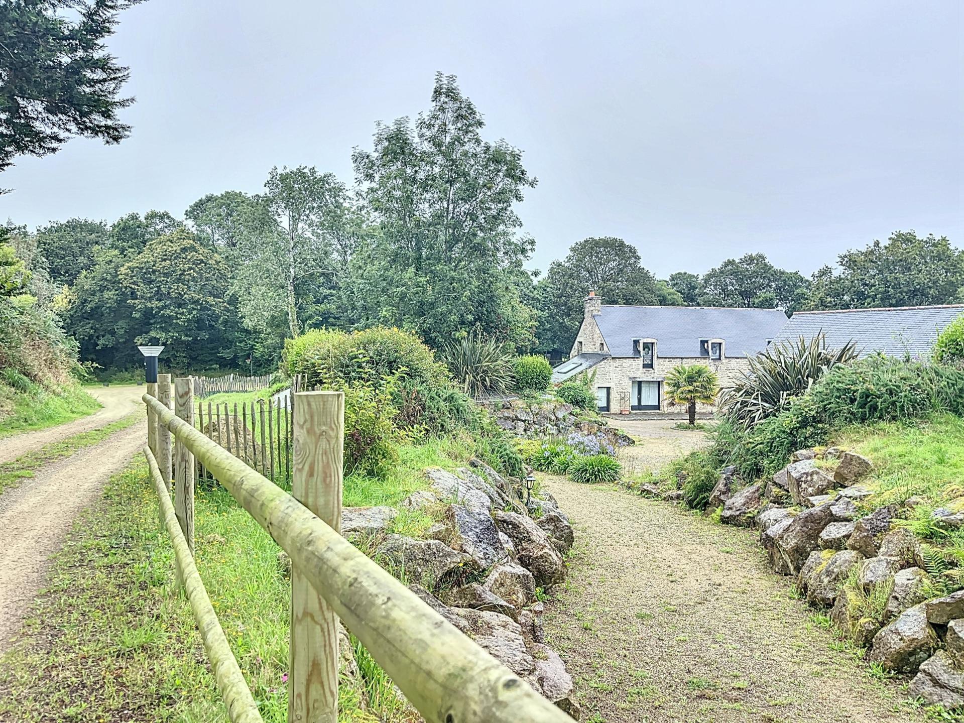 À 20 minutes de Quimper et 15 minutes des plages sauvages de la baie d’Audierne, découvrez un domaine unique où la nature, la sérénité et le charme des vieilles pierres se rencontrent. Niché au cœur d’un environnement préservé, ce lieu d’exception s’étend sur plus de 3 hectares de paysages variés et harmonieux, offrant un cadre de vie rare, paisible et authentique. Un écrin naturel aux ambiances bucoliques Le domaine dévoile une richesse paysagère remarquable, véritable invitation à la détente et à l’évasion : • Une zone agricole, idéale pour un potager, des plantations, des cultures douces ou un projet d’élevage. • Un espace forestier, intime et ombragé, parfait pour des promenades paisibles. • Une zone humide à la végétation luxuriante, surprenante et dépaysante, qui évoque par endroits l’atmosphère d’une forêt tropicale. Un ruisseau borde la propriété et un puits renforce le caractère authentique du site, tout en offrant un atout précieux pour toute démarche écoresponsable. Le calme, la biodiversité et la douceur du cadre confèrent au lieu une ambiance profondément accueillante. Trois longères en pierre, entièrement rénovées avec élégance Restaurées avec des matériaux nobles et un souci constant du détail, les trois longères allient le charme des anciennes bâtisses bretonnes au confort moderne. • La maison principale (166 m²) séduit par ses volumes généreux et sa lumière naturelle. Au rez-de-chaussée : une grande pièce de vie conviviale avec poêle à bois, une cuisine aménagée, une buanderie, des toilettes séparées et une suite parentale préservée en fond de couloir. À l’étage : quatre chambres, une salle de bain, des toilettes indépendantes et une mezzanine avec accès direct au jardin. Le chauffage au sol assure un confort optimal en toutes saisons. • Une première bâtisse (env. 55 m²) accueille aujourd’hui un espace de réception chaleureux, dédié notamment à l’accueil et à la restauration. • La seconde (env. 100 m²) offre un espace ouvert particulièrement modulable, idéal pour des événements : séminaires, retraites bien-être, ateliers, expositions ou concerts privés. Un éco-village au cœur de la nature Harmonieusement intégrés dans le paysage, 10 lodges en bois forment un véritable éco-village. Chacun, d’environ 27 m², comprend : • une chambre double, • une chambre triple, • un salon avec kitchenette, • une salle d’eau, • des toilettes séparées, • une terrasse privative ouverte sur la nature. La capacité d’accueil totale avoisine 50 personnes, permettant d’imaginer une activité touristique forte et pérenne : gîtes nature, retraites, séjours bien-être, accueil de groupes, événements privés ou professionnels. Des équipements pensés pour accueillir confortablement Un hangar semi-ouvert de 100 m², idéal pour le stockage ou des activités complémentaires, ainsi qu’un grand parking d’environ 60 places, complètent l’ensemble. Un lieu aux multiples vocations Grâce à ses infrastructures, son charme bucolique et sa situation privilégiée entre campagne et littoral, ce domaine offre une diversité rare de projets : • Résidence principale ou secondaire au cœur d’un environnement apaisant. • Projet mixte habitation / activité, pour concilier vie privée et projet professionnel. • Investissement touristique ou bien-être, avec un potentiel de développement majeur. Le domaine combine un cadre de vie exceptionnel, une activité déjà en marche et une forte valeur patrimoniale. Sa proximité immédiate des plages sauvages, sa rénovation soignée et la beauté de son environnement en font un bien rare, où chaque journée ressemble à une parenthèse enchantée. Un lieu unique, accueillant et apaisant : une véritable invitation à vivre ou entreprendre autrement. Contactez-moi pour toute information complémentaire et pour organiser une visite !