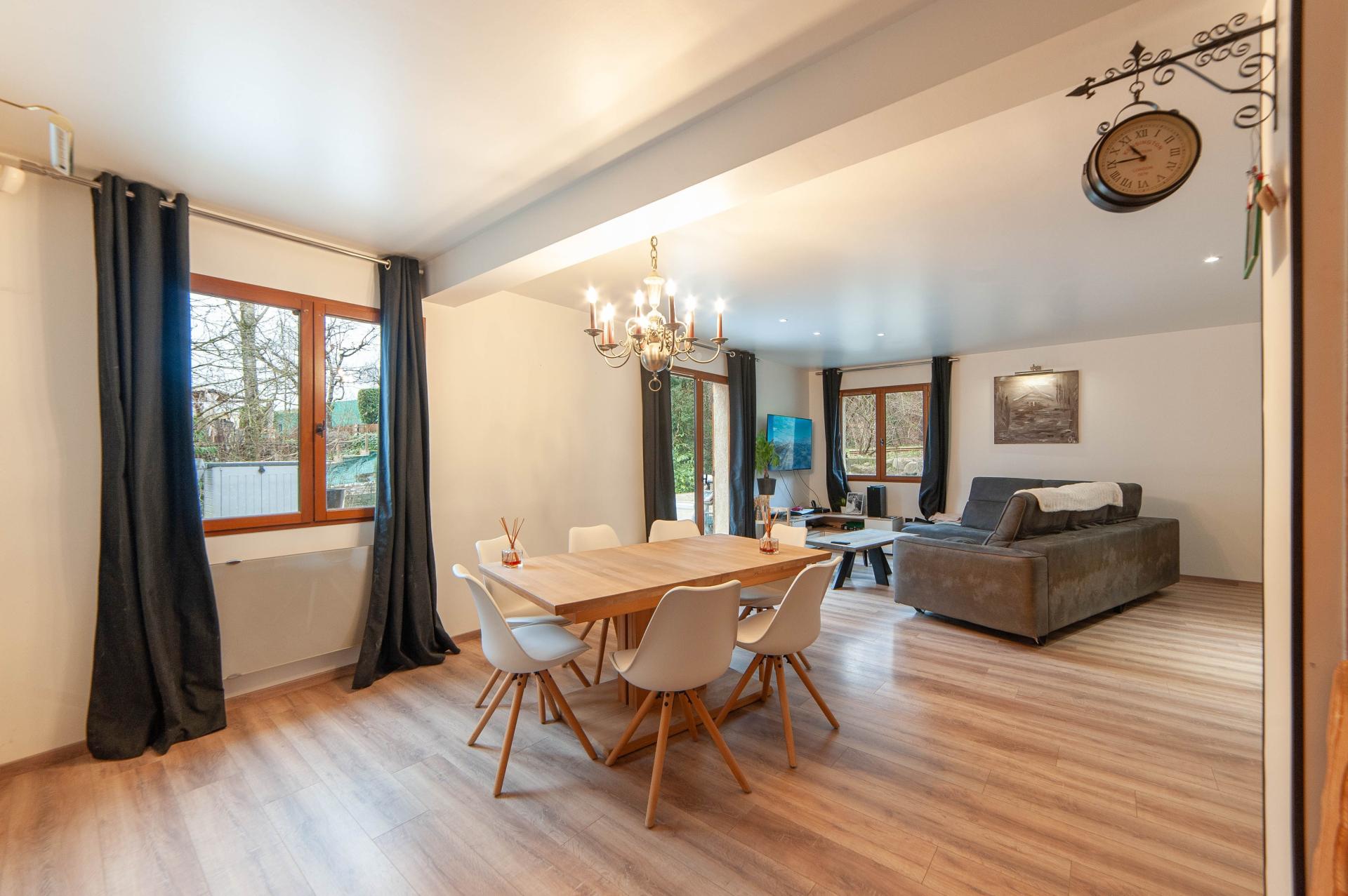 Située dans la charmante ville de Poisy (74330), cette propriété offre un cadre de vie paisible et verdoyant, à proximité de toutes les commodités nécessaires. Poisy bénéficie d'une atmosphère conviviale et familiale, avec des écoles, commerces et espaces verts à quelques pas, tout en restant à seulement quelques minutes en voiture du centre d'Annecy. À l'extérieur, cette villa comprend un vaste terrain de 1903 m² offrant un espace de vie extérieur généreux. Les 5 places de parking facilitent le stationnement des résidents et visiteurs, tandis que la piscine chauffée de 7*4 mètres promet des moments de détente et de loisirs en famille ou entre amis. À l'intérieur, la maison de 147 m² se compose de 6 pièces, dont 4 chambres pour accueillir confortablement ses habitants. Avec 2 toilettes et 2 salles de bain, dont une suite parentale, le confort et l'intimité sont au rendez-vous. Construite en 2007, cette propriété offre un cadre moderne et fonctionnel, idéal pour une vie de famille dynamique et épanouie.