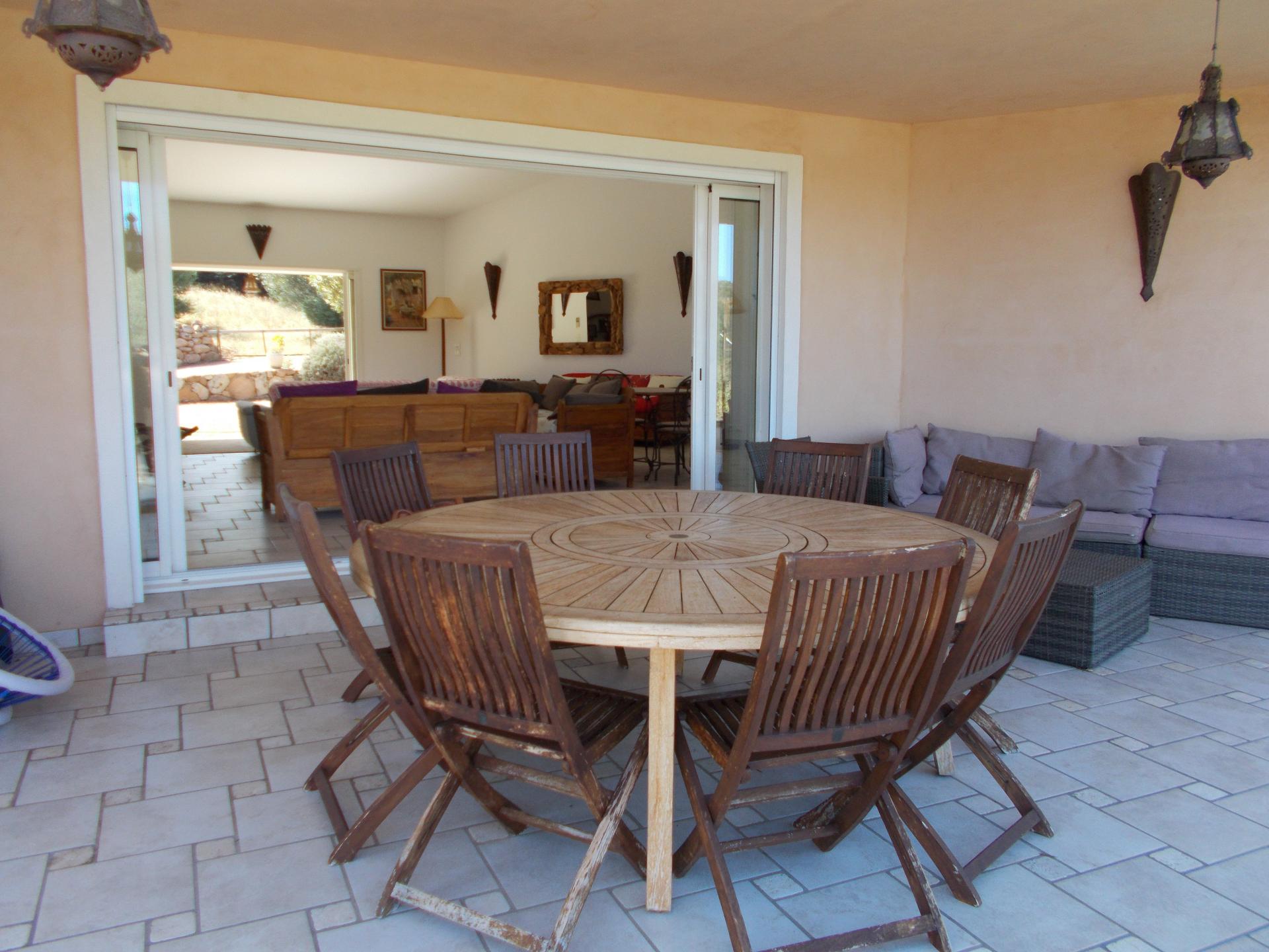 Située près du charmant hameau de Bocca del Oro à Porto-Vecchio, cette propriété offre un cadre tranquille entre mer, campagne et ville à quelques pas des plages renommées de Santa-Giulia et Palombaggia. Édifiée sur un magnifique terrain de 1800 m², cette demeure dispose d'une architecture soignée aux fondations solides en béton armé et des matériaux de qualité tels que la pierre et le travertin, lui conférant une élégance intemporelle. À l'intérieur, l'accent est mis sur le raffinement et le confort avec des finitions soignées. 1 séjour traversant de 67 m² avec portes-fenêtres à galandage ouvrant sur deux terrasses et une piscine au sel de 10x7m, 1 cuisine partiellement ouverte de 18 m² et 1 cellier. Un espace nuit avec 4 chambres équipées de salles de bain et toilettes privatifs, 1 toilette invités. Un sous-sol total déjà partiellement aménagé avec portes et fenêtres permet de doubler la surface. Climatisation. Interphone. Digicode et camera vidéo. Volets à commande centralisée. L'ensemble est impeccable et n'attend que votre passage.