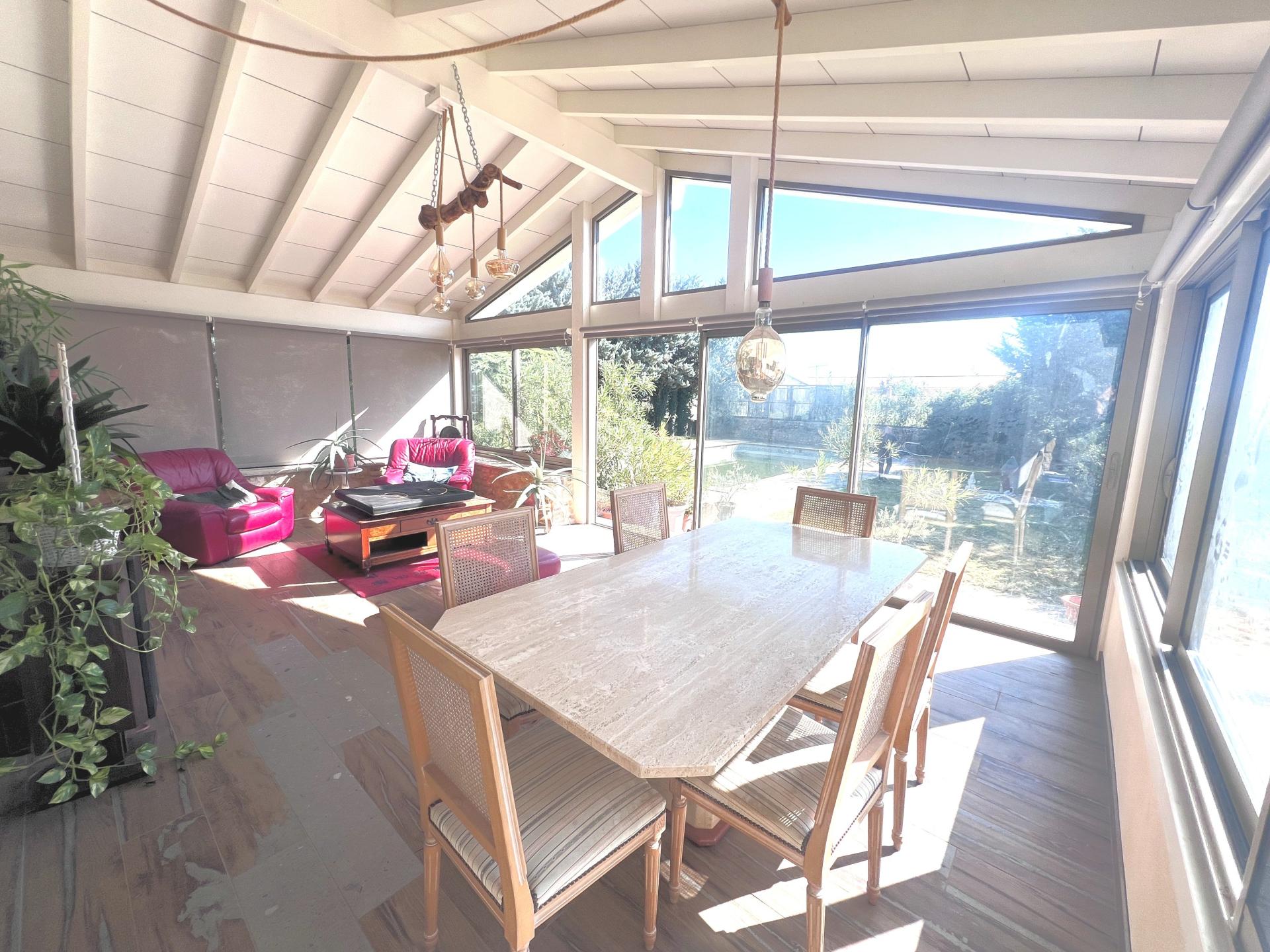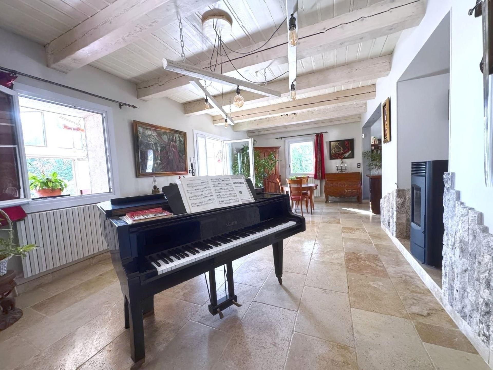 Nichée dans un environnement paisible et lumineux grâce à son exposition plein sud, cette élégante propriété de plain-pied d’environ 209m², accompagnée de sa spacieuse dépendance de 136m², offre un cadre de vie privilégié au cœur du Luberon. L’ensemble développe près de 345m² habitables sur un magnifique terrain paysager de 11.000 m², planté d’oliviers, de pins et d’essences méditerranéennes. La maison principale : Raffinée et chaleureuse, elle séduit par ses volumes généreux et ses matériaux nobles : • Une suite parentale d’environ 60 m² avec grand dressing et salle de bain complète (baignoire, douche, double vasque, WC) • Trois chambres supplémentaires, chacune avec leur salle d’eau privative • Une cuisine ouverte sur un vaste salon lumineux doté d’un poêle à granulés et d’un superbe sol en travertin • Une véranda baignée de lumière, offrant une vue apaisante sur le jardin Le charme de la pierre, la toiture triple génoise et les finitions de qualité (moquette de pierres, travertin, mosaïque...) confèrent à cette demeure une élégance provençale intemporelle. Les extérieurs : Un véritable havre de paix : • Piscine 7x13 (de 1 à 3m de profondeur), parfaitement intégrée au paysage • Jardin arboré La dépendance : Idéale pour accueillir famille et amis, elle offre environ 136m² comprenant : • Une vaste pièce à vivre lumineuse • Une grande cuisine indépendante • Deux chambres, une salle d’eau et un WC • Un garage attenant de plus de 45 m² avec mezzanine Atouts supplémentaires : • La propriété bénéficie de deux accès distincts, situés de part et d’autre du terrain, facilitant l’accès aux différentes parties du domaine et un stationnement aisé grâce à son parking privé. • Sous-sol d'environ 100m2 + vide sanitaire • Calme absolu • Panneaux photovoltaïques • À seulement 10mn à pied du village de Puyvert, et 2km de Lauris et Lourmarin Une propriété rare, alliant charme provençal, confort contemporain et cadre naturel d’exception. Idéale comme résidence familiale, maison de vacances ou projet d’accueil touristique (Terrain en zone agricole).