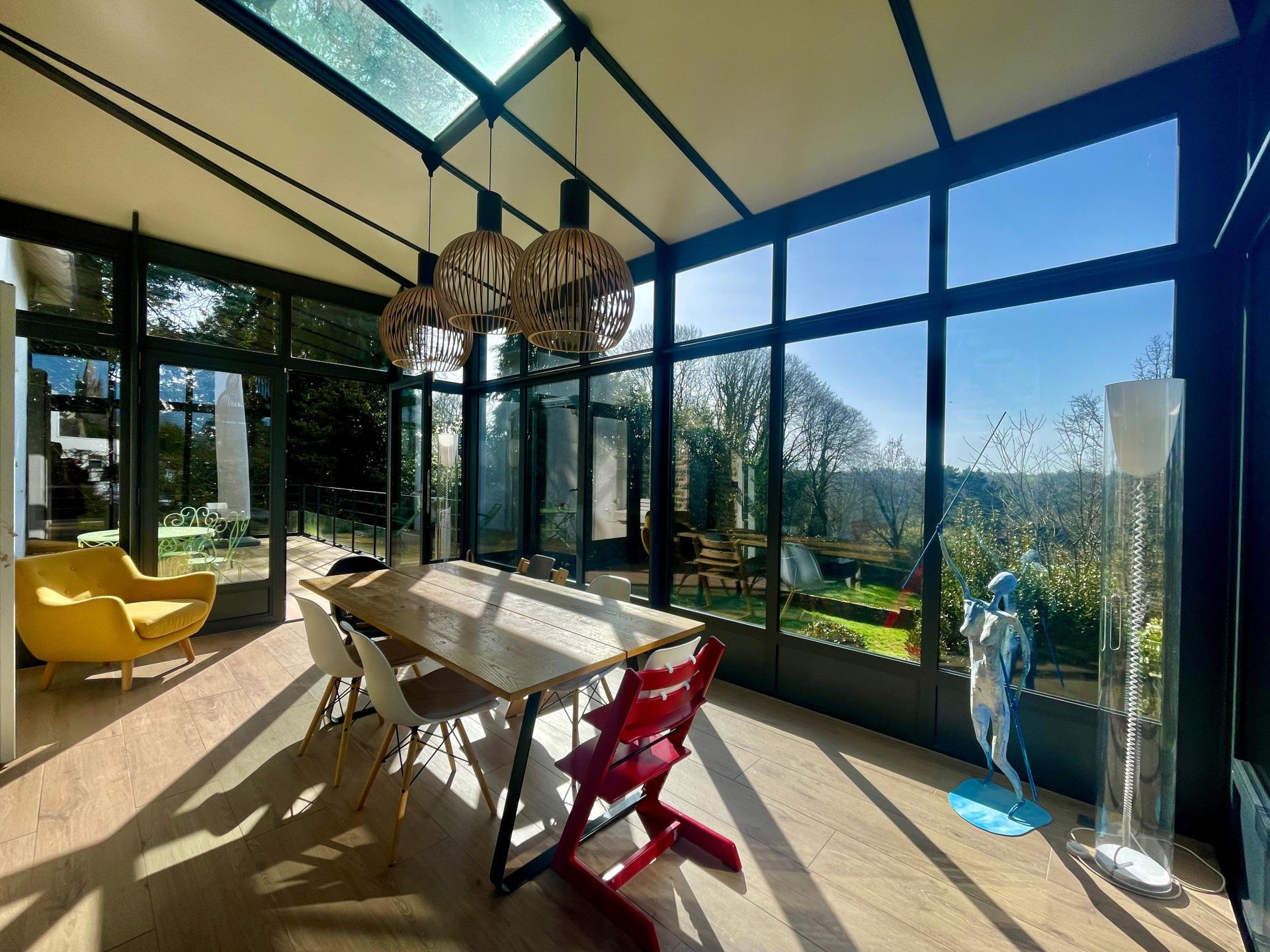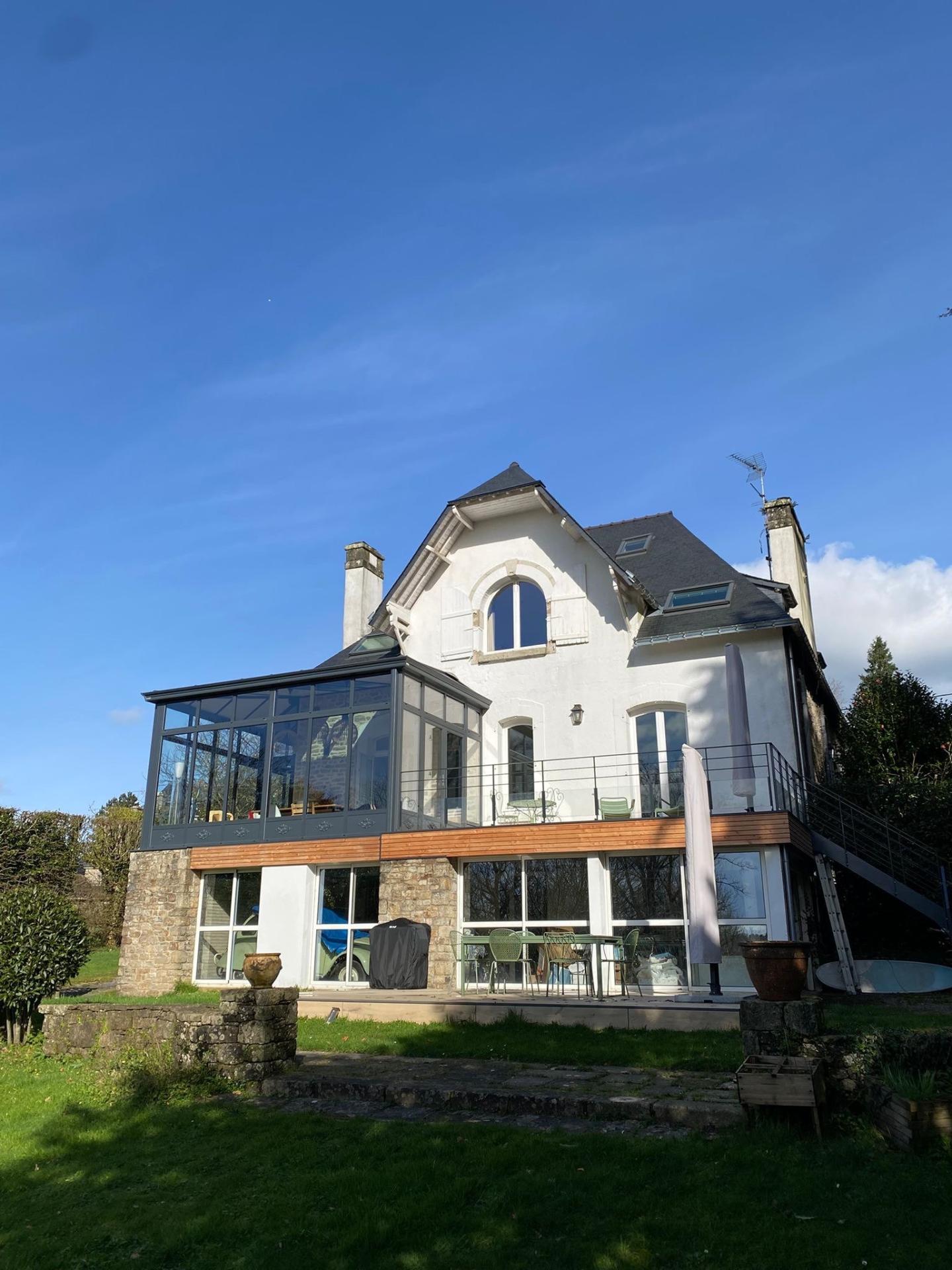 Coup de cœur assuré pour cette belle demeure bourgeoise alliant le charme de l'ancien et le confort moderne, édifiée en 1920 sur un terrain paysagé entièrement clos de 1527 m2 et située en centre ville de Questembert offrant un environnement verdoyant avec une vue totalement dégagée sur la campagne. Dès le seuil franchi le ton est donné Superbe hall d'entrée desservant les différentes pièces de vie, un vaste séjour baigné de lumière, sublimé par sa cheminée d'époque,de belles fenêtres cintrées et moulures au plafond, un salon élégant (ou chambre selon vos besoins), un wc, une cuisine aménagée et équipée ouvert sur la véranda chauffée, offrant un véritable espace de vie supplémentaire avec une vue panoramique exceptionnelle et une terrasse sur balcon. A l'étage, 4 chambres dont 3 avec salle d'eau et wc privatifs permettant d'envisager aisément une activité de chambres d'hôtes. Au dessus, un grand grenier entièrement isolé En rez-de-jardin un sous-sol complet avec garage, un atelier, une chaufferie, une cave et une pièce d'appoint avec douche et wc idéale pour l'exercice d'une activité professionnelle et une seconde terrasse, de quoi passée de bon moments en famille ou entre amis ! Les plus, maison rare avec beaucoup de cachet, assainissement tout à l'égout, chauffage au gaz de ville,toiture, véranda, terrasses entièrement neuves.
