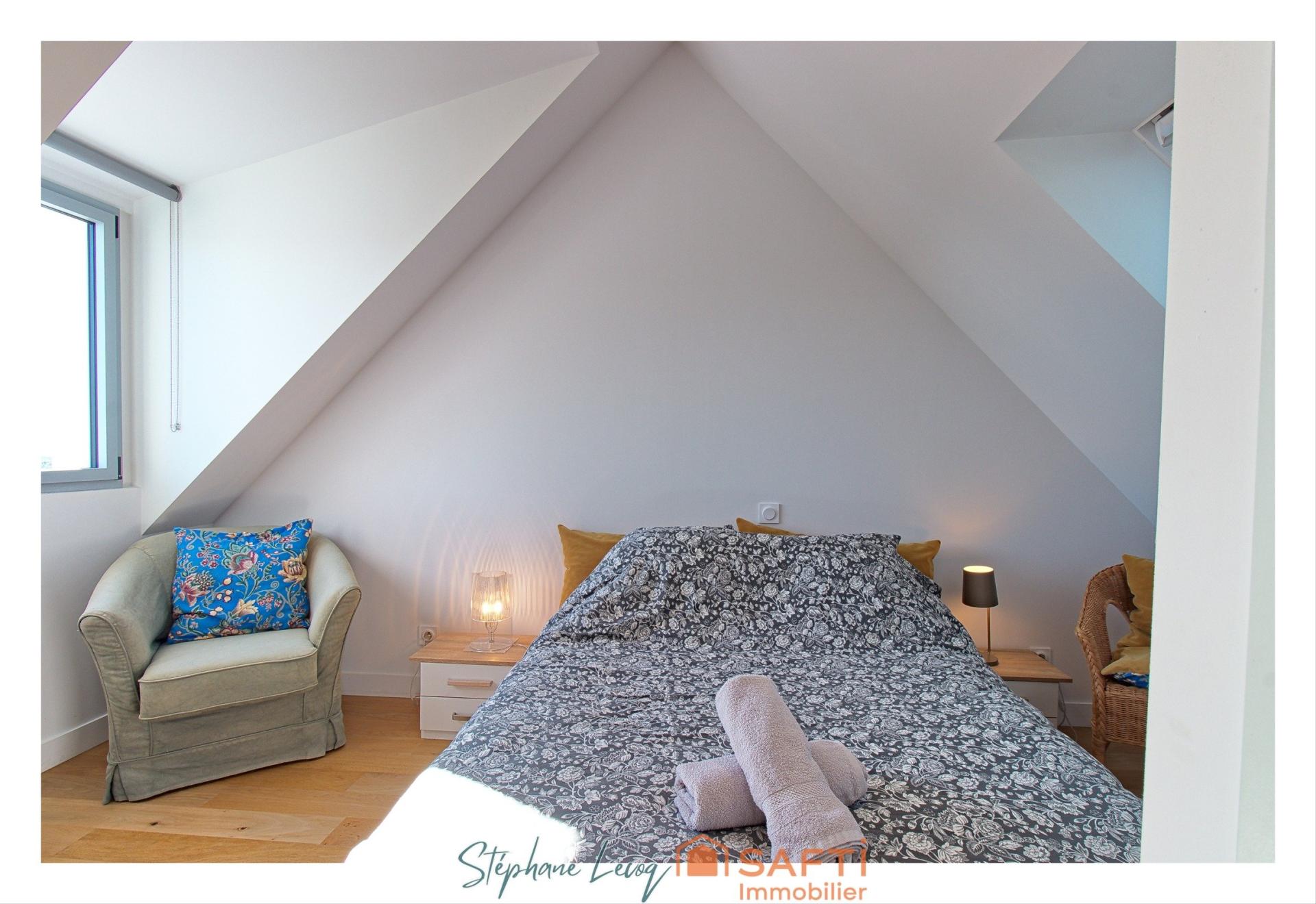 Au Manémeur, l’adresse compte. L’environnement aussi. Depuis cette propriété, l’océan s’impose sans effort. Au large, Belle-Île-en-Mer trace la ligne d’horizon. À quelques pas, la côte sauvage rappelle chaque jour pourquoi Quiberon n’est pas une station balnéaire comme les autres. L’ensemble immobilier a fait l’objet d’une rénovation complète, avec des matériaux choisis et une vraie cohérence d’ensemble. Rien n’est laissé au hasard. Il se compose : — d’une maison principale proposant aujourd’hui 3 chambres (4 possibles selon l’organisation retenue), — d’un studio indépendant, totalement autonome… ou facilement réunifiable. Ce bien ne dicte pas un projet. Il s’adapte au vôtre. Vie familiale avec espace séparé. Résidence principale avec complément de revenus. Maison secondaire structurée pour une exploitation saisonnière. La vue mer n’est pas un argument. C’est un cadre permanent. Un bien rare sur ce secteur précis. Et si nous allions le découvrir ensemble ?