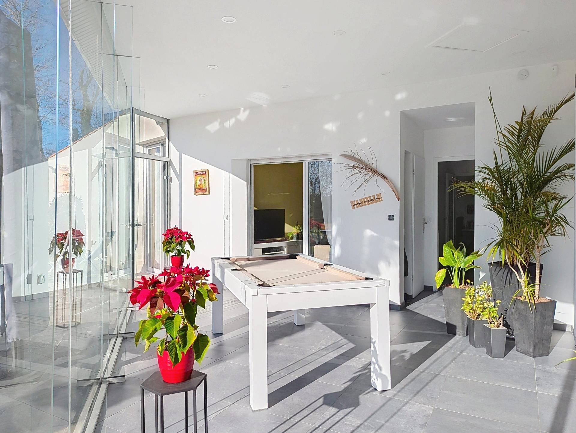 Sur les hauteurs prisées de Ramonville, au cœur d’un environnement résidentiel et calme, cette somptueuse villa entièrement rénovée séduit par ses volumes généreux, sa luminosité exceptionnelle et la qualité de ses prestations. Développant 264 m² habitables, elle offre un cadre de vie rare, alliant confort contemporain et élégance. Dès l’entrée, la villa s’articule autour d’une magnifique pièce de vie d’environ 80 m², largement ouverte sur l’extérieur et inondée de lumière naturelle. Cet espace généreux accueille plusieurs salons, une salle à manger chaleureuse ainsi qu’une vaste cuisine ouverte, parfaitement pensée pour recevoir. Toujours de plain-pied, la maison propose une première suite parentale avec salle de bain et dressing, ainsi que trois chambres, chacune disposant d’un accès direct vers l’extérieur. Deux salles d’eau, un espace bureau/salon, une superbe verrière, une buanderie et trois toilettes complètent ce niveau pensé pour un confort optimal. À l’étage, un véritable espace privatif s’offre à vous avec une grande suite parentale baignée de lumière, dotée d’une salle de bain moderne, d’un dressing sur mesure, d’un toilette indépendant et d’une superbe terrasse paysagée, offrant une vue dégagée et apaisante. À l’extérieur, le charme opère immédiatement : Un véritable havre de paix, sans vis-à-vis, composé d’un espace piscine (10x5) intimiste avec pool-house, de multiples terrasses propices à la détente, d’un boulodrome et d’une entrée privative permettant le stationnement de plusieurs véhicules, avec carport. L’ensemble s’étend sur une parcelle paysagée de 2 368 m², parfaitement entretenue. Un bien rare, idéal pour une clientèle en quête de prestations de standing, de tranquillité et d’un cadre de vie privilégié aux portes de Toulouse. Ce bien est complété par un spacieux sous-sol de 80 m² offrant un garage, une pièce multifonction et de nombreux espaces de rangement. Les atouts: chauffage par pompe à chaleur, panneaux solaires, ballon d'eau thermodynamique, cheminée au gaz, alarme connectée, abri piscine coulissant, belle performance énergétique ainsi qu'une exposition sud sans vis-à-vis. Proche de toutes les commodités, services, écoles et transports. Produit rare à découvrir sans tarder!