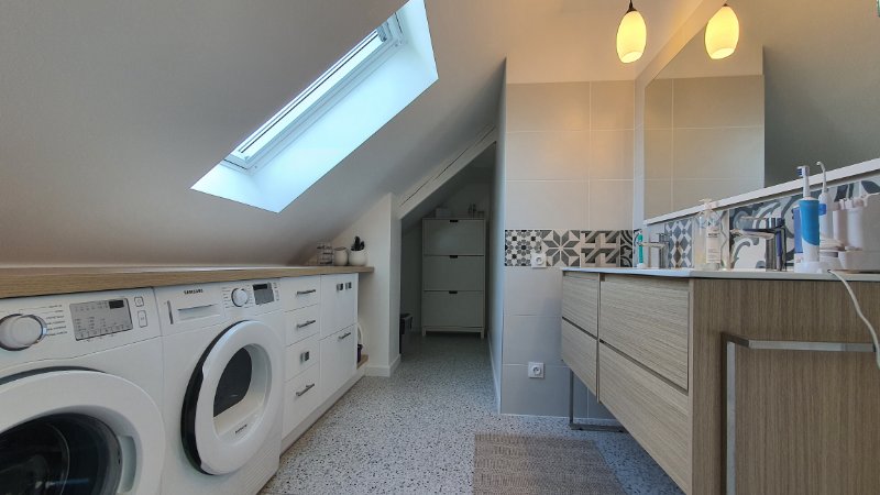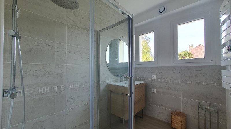 Secteur privilégié, Maison 4 chambres de 160 m² carrez, sur sous-sol total.<br/>Lumineuse et spacieuse avec le confort d’un plain-pied, sortant d'une rénovation intégrale de qualité à 8min de la gare de Bezannes, 10min de Reims, 12min de l'autoroute.<br/>Rdc : 1 entrée, 1 pièce de rangement et dressing, 1 séjour et cuisine de 90m², 1 chambre, 1 salle de douche italienne, 1 WC, accès sous-sol et 1er niveau.<br/>1 er étage : 1 grand palier dégagé avec placard, 1 salle de douche/buanderie, 1 WC, 1 bureau/chambre, 2 chambres avec placard dont 1 avec dressing et rangements attenant<br/>Sous-sol total : cuisine d'été, garage porte automatique, atelier, pièces et nombreux rangements.<br/>Extérieurs : grand terrain piscinable, terrasses sud-ouest, parkings.<br/>Ensemble : intégralement revue a neuf, du sol au plafond, isolation, fenêtres, portes-fenêtres, volets électriques télécommandés, porte de garage, poêle à granulés connecté, plomberie, électricité, ravalement extérieur avec tous les équipements et matériaux de qualité. Nouveau DPE en cours suite aux améliorations énergétique du bâti. Informations et Visite virtuelle possible sur demande téléphonique uniquement.