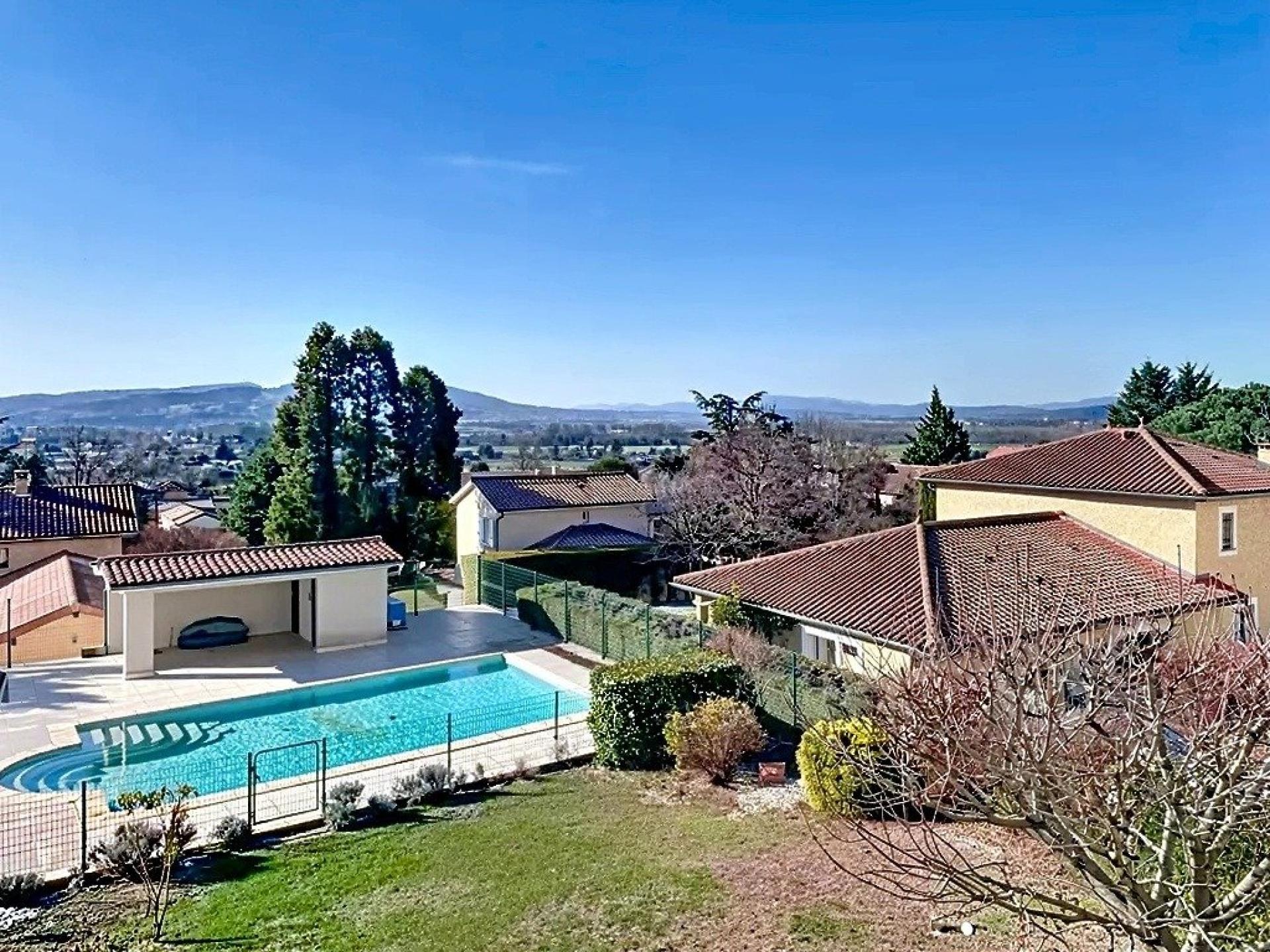 Dans un environnement résidentiel privilégié, au calme absolu, cette maison d’architecte individuelle de 238 m² offre un cadre de vie rare, sublimé par une vue dégagée exceptionnelle sur les Monts d’Or, le Lyonnais et le Beaujolais. Construite en 1992 sur une parcelle arborée de 1 109 m², la maison séduit par ses volumes généreux, sa luminosité et la qualité de ses prestations. La maison se développe sur deux niveaux et propose 7 pièces, dont 4 chambres, idéales pour une vie familiale confortable. Les espaces de vie sont chaleureux et ouverts sur l’extérieur, avec une belle harmonie entre intérieur et jardin. Cheminée, climatisation et prestations soignées participent à un confort optimal en toute saison. Le jardin paysagé, parfaitement entretenu, accueille une piscine au sel sécurisée et chauffée, équipée de buses de massage, invitant à la détente face à un panorama remarquable. Côté équipements et performance énergétique, le bien bénéficie de prestations de qualité : - Isolation par l’extérieur et des combles - Pompe à chaleur air/eau - Panneaux solaires - Ballon thermodynamique Un grand sous-sol d’environ 80 m² complète l’ensemble, ainsi qu’un bureau de 20 m², pouvant être aménagé en appartement indépendant pour un projet locatif ou une activité professionnelle. La propriété dispose également de deux garages fermés, d’abris de jardin et permet le stationnement de plusieurs véhicules. Situation idéale, à proximité immédiate des écoles, bus, petits commerces, centre culturel et des bords de Saône. Accès rapide aux villes et gares : Trévoux à 3 km, Villefranche-sur-Saône à 10 km, Lyon à 25 minutes, Mâcon à 30 minutes. Un bien rare, alliant emplacement, vue, volumes et prestations, pour une qualité de vie exceptionnelle. Je me tiens à votre disposition pour organiser une visite et vous faire découvrir cette maison dans les meilleures conditions.