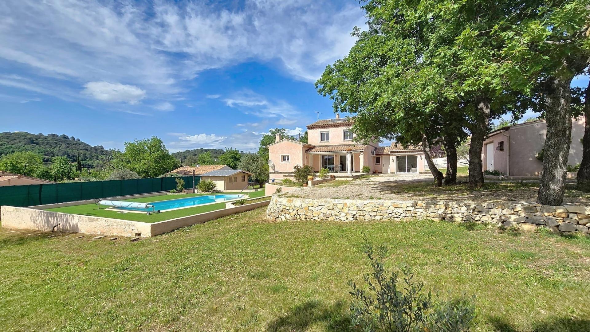 Située dans la charmante commune de Rocbaron (83136), cette maison bénéficie d'un environnement paisible en pleine campagne, tout en étant à proximité des écoles et du collège, offrant ainsi un cadre de vie idéal pour les familles. De plus, sa position plein sud permet de profiter d'une exposition ensoleillée tout au long de la journée. Les futurs propriétaires pourront également apprécier la présence de la fibre pour une connectivité optimale. À l'extérieur, cette propriété sur un terrain de 2200 m² se distingue par sa piscine, sa terrasse, sa cave, ainsi que son jardin soigneusement entretenu. Deux garages, un bureau et un cabanon viennent compléter cet espace extérieur offrant diverses possibilités d'aménagement pour profiter pleinement des beaux jours en Provence. À l'intérieur, cette maison traditionnelle de 163 m² sur 2 niveaux se compose de 8 pièces comprenant 4 chambres, 2 toilettes et 2 salles de bain. Construite en 1991 en parpaing avec une toiture en tuiles canal, elle offre des espaces de vie lumineux et confortables, climatisés pour le bien-être de ses habitants. Avec ses aménagements pratiques et la qualité de ses finitions, cette propriété représente une opportunité unique pour une vie de qualité dans un cadre privilégié.