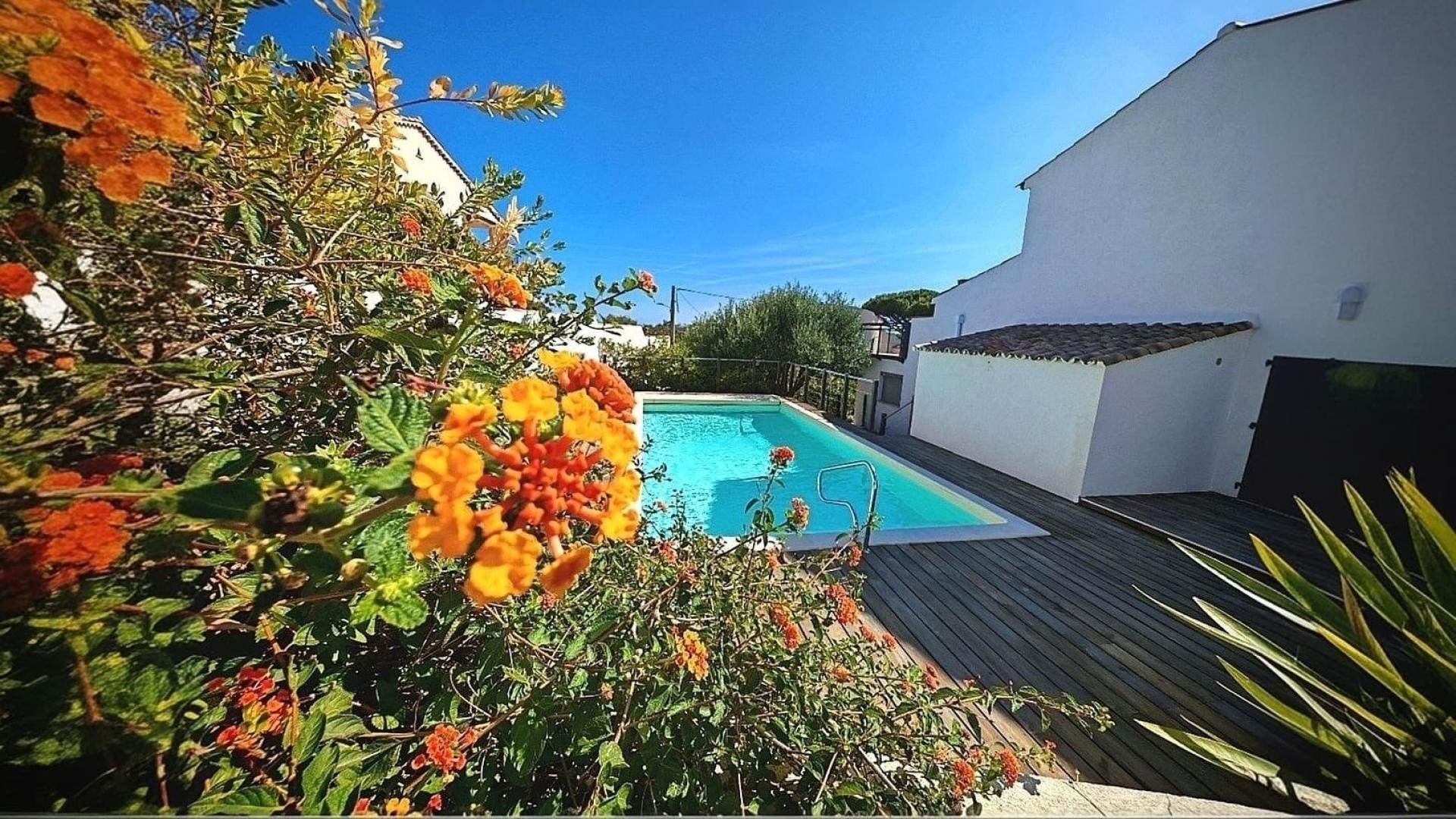 Situé aux Issambres (83380), cet appartement offre un cadre de vie privilégié entre mer et montagne. La commune bénéficie d'un climat agréable et d'une proximité avec les commerces, restaurants et services essentiels. Les plages de sable fin de la Méditerranée ne sont qu'à quelques mètres, offrant ainsi un cadre idéal pour profiter de la douceur du climat provençal. À l'extérieur, cet appartement de 100 m² en rez-de-jardin se distingue par une jolie vue mer et l'accès à une piscine partagée, parfait pour se détendre en toute tranquillité. La parcelle privative de 414 m² permet de profiter d'un jardin aménagé et entretenu avec soin, idéal pour des repas en extérieur ou des moments de convivialité entre amis ou en famille. À l'intérieur, ce bien entièrement rénové se compose d'une entrée menant à une cuisine équipée de qualité et à un lumineux espace de vie donnant sur le jardin. Les 3 chambres offrent un espace de repos confortable, chacune disposant de sa propre salle d'eau. Un bureau (ou dressing) est également présent, offrant un espace de travail ou de loisirs supplémentaire. Enfin, la cave/buanderie de 41 m² et les 2 places de parking viennent compléter ce bien, alliant confort et fonctionnalité pour une qualité de vie optimale. Venez découvrir le charme de cet appartement en le visitant !