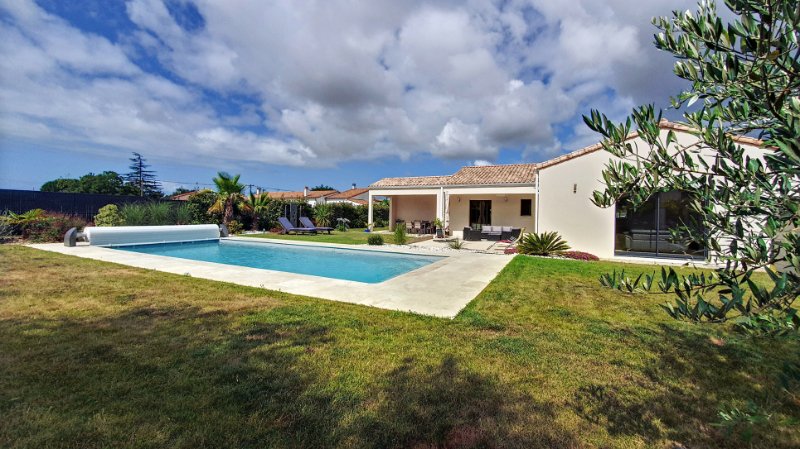 "EN EXCLUSIVITE", dans la station balnéaire de ROYAN avec ses plages, sa côte sauvage, son Marché Central, Quartier PONTAILLAC, venez découvrir cette magnifique maison traditionnelle de 1996 construite sur vide sanitaire avec de belles prestations, sans vis à vis et lumineuse, où l'on peut y vivre de plain-pied comprenant au rez-de-chaussée une belle pièce de vie traversante en partie cathédrale dotée d'une cheminée avec insert donnant d'un côté sur un balcon avec un escalier menant au deuxième garage et à l'allée pour les voitures et de l'autre sur une grande terrasse de plus de 33 m² exposée Sud/Est avec un grand store banne électrique, deux grandes chambres, une cuisine aménagée et équipée fermée, une salle de bains avec baignoire d'angle et double vasque avec radiateur sèche serviettes, un WC. Au 1er étage une belle mezzanine servant actuellement de salle de billard, deux chambres dont une avec dressing, une salle d'eau avec WC. Communiquant avec la cuisine, vous trouverez un premier garage isolé de plus de 22 m² avec galetas 18 m² au sol suivi d'une buanderie/cellier/chaufferie de 10 m² et d'un second garage isolé de plus de 25 m² (2001) avec espace atelier et deux galetas 12 m² au sol. Le studio de 40 m² indépendant a été construit en 2008. Il est attenant à la maison et en triple exposition. Il comprend au rez-de-chaussée une cuisine aménagée et semi équipée ouvert sur le séjour qui donne directement sur une terrasse privative sans vis à vis avec la maison principale, une salle d'eau avec grande douche, radiateurs sèche serviettes et WC et au 1er étage une mezzanine avec espace nuit. Il est relié au chauffage central de la maison principale et dispose d'un compteur électrique indépendant. A l'extérieur vous trouverez un abri en dur avec prise et électrique pour entreposer le bois, une grande allée en béton désactivé menant à un des garages où l'on peut garer quatre voitures et une autre place de stationnement en béton désactivé devant le second garage. Le tout sur un terrain clos de 541 m². AUCUN TRAVAUX. Huisseries en double vitrage PVC, volets en PVC + volets roulants électriques façade avant et volets roulants à manivelle façade arrière, Chauffage et production d'eau chaude gaz de ville (chaudière à eau chaude instantanée de 2007 FRISQUET), Vide sanitaire sur maison principale de 80 cm de hauteur, VMC, Tout à l'égout, Fibre optique, Tuiles canal, Enduit gratté, Electricité refaite en 2021. Maison en triple exposition Est/Sud/Ouest. Deux portails, un coulissant en PVC et un second deux battants en PVC. Portes de garage coulissantes. Robinets et prises extérieurs. TAXE FONCIERE 2024 : 2 695 € A 6 mn en voiture de la plage de Pontaillac et à 8 mn de la place de la Grande-Conche, A 6 mn en voiture et 25 mn à pied du Marché Central et des commerces. A 3 mn en voiture et à 15 mn à pied du centre commercial de Vaux sur Mer avec ses magasins et station service. A 10 mn en voiture de la gare. Proche arrêt de bus. BELLE OPPORTUNITE A SAISIR POUR CETTE MAISON AVEC SON GRAND STUDIO INDEPENDANT ET SES NOMBREUSES PLACES DE STATIONNEMENT. AUCUN TRAVAUX. ELLE VOUS PERMET DE RECEVOIR DES AMIS, DE LA FAMILLE ET VOUS POUVEZ EGALEMENT FAIRE DE LA LOCATION SAISONNIERE. VENEZ LA VISITER ET POSEZ VOS VALISES! APPELEZ MOI VITE AU 06 70 96 69 32 - DISPONIBLE 7/7 JOURS POUR LES VISITES