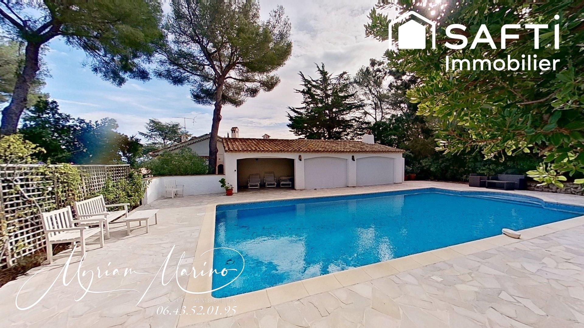 Nichée au calme dans un écrin de verdure, cette villa familiale d’environ 250 m² offre une vue mer panoramique et un fort potentiel. Édifiée sur 1500 m² de terrain arboré, elle se compose d’un étage principal F5 et de deux appartements indépendants (F4 et F3) en rez-de-jardin, idéals pour recevoir ou générer un revenu locatif. Les atouts : Vue mer sans vis-à-vis • Piscine 12 m avec pool house • Terrasse 20 m² • Deux garages • Jardin paysager • Pièces de vie climatisées • Proximité plages, port et commerces Un bien rare alliant espace, calme et vue mer, à découvrir sans tarder !