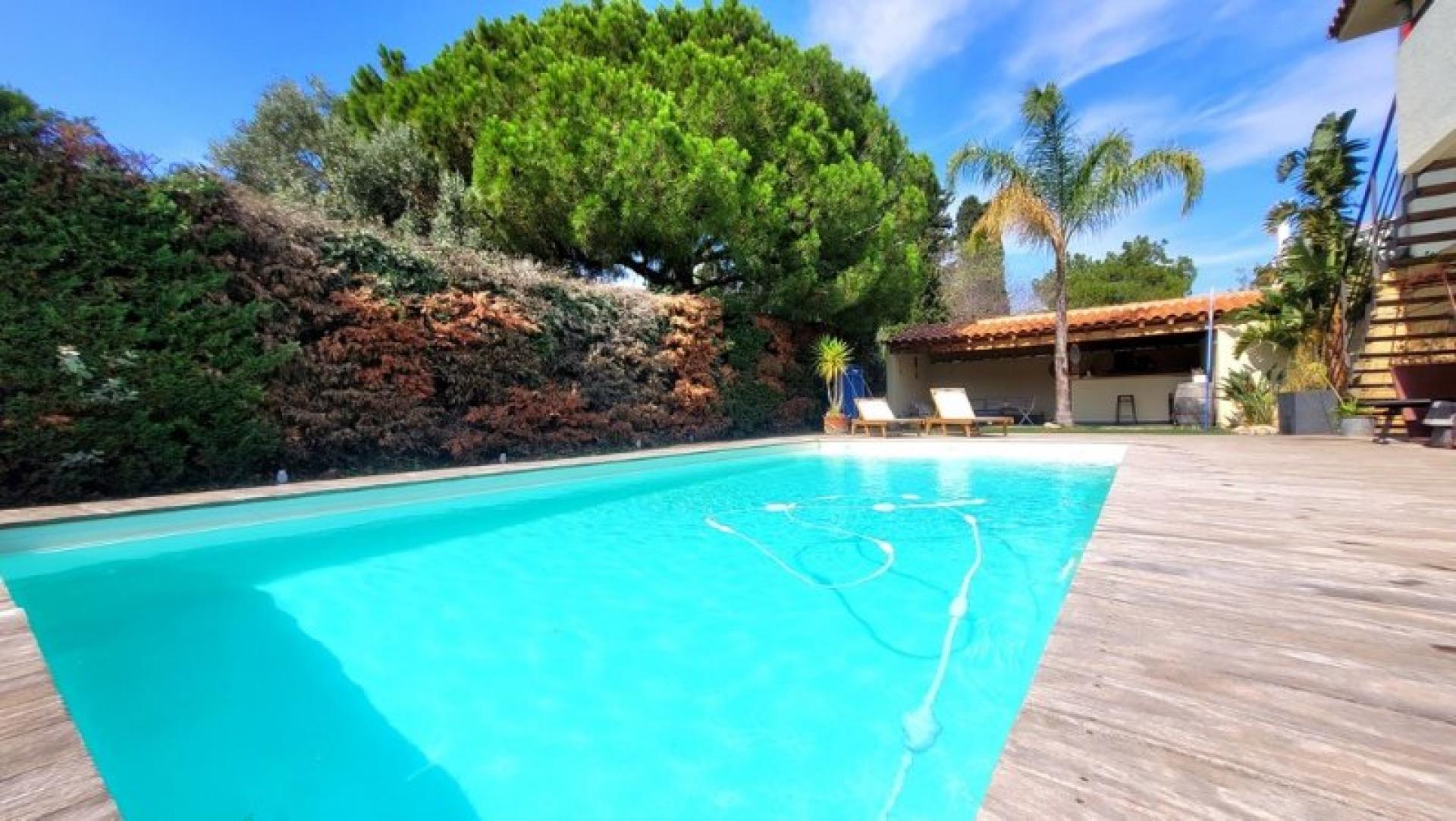 Située dans un charmant quartier prisé de Saint-Cyprien, cette villa se distingue par sa proximité avec les boutiques locales et le littoral. Idéalement positionnée, cette propriété offre un cadre de vie incomparable, ajoutant une touche de quiétude à son allure moderne. À l'extérieur, cette propriété de 564 m² comprend une terrasse spacieuse, une pergola ombragée, une piscine rafraîchissante, une cuisine d'été conviviale, ainsi qu'un jardin paisible agrémenté d'un spa et d'un jacuzzi pour se détendre en toute intimité. À l'intérieur, cette villa de 197 m² répartis sur deux étages propose cinq suites luxueuses, chacune avec sa propre salle d'eau et WC. La pièce à vivre lumineuse de 67 m², orientée plein sud, s'ouvre sur les espaces extérieurs, offrant une harmonie parfaite entre les intérieurs élégants et les extérieurs soigneusement aménagés. Dotée de panneaux solaires, d'un chauffe-eau thermodynamique, cette propriété est également climatisée, offrant un confort de vie optimal.