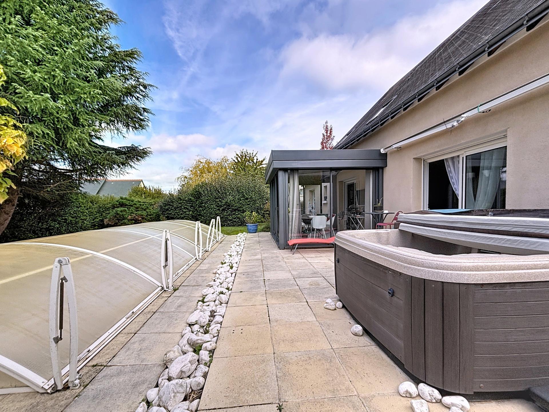 Située dans le quartier très prisé de la Ménardière à Saint-Cyr-sur-Loire, cette maison de 2015 offre une surface d’environ 160 m² ainsi qu'une vie de plain-pied. Elle bénéficie d’un environnement calme et résidentiel tout en restant à proximité immédiate des commerces, des écoles et des transports en commun. L’entrée, spacieuse et dotée de rangements, dessert une grande pièce de vie de 52 m² lumineuse grâce à sa triple exposition et ses baies vitrées. Cet espace réunit le salon, la salle à manger et une cuisine ouverte entièrement aménagée et équipée. La pièce de vie s’ouvre également sur une véranda de 15 m². Le rez-de-chaussée comprend deux chambres, dont une suite parentale climatisée avec sa salle de bains, ainsi qu’un cellier. Un WC séparé. À l’étage, trois chambres, une salle de bains, un WC indépendant, et d’une pièce de 27 m² à aménager selon vos besoins. L’extérieur, sans aucun vis-à-vis, s’étend sur plus de 1 000 m². Il comprend une piscine 8x4 équipée d’un liner neuf et d’une bâche à barres neuve (novembre) qui remplacera le dôme, d’un moteur et d’une pompe à chaleur. Un spa, un cabanon de jardin ainsi qu’un robot tondeuse complètent cet ensemble, offrant un cadre idéal pour profiter des beaux jours.