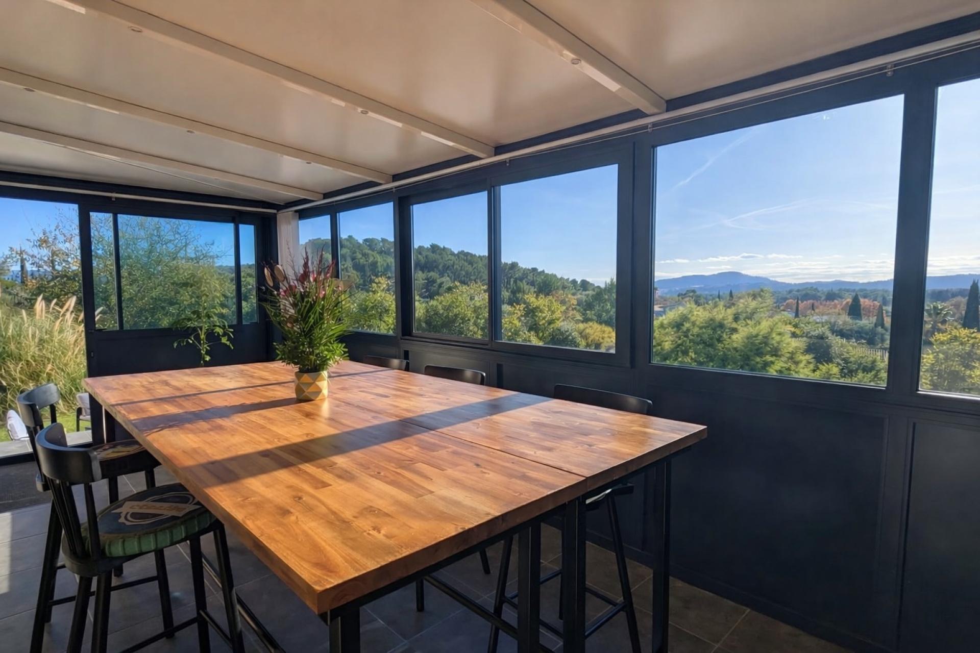 Située à 5 mn de la Cadière D'Azur et à 10 mn de Saint-Cyr-sur-Mer dans un petit village provençal. Superbe maison contemporaine avec vue panoramique Située dans un environnement calme et verdoyant, cette belle maison de 2014 offre une surface habitable de 130 m² (110 m² Carrez + 20 m² de véranda isolée) sur un terrain d’environ 650 m², au cœur d’un petit lotissement recherché. Vous serez séduit par son vaste séjour lumineux de près de 50 m², ouvert sur une cuisine équipée avec îlot central + arrière cuisine , idéal pour recevoir famille et amis. La maison dispose actuellement de trois chambres et d’un dressing (pouvant être utilisé comme quatrième chambre 9,2m² ou d'une seconde salle d'eau afin de créer une suite parentale ), ainsi que d’une salle d’eau moderne avec douche à l’italienne. Côté extérieur, profitez d’un véritable havre de paix avec une piscine au sel de 7 x 3,5 m, et d’une spacieuse terrasse de plus de 30 m². La véranda isolée de 20 m² constitue un espace privilégié pour admirer la vue dégagée sur la campagne environnante . Le terrain, arboré et parfaitement entretenu, complète ce cadre idyllique. De nombreux atouts viennent enrichir ce bien : Véranda isolée de 20 m² avec vue panoramique Grande terrasse de +30 m² Garage d’environ 25 m² 12 panneaux solaires permettant de réduire considérablement la consommation électrique Climatisation gainable dans toutes les pièces Chauffe-eau thermodynamique Deux réservoirs de récupération d’eau de pluie de 550 L chacun Système d’alarme intégré (maison + garage) Raccordement au tout-à-l’égout Aucun travaux à prévoir : vous n’avez plus qu’à poser vos valises et profiter du confort de vie offert par cette maison récente. Un cadre campagne privilégié, à la fois paisible et proche de toutes les commodités, à seulement 7min des axes autoroutiers, idéal pour une famille à la recherche de confort et de sérénité. Pour plus d’informations ou organiser une visite, n’hésitez pas à nous contacter. Interagence bienvenue.
