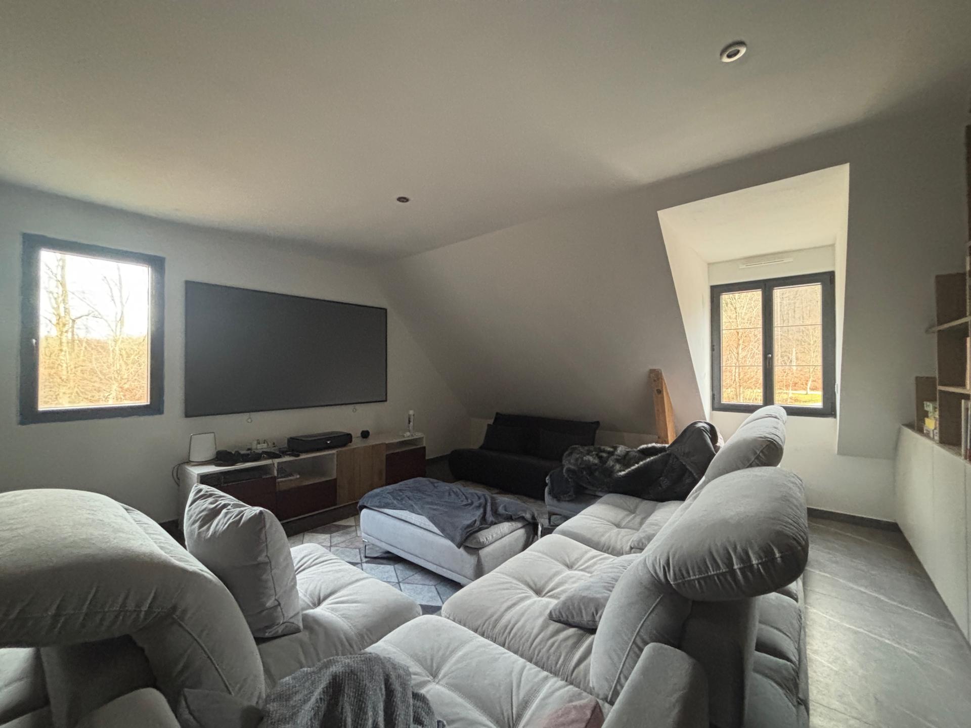 Située au cœur de la très prisée commune de Saint-Jean-aux-Bois (60350), cette propriété contemporaine de 290 m², bénéficie d’un emplacement rare, au sein d’un environnement boisé préservé, offrant un calme absolu et une véritable sensation de déconnexion tout en restant à proximité de Compiègne. Implantée sur un terrain paysager de plus de 5 000 m², la propriété s’inscrit harmonieusement dans son environnement naturel. Elle dispose d’un double garage, équipé de prises de recharge pour véhicules électriques, alliant praticité et modernité. La maison offre des volumes généreux et une luminosité omniprésente. Le rez-de-chaussée accueille une vaste pièce de vie avec cuisine ouverte, ainsi qu’une suite parentale avec salle d’eau et dressing, une buanderie et wc. À l’étage, l’espace nuit se compose de quatre chambres, d’une salle de bains, wc, ainsi que d’un salon de 50 m², véritable espace de détente supplémentaire. Equipée de domotique, cette propriété conjugue confort moderne, fonctionnalité et qualité de vie, dans un cadre naturel d’exception.