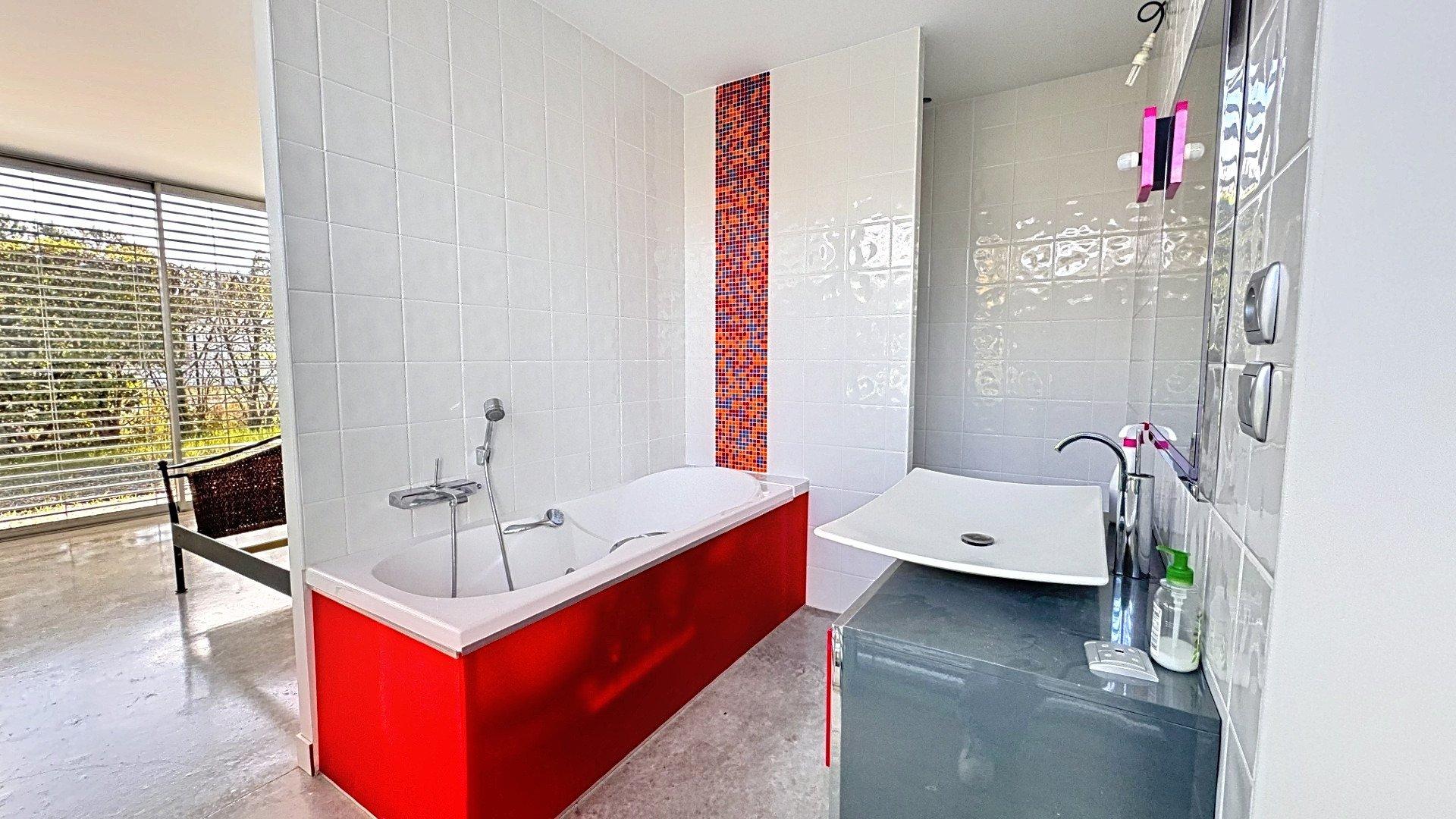 Découvrez cette villa contemporaine de plain-pied, aux inspirations californiennes, nichée au cœur d’un terrain arboré de 1 100 m². Avec ses 224 m² habitables, ses volumes généreux et ses prestations soignées, cette propriété offre un cadre de vie alliant modernité et sérénité. La pièce de vie lumineuse, sublimée par une cheminée rotative centrale et de larges baies vitrées, s’ouvre sur une terrasse bordant une piscine sans vis-à-vis. L’agencement en L autour de cet espace extérieur crée une harmonie parfaite entre intérieur et extérieur. La maison comprend 4 chambres, dont une suite parentale avec dressing, bureau, salle d’eau et WC privatifs. Pour compléter l’ensemble, un jacuzzi, un double garage avec porte électrique, et un portail motorisé à l’entrée. Laissez-vous séduire par cet espace lumineux, fonctionnel et chaleureux, où chaque détail a été pensé pour offrir un cadre de vie unique.