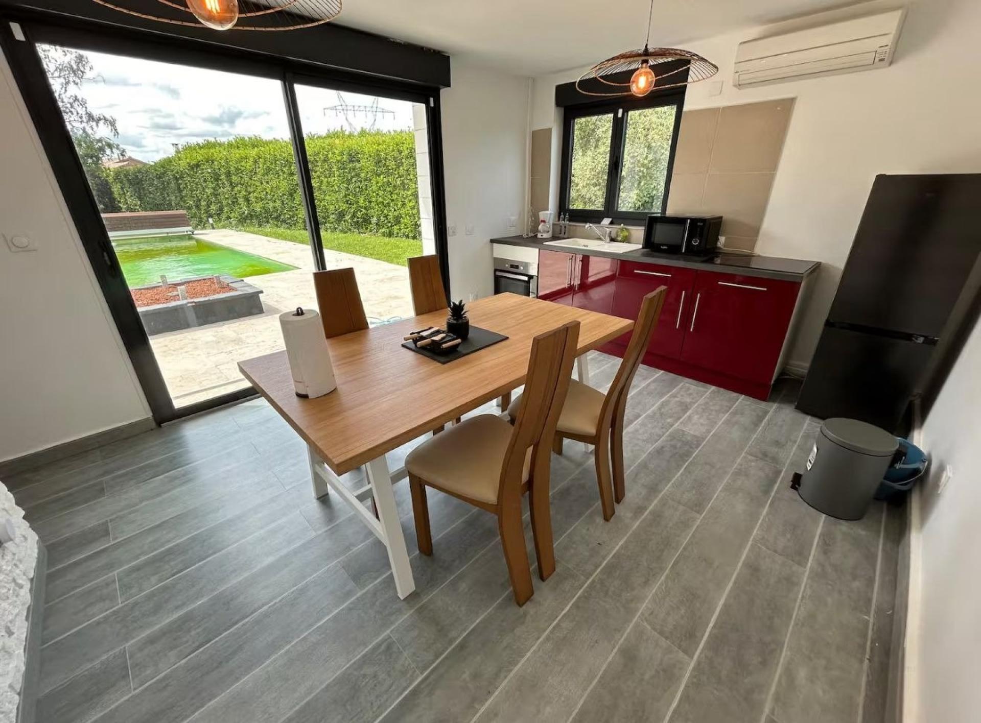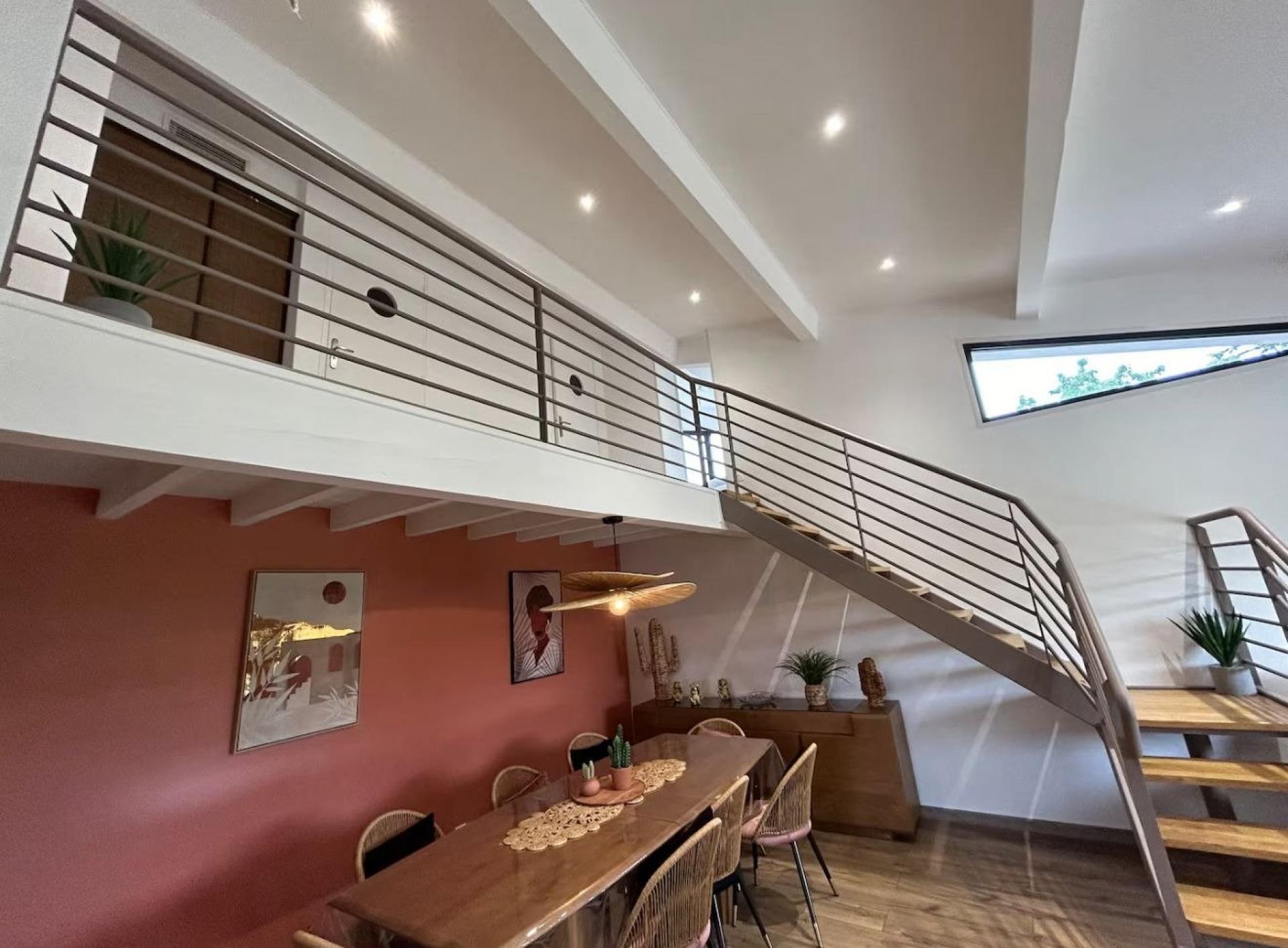 À Saint-Marcel-lès-Valence, cette élégante villa rénovée est proposée à la vente, actuellement exploitée en Airbnb avec d’excellents retours. Vendue entièrement meublée, elle permet une reprise immédiate de l’activité ou une installation sans travaux. La maison principale accueille jusqu’à 10 voyageurs et offre une vaste pièce de vie lumineuse, une suite parentale, une salle de sport et plusieurs chambres confortables. À l’étage, un dortoir familial et une chambre supplémentaire complètent les espaces nuit. Une aile indépendante comprend un appartement équipé, idéal pour 2 voyageurs supplémentaires. Le jardin clos et arboré propose une grande terrasse ainsi qu’une piscine chauffée (mai–octobre), très appréciée des hôtes. Garage et large cour facilitent le stationnement. Un bien rare, vendu avec tout son mobilier et son équipement, parfaitement optimisé pour la location courte durée ou pour une résidence clé en main combinant confort et rentabilité.