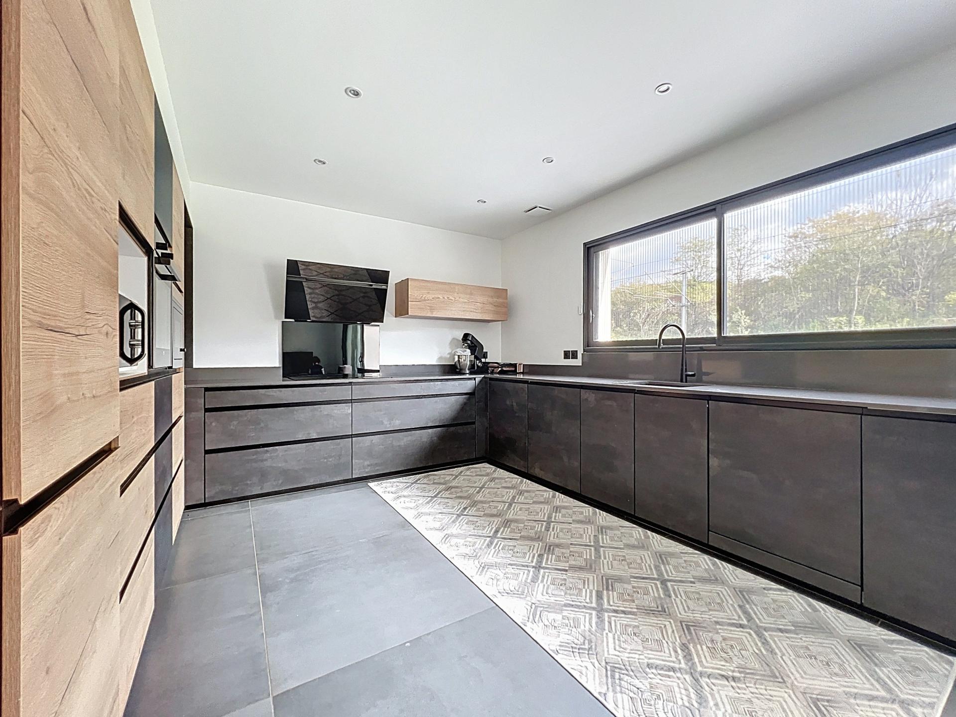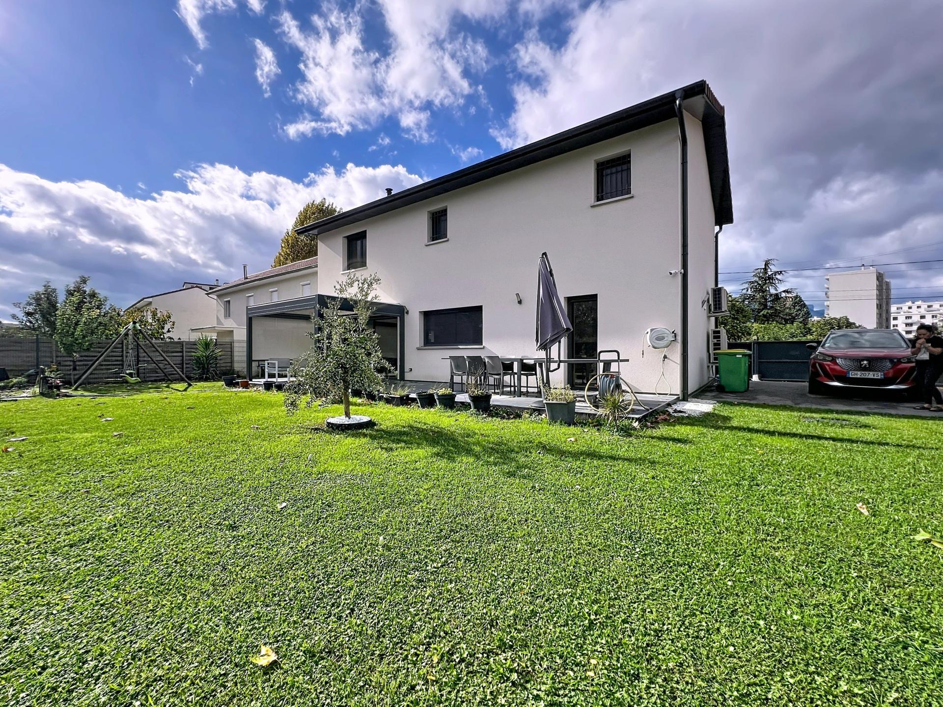 À Saint-Martin-d’Hères, dans un secteur résidentiel calme et recherché, découvrez cette maison contemporaine de 2022 offrant 168 m² habitables sur un terrain clos et paysagé de 527 m². Elle propose de belles prestations modernes et un confort optimal pour une vie de famille sereine. Le rez-de-chaussée accueille une vaste pièce de vie lumineuse de 60 m², ouverte sur une terrasse équipée d’une pergola bioclimatique, idéale pour profiter des beaux jours. Cuisine grande, moderne, entièrement aménagée et équipée. Une chambre, une salle d’eau et un WC séparé complètent ce niveau. À l’étage, l’espace nuit se compose de 4 chambres avec placards intégrés, dont une suite parentale avec salle d’eau et dressing, ainsi qu’une grande salle de bain. Chauffage performant par PAC air/eau avec plancher chauffant sur les deux niveaux + climatisation au RDC + poêle à granulés. Très bon diagnostic énergétique (B/A). Portail automatique, vidéophone, maison non mitoyenne. Proche écoles, commerces, transports et axes rapides