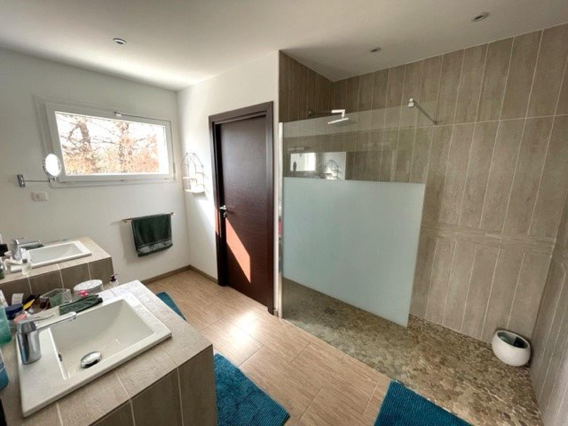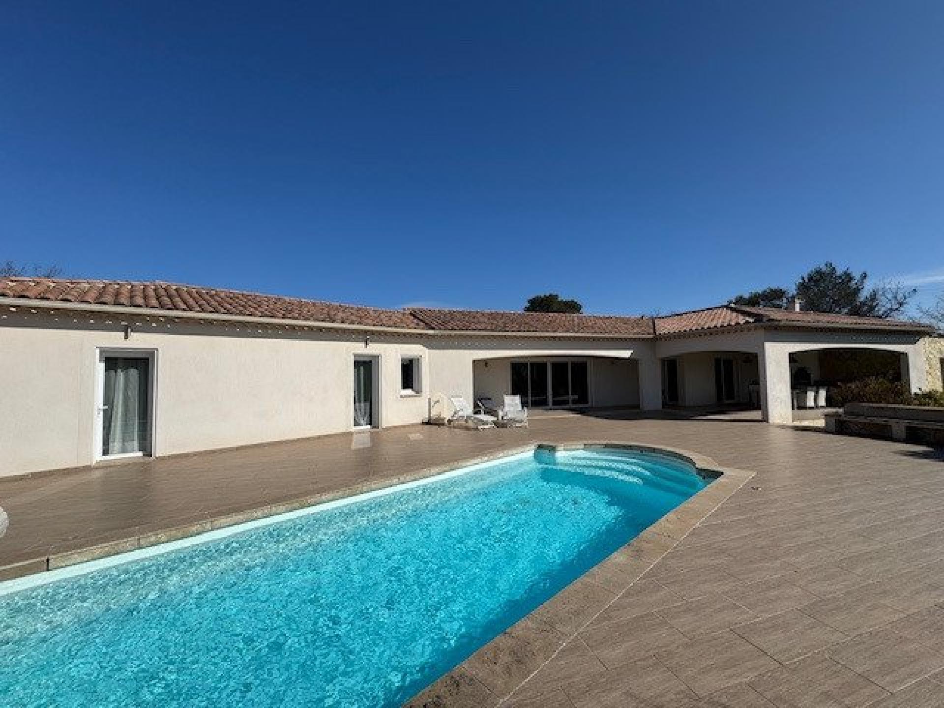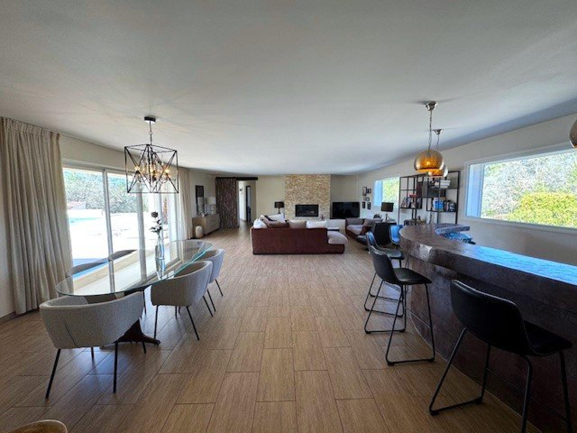 Située dans la charmante commune d'Ollières (83470), à 30 minutes d'Aix en Provence, à proximité de l’accès autoroute, cette propriété bénéficie d'un environnement paisible et d'une vue imprenable sur le mont Aurélien. Implantée sur un terrain de 4700 m² aménagé, orienté plein sud, offrant intimité et espace, cette demeure climatisée avec interphone et connexion fibre ravira les amateurs de tranquillité à la campagne. Construite en 2014, d'une surface de 205 m², elle se distingue par son vaste séjour de 80 m² avec cheminée, ouvrant sur une magnifique terrasse de plus de 200 m² avec piscine et cuisine d'été couverte. La cuisine est ouverte, aménagée et dispose d'un cellier. Le coin nuit se compose de trois chambres parentales équipées de salles d'eau et de toilettes ainsi que d'un bureau. Les baies vitrées à galandage et le plancher chauffant ajoutent une touche moderne et lumineuse à chaque pièce, offrant un confort de vie optimal. Prestation de qualité, dépendance de jardin et possibilité d’agrandissement. A visiter !!!