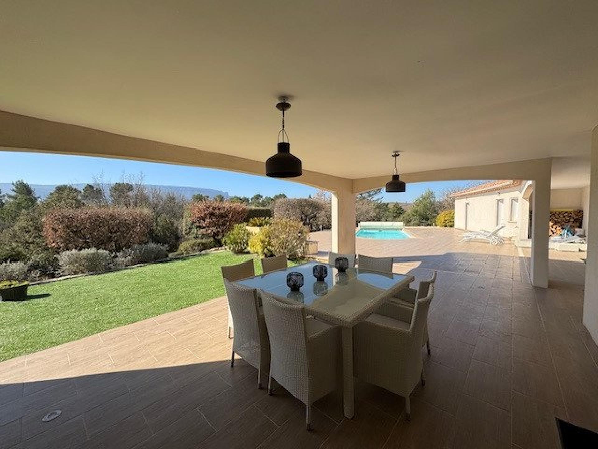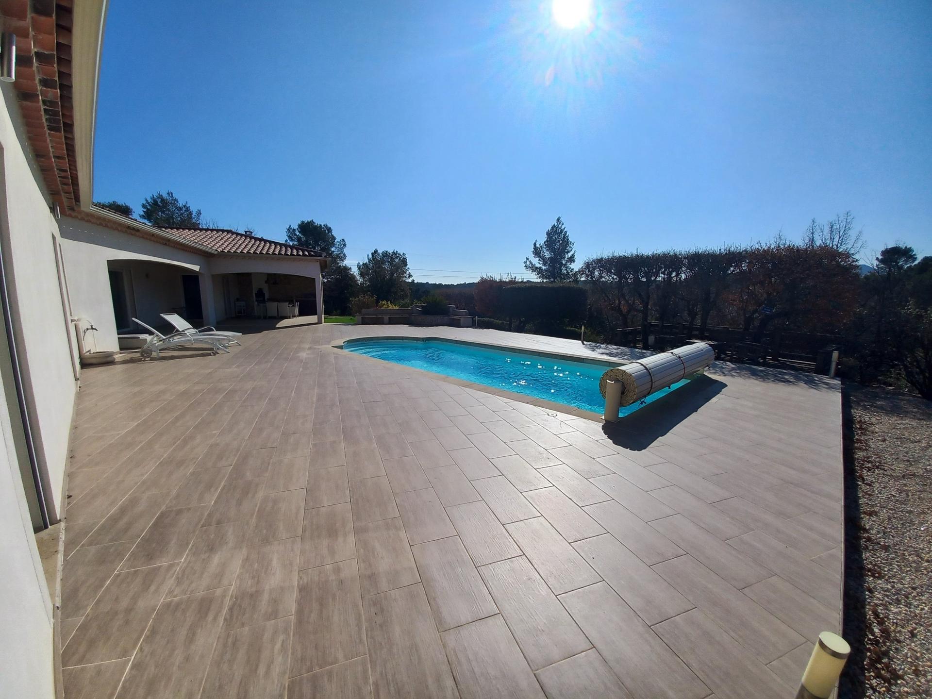Située dans la charmante commune d'Ollières (83470), à 30 minutes d'Aix en Provence, à proximité de l’accès autoroute, cette propriété bénéficie d'un environnement paisible et d'une vue imprenable sur le mont Aurélien. Implantée sur un terrain de 2830 m² aménagé, orienté plein sud, offrant intimité et espace, cette demeure climatisée avec interphone et connexion fibre ravira les amateurs de tranquillité à la campagne. Construite en 2014, d'une surface de 205 m², elle se distingue par son vaste séjour de 80 m² avec cheminée, ouvrant sur une magnifique terrasse de plus de 200 m² avec piscine et cuisine d'été couverte. La cuisine est ouverte, aménagée et dispose d'un cellier. Le coin nuit se compose de trois chambres parentales équipées de salles d'eau et de toilettes ainsi que d'un bureau. Les baies vitrées à galandage et le plancher chauffant ajoutent une touche moderne et lumineuse à chaque pièce, offrant un confort de vie optimal. Prestation de qualité, dépendance de jardin et possibilité d’agrandissement. A visiter !!!