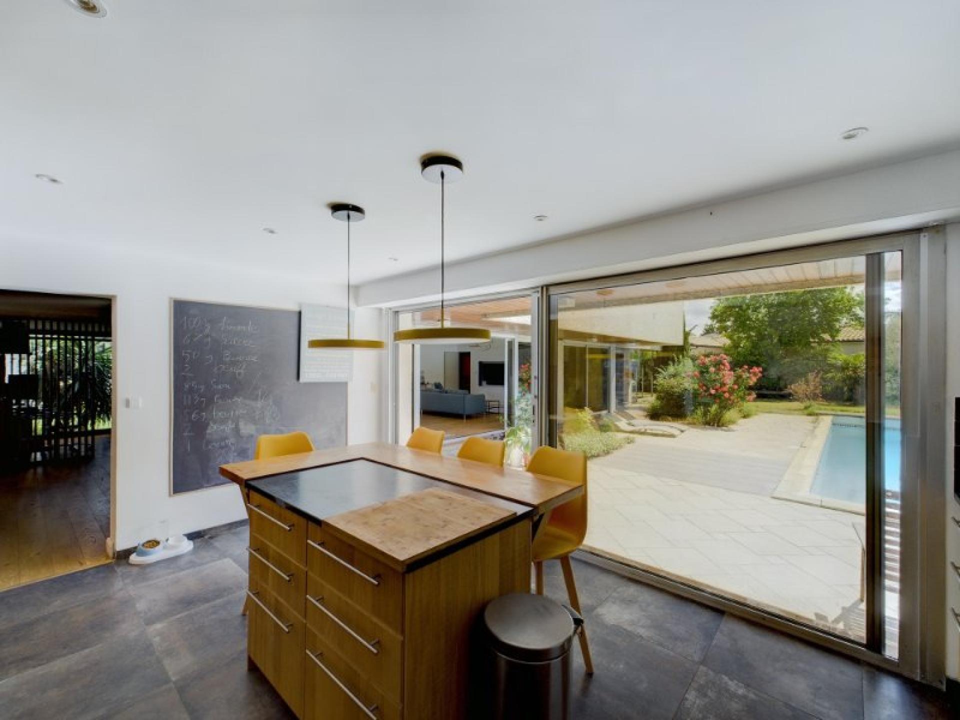 Damien Castagné SAFTI vous propose, à Saint-Médard en Jalles, quartier Gajac- Corbiac cette maison d'architecte des années 70 : elle dispose d'une vaste entrée, un agréable espace de vie traversant orienté sud ouest donnant sur un grand jardin avec piscine et sans vis à vis, une cuisine équipée ouverte sur une terrasse abritée. <br/>La partie nuit est composée de deux chambres et une salle de bain, ainsi qu'une suite parentale avec dressing et salle de bain. <br/>Un garage et cellier complètent l'ensemble.
