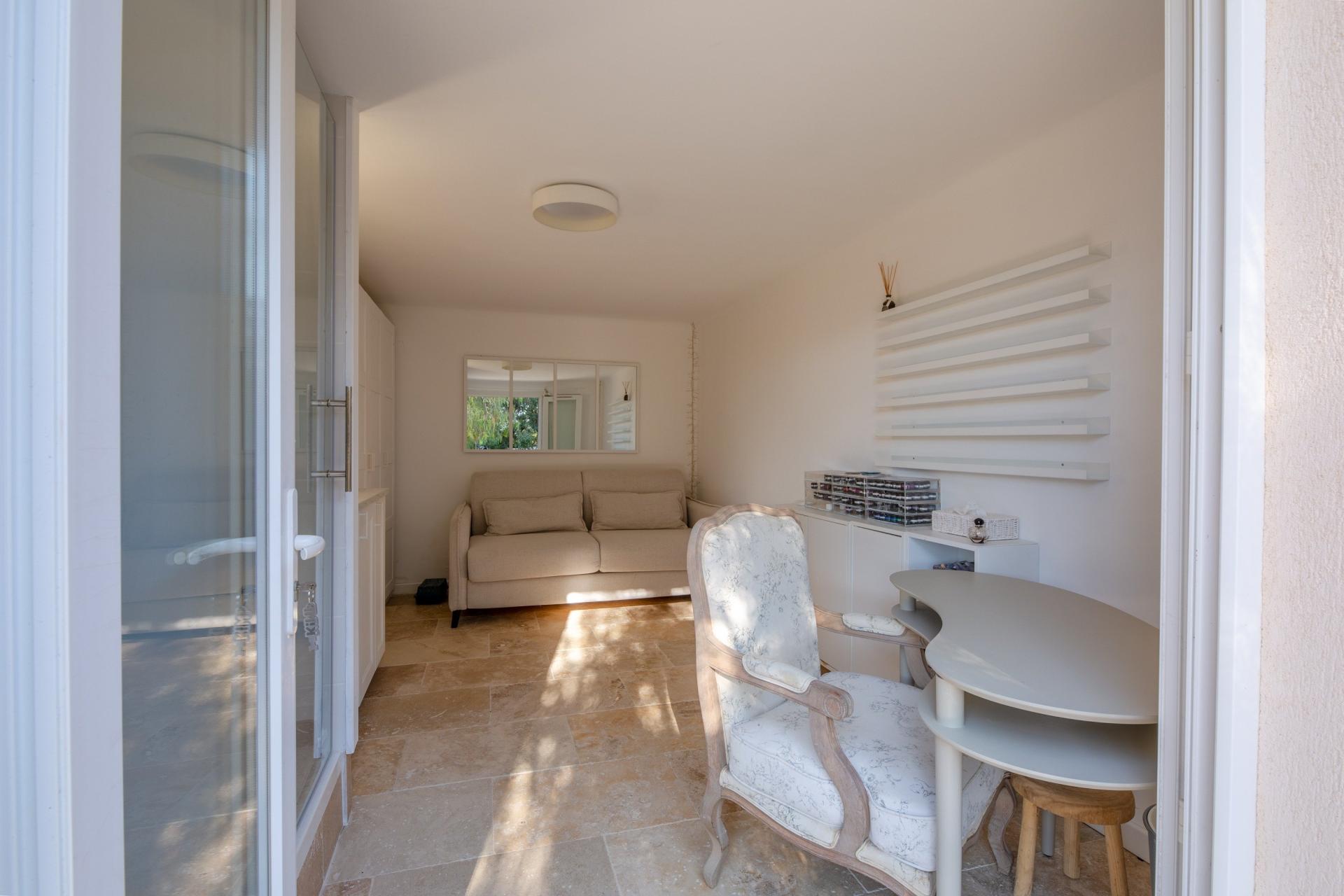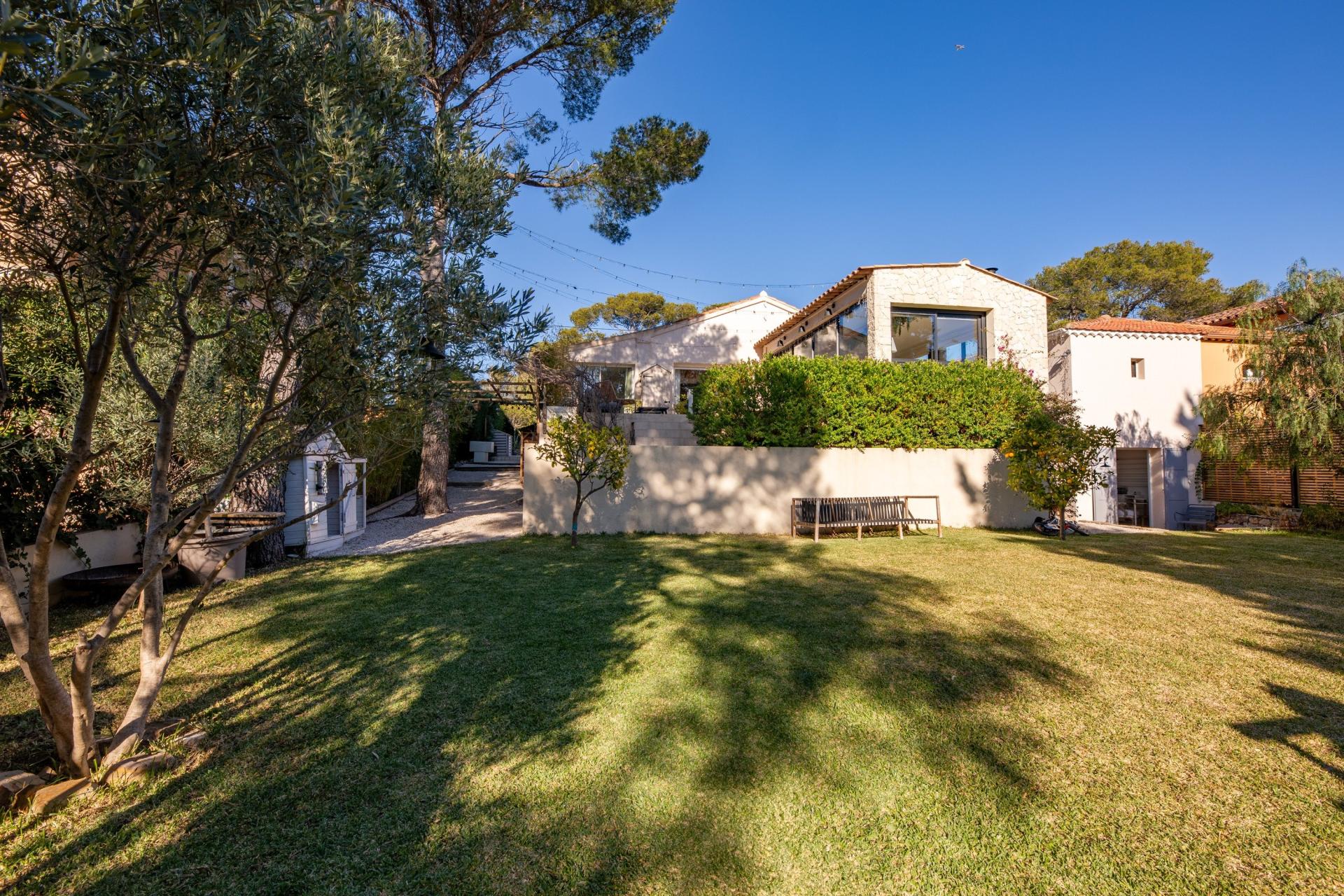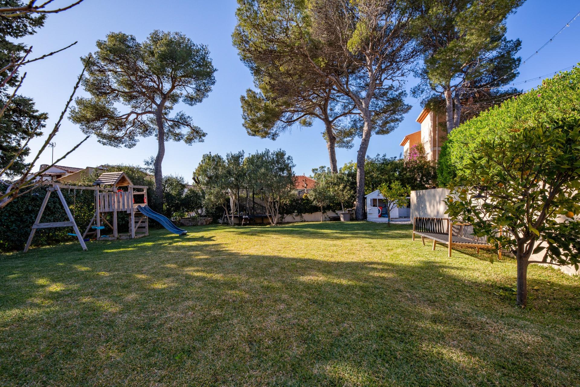 Située à Saint-Raphaël (83700), quartier les plaines cette charmante maison bénéficie d'un emplacement privilégié, alliant tranquillité et proximité des commodités. Nichée sur un terrain d'environ 800 m², elle offre un cadre de vie agréable à ses résidents, à seulement quelques pas des commerces locaux, du centre ville et de port Santa Lucia À l'extérieur, cette propriété dispose de 2 places de parking, d'un studio, d'un garage, une belle et lumineuse terrasse vue mer et d'une grande cave, offrant ainsi des options de rangement pratiques et polyvalentes pour ses occupants. Le jardin spacieux bénéficie déjà d'un accord préalable pour une piscine de 7x4m offrant ainsi un espace extérieur paisible, avec un véritable potentiel d'aménagement. À l'intérieur, la maison de plain pied d'environ 110 m² se compose de 5 pièces lumineuses, comprenant 3 chambres confortables, 2 toilettes et 2 salles de bain. Avec une surface habitable bien agencée, cette propriété offre un agencement fonctionnel et accueillant, idéal pour une vie de famille harmonieuse. L'espace intérieur bien structuré et les équipements modernes font de cette maison un véritable cocon chaleureux où il fait bon vivre et sans travaux a prévoir