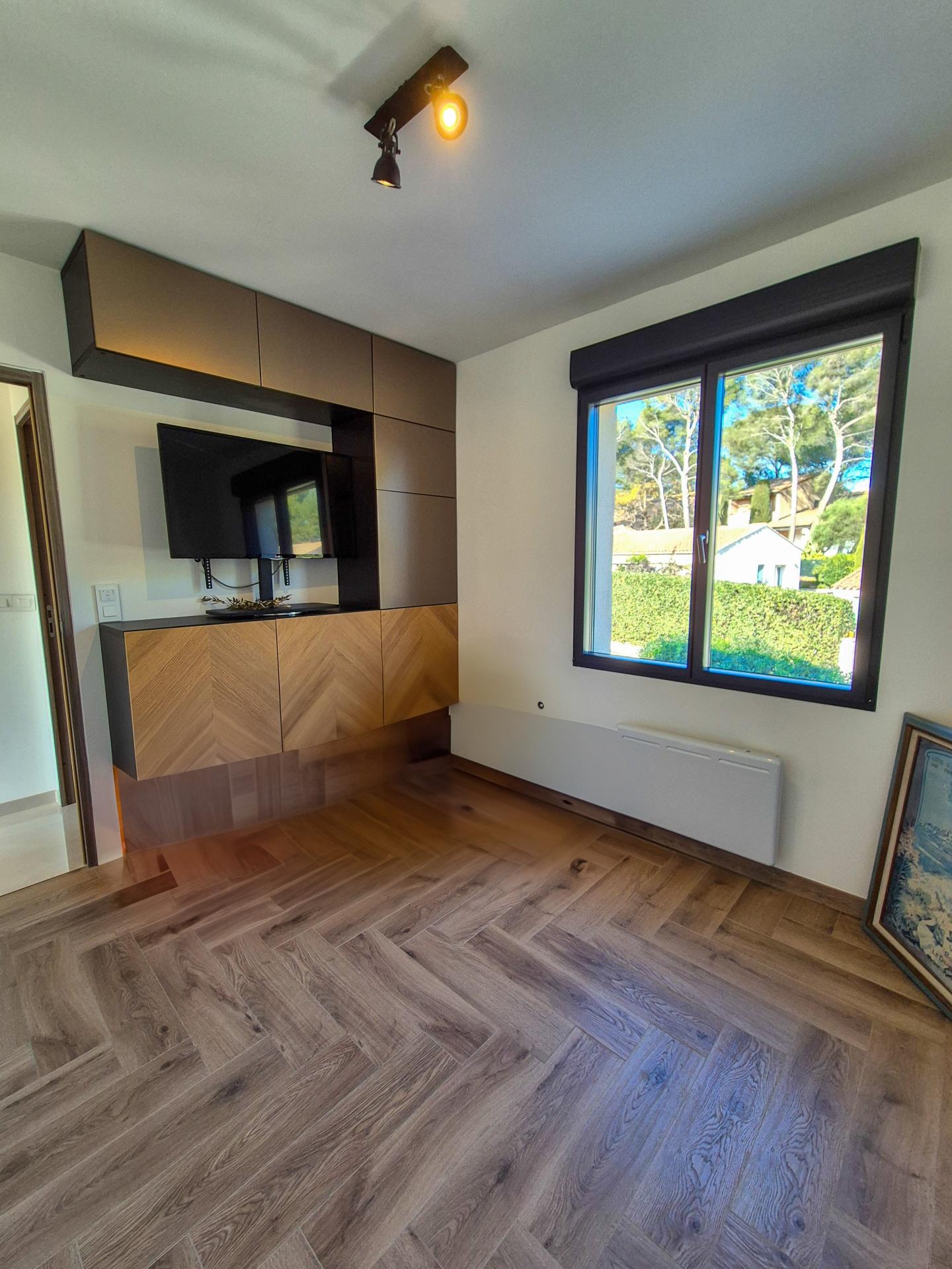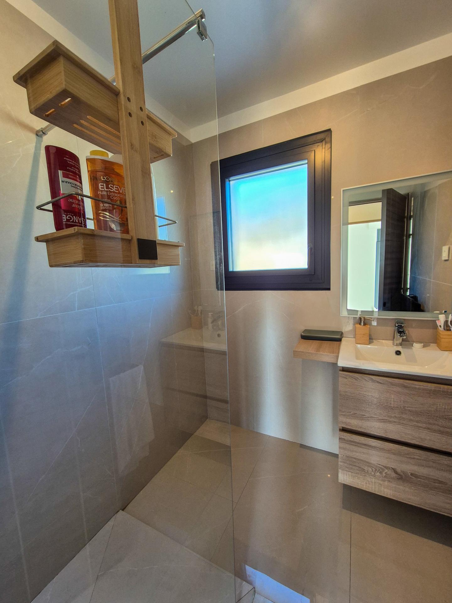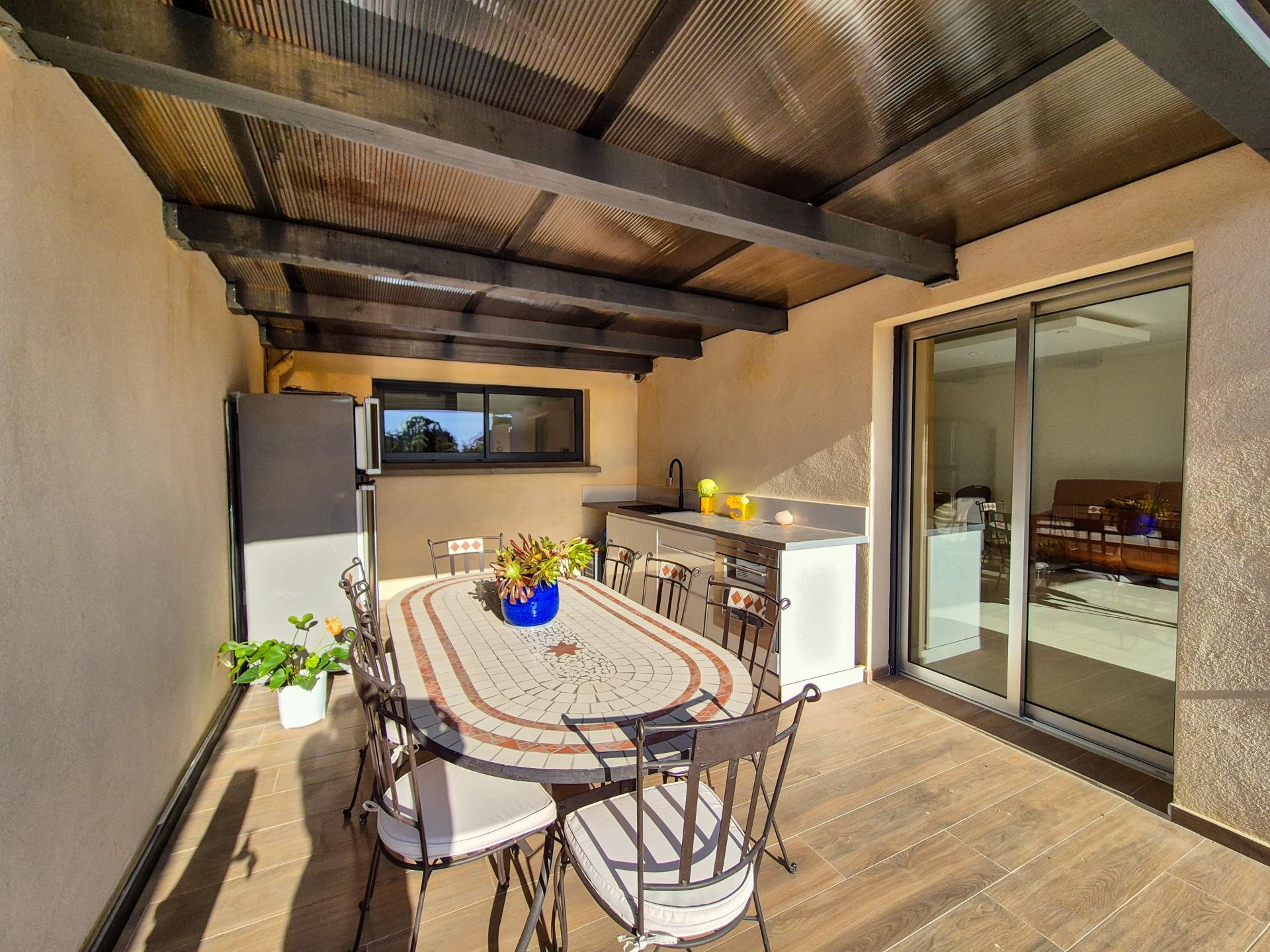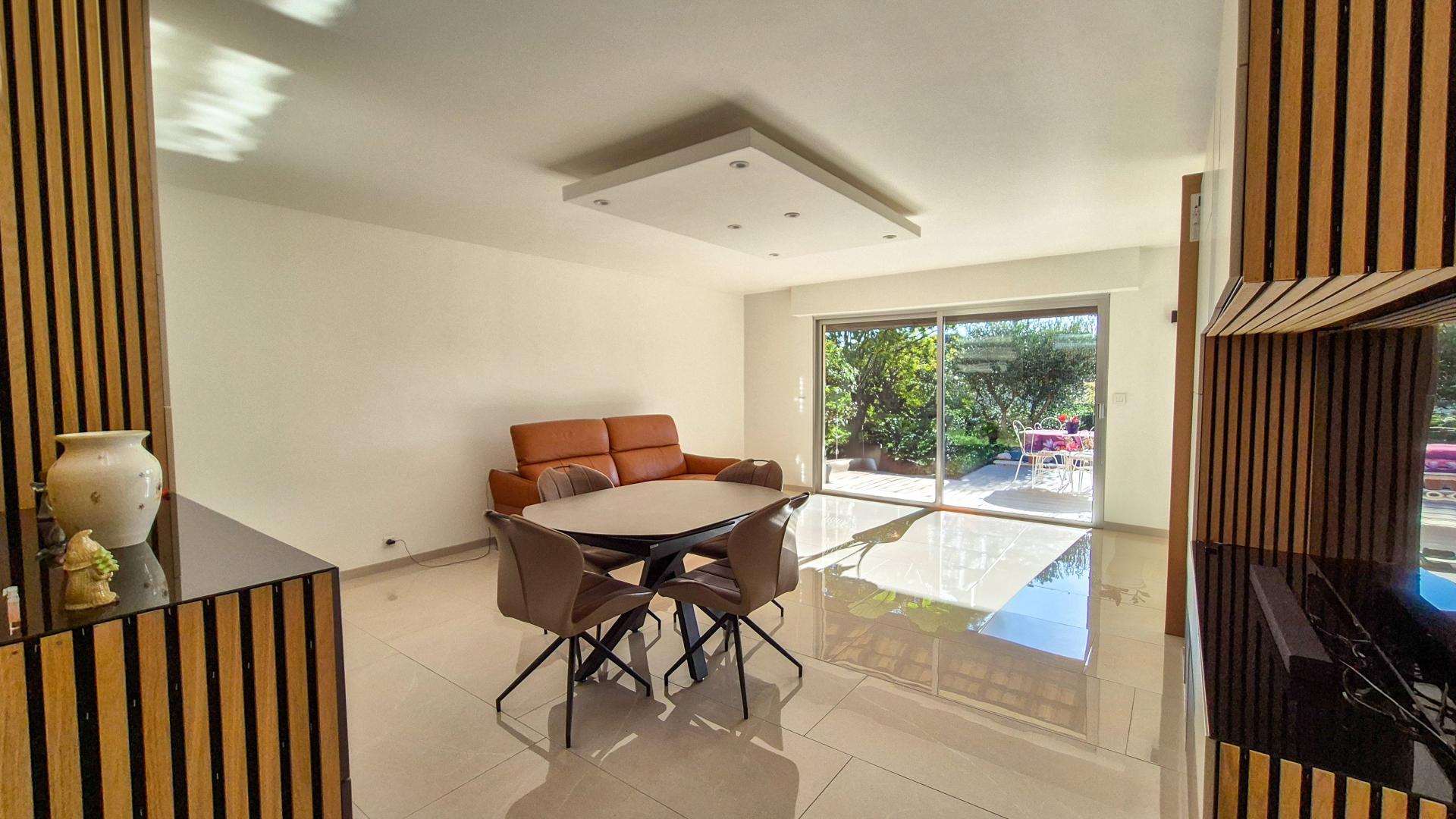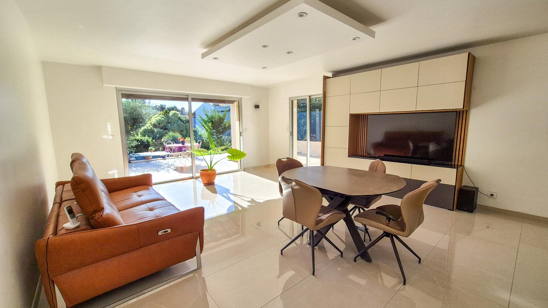 Vous hésitez entre un appartement et une villa? Celle-ci est faite pour vous! discrète mitoyenneté, entièrement rénovée avec des matériaux haut de gamme. Idéalement située à seulement 450 mètres de la plage de la Péguière.(10 mn à pied). - Séjour salon lumineux offrant une belle pièce de vie ouverte sur le jardin, exposé à l’est, doté de deux superbes terrasses, dont une couverte équipée d'une cuisine d'été pour profiter des repas en plein air, - Cuisine aménagée et équipée de qualité, - Suite parentale en rez-de-chaussée, avec salle d’eau privative. À l’étage : Deux chambres spacieuses, dont une avec terrasse bénéficiant d'un bel aperçu mer, une salle d’eau moderne, ainsi qu'un WC séparé. Grand cellier et 2 stationnements intérieurs. Bassin balinais pour un moment de détente, dans un environnement paisible. Portail électrique, climatisation réversible, marbre au sol pour un confort optimal. Ne tardez pas à venir la visiter, vous serez charmés par ses prestations et son emplacement.