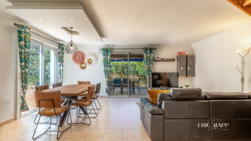 A Saint-Raphaël, dans un quartier résidentiel, venez découvrir cette maison semi-mitoyenne d'une surface de 95m2. Au rez-de-chaussée, vous bénéficierez d'un grand séjour exposé plein sud ouvrant sur un magnifique jardin de 300m2 avec salon de jardin et jacuzzi, une cuisine équipée et ouverte sur le séjour, un WC indépendant et un garage entièrement refait. A l'étage, vous retrouverez les trois chambres, ainsi qu'une belle salle d'eau avec WC. Dans la résidence, vous bénéficierez également de la piscine, ainsi que du terrain de tennis. A visiter sans tarder !