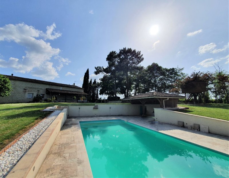 A découvrir à proximité de La Réole et du TER, à moins de 30 minutes de Langon et 1h de Bordeaux.<br/><br/>Très belle maison en pierre de 280m2 habitables.<br/><br/>Le hall d'entrée dessert d'un côté une grande salle de 34m2 et de l'autre un boudoir ainsi qu'un vaste salon / salle à manger de plus de 50m2 donnant sur une terrasse couverte et une véranda.<br/>En RDC on trouve également d'une cuisine aménagée, un cellier/buanderie, une grande chambre avec dressing, une salle d'eau avec WC séparé et un bureau.<br/><br/>A l'étage, vous découvrirez 3 chambres de 16 à 22m2, un bureau et une salle d'eau avec WC séparé.<br/><br/>Vous disposerez d'un garage de 36m2, une cave, un hangar indépendant de 190m2 et un grenier aménageable de 122m2.<br/><br/>Cette belle bâtisse de plus de 200 ans est édifiée sur un terrain joliment paysagé de 5600m2 où vous pourrez profiter de la piscine et sa vue dégagée sur la campagne environnante.