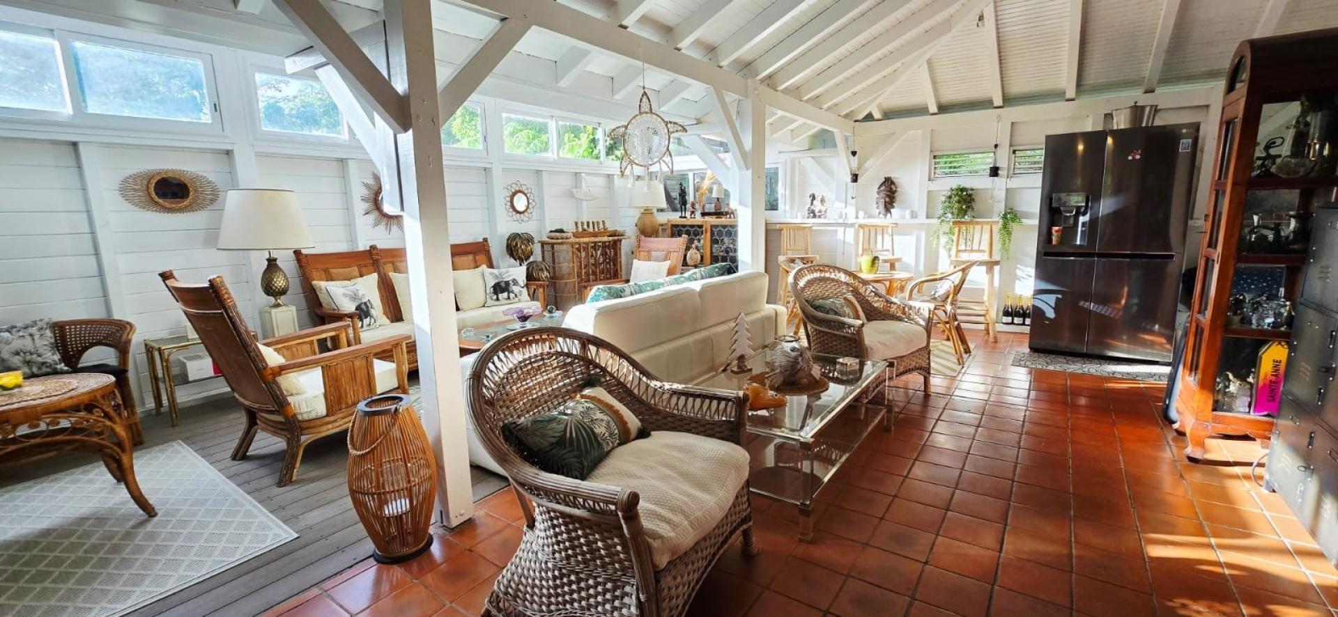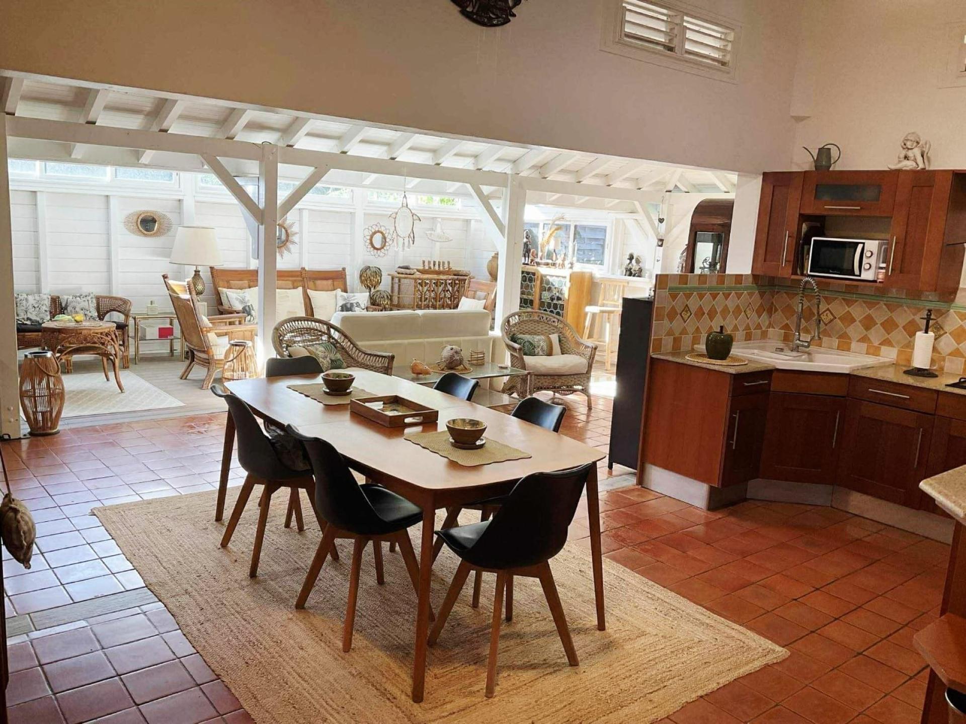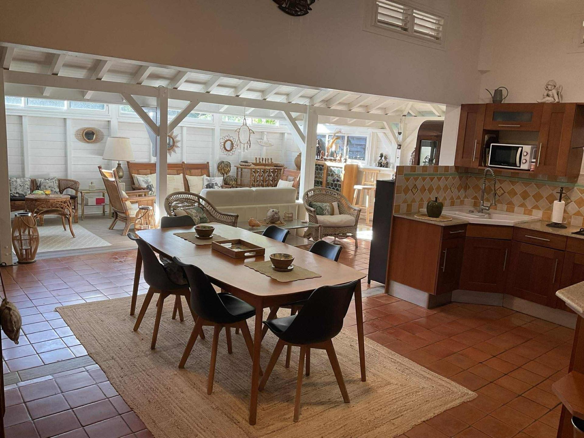 Sylvia Chesnier vous propose à Sainte-Anne, dans un quartier calme et résidentiel à quelques minutes à pied de la plage et proche des commerces, cette belle villa de type T3 avec studio indépendant, idéale en résidence principale ou pour un projet locatif. À l’intérieur, la maison principale offre une belle pièce de vie lumineuse, ouverte sur la terrasse et la piscine, une cuisine équipée, trois chambres climatisées, ainsi que trois salles d’eau et trois WC répartis entre la maison et le studio, pour un confort au quotidien. Le studio, totalement indépendant, dispose de sa propre pièce de vie avec coin nuit, kitchenette et salle d’eau, parfait pour recevoir famille, amis ou créer un revenu locatif. À l’extérieur, vous profitez d’une agréable piscine avec carbet, d’un jardin arboré facile d’entretien et d’un environnement paisible, véritable havre de paix à Sainte-Anne.