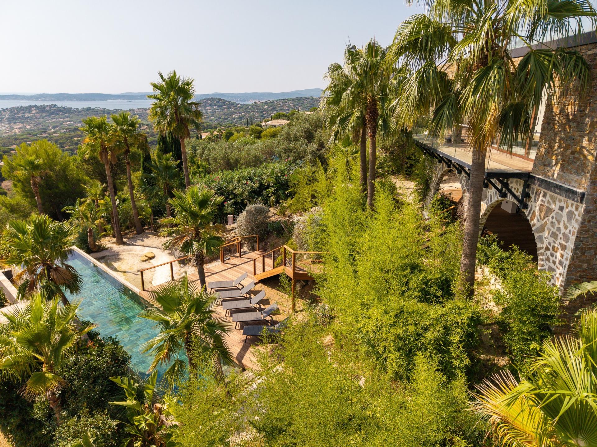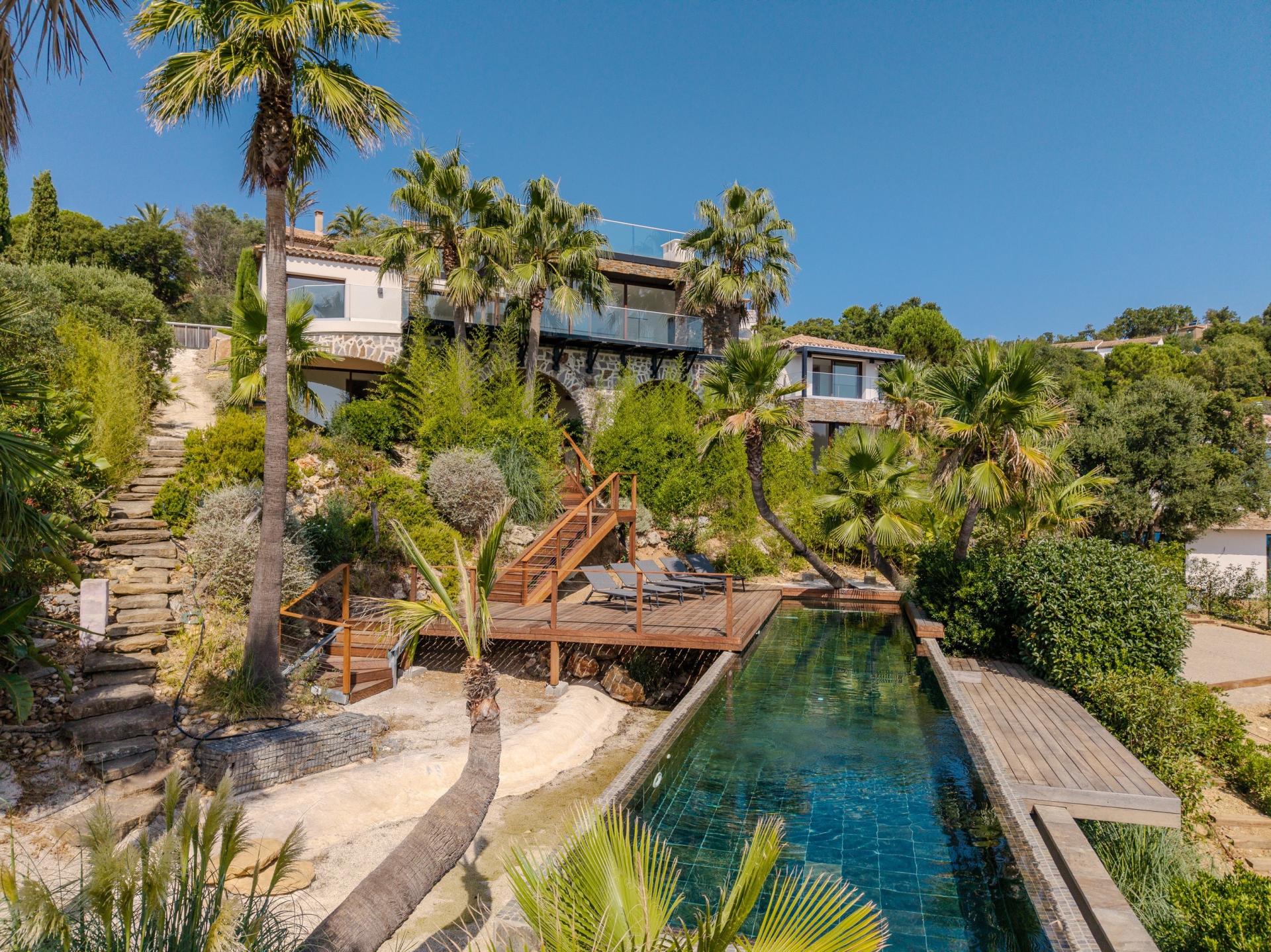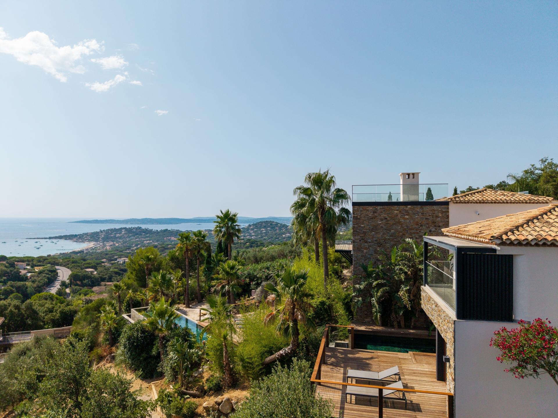 Nichée sur le Golfe de Saint-Tropez, cette villa d'exception est un véritable havre de paix, offrant une vue panoramique sur la mer. Le jardin paysagé, soigneusement aménagé, crée un cadre idyllique pour se détendre ou recevoir des invités. La piscine à débordement, invite à des moments de pur plaisir sous le soleil méditerranéen. À l'intérieur, le grand salon lumineux génère une atmosphère conviviale, parfaite pour des retrouvailles en famille ou entre amis. La cuisine américaine entièrement équipée ravira les amateurs de gastronomie, offrant un espace moderne et fonctionnel. Les quatre chambres en suite garantissent intimité et confort, chacune avec sa salle de bain privative. Pour accueillir vos invités, une maison d'amis indépendante dispose de trois chambres confortables, d'un salon spacieux et d'une terrasse ensoleillée, avec sa propre piscine privative. Cette propriété, représente une rare opportunité d'allier luxe et sérénité dans un cadre enchanteur.