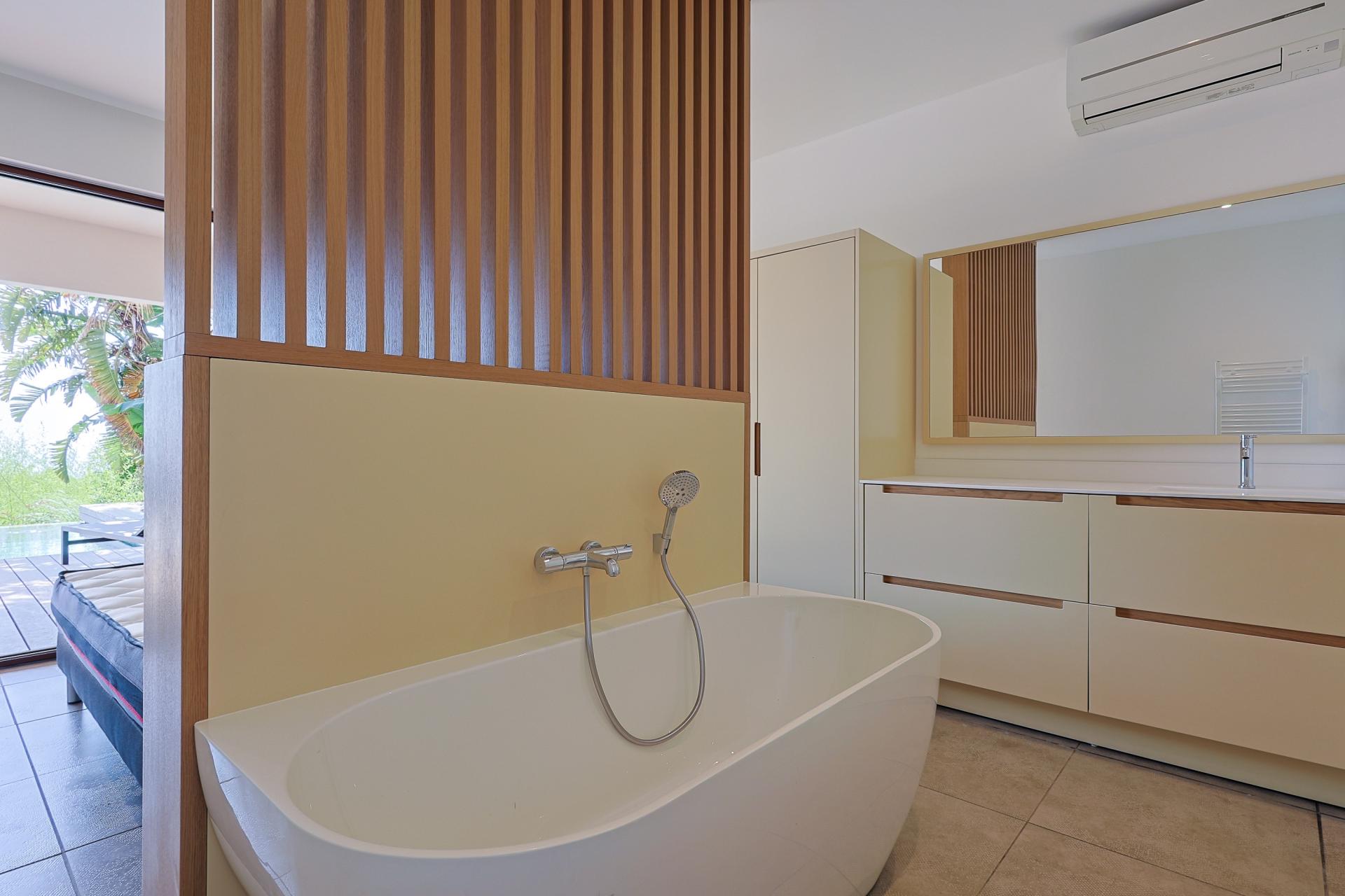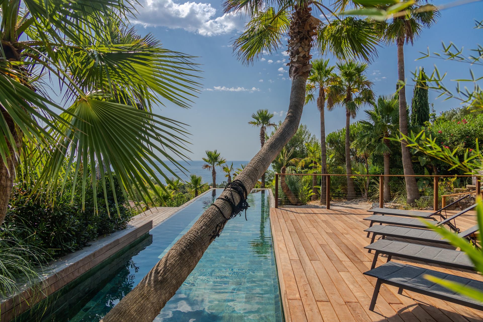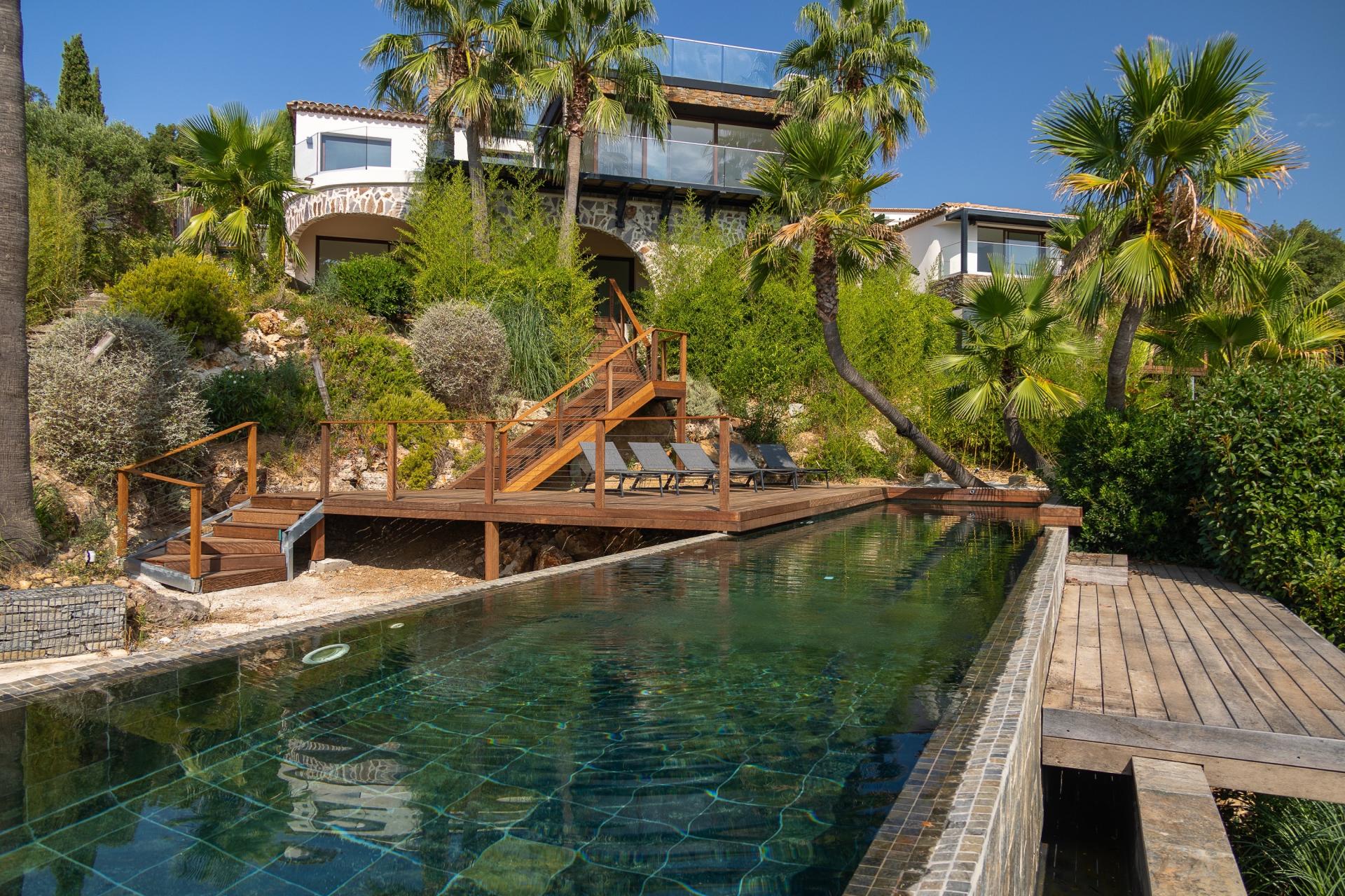 Nichée sur le Golfe de Saint-Tropez, cette villa d'exception est un véritable havre de paix, offrant une vue panoramique sur la mer. Le jardin paysagé, soigneusement aménagé, crée un cadre idyllique pour se détendre ou recevoir des invités. La piscine à débordement, invite à des moments de pur plaisir sous le soleil méditerranéen. À l'intérieur, le grand salon lumineux génère une atmosphère conviviale, parfaite pour des retrouvailles en famille ou entre amis. La cuisine américaine entièrement équipée ravira les amateurs de gastronomie, offrant un espace moderne et fonctionnel. Les quatre chambres en suite garantissent intimité et confort, chacune avec sa salle de bain privative. Pour accueillir vos invités, une maison d'amis indépendante dispose de trois chambres confortables, d'un salon spacieux et d'une terrasse ensoleillée, avec sa propre piscine privative. Cette propriété, représente une rare opportunité d'allier luxe et sérénité dans un cadre enchanteur.