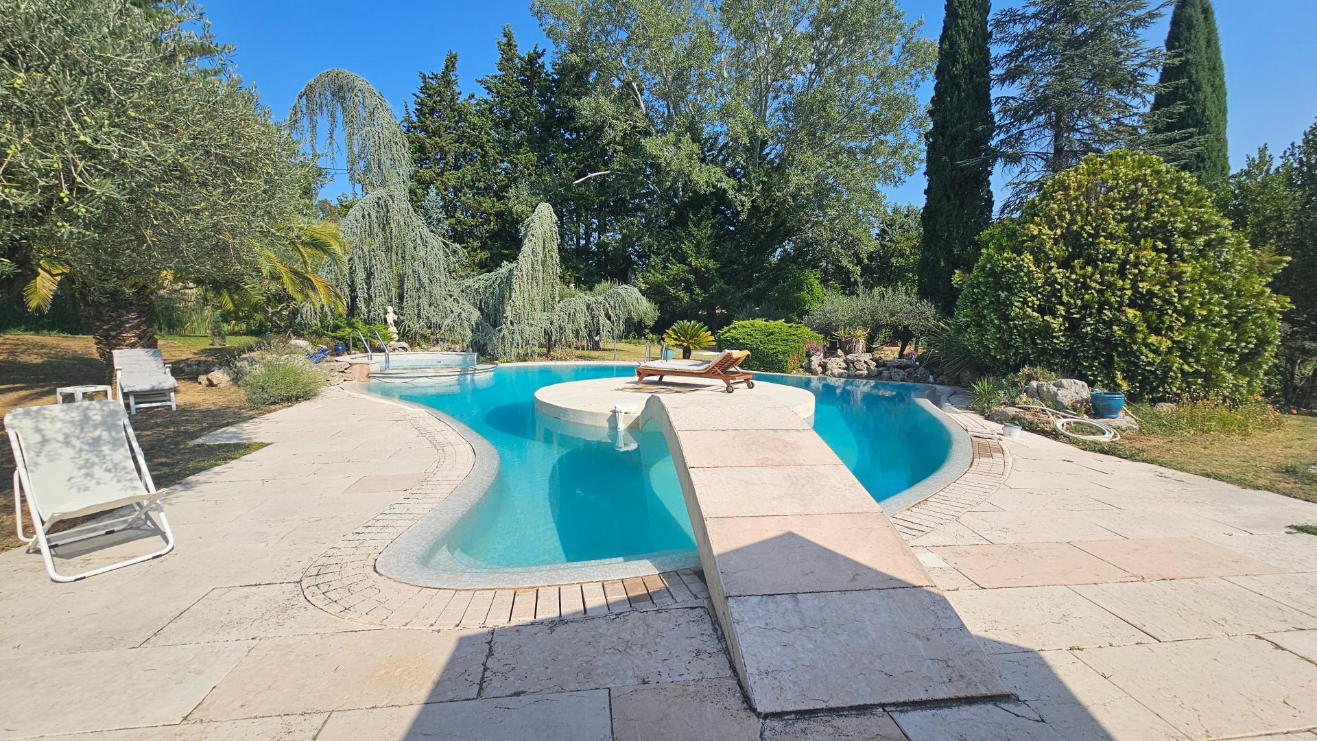 Amoureux de nature, d’espace et de lieux qui ne ressemblent à aucun autre… cette propriété va vous parler. Et même vous chuchoter “restez ici”. Implantée sur une parcelle de 6395 m2, dans un environnement verdoyant et préservé, cette maison de caractère d’environ 260 m² se distingue par son esprit atypique, ses volumes généreux et sa façon très élégante de vivre dedans… et surtout dehors. Dès l’entrée, l’atmosphère est posée : un salon lumineux avec cheminée, chaleureux et accueillant, invite naturellement à ralentir le rythme. La grande cuisine équipée, pensée pour les moments de partage, prolonge cette sensation de maison vivante et conviviale. Un cellier, deux belles chambres et une salle de bains complètent ce premier espace de vie, à la fois confortable et fonctionnel. Un patio baigné de lumière vous guide ensuite vers un véritable cœur de la maison : une superbe cuisine d’été entièrement aménagée, avec barbecue et four à pizza, parfaite pour recevoir toute l’année. Les larges ouvertures dévoilent alors une piscine au design remarquable, accompagnée de son bassin à débordement, offrant une ambiance résolument méditerranéenne… et franchement difficile à quitter. Un espace complémentaire, largement ouvert sur le jardin, laisse libre cours à tous vos projets : suite parentale indépendante, salon secondaire, espace bien-être, atelier d’artiste… Il bénéficie déjà de sa propre salle d’eau, pour une autonomie totale. À l’extérieur, le terrain paysager est un véritable décor de carte postale : de belles essences, près de quarante oliviers, un bassin à poissons alimenté par l’eau du canal d’arrosage, et une ambiance naturelle propice au calme absolu. À la tombée du jour, l’éclairage subtil du jardin met en scène chaque recoin et transforme les soirées en instants suspendus. La propriété dispose également d’un appartement indépendant, idéal pour développer une activité de location saisonnière ou de gîte, ou tout simplement pour recevoir famille et amis en toute indépendance. Et pour les amateurs de grands espaces utiles (et pas seulement décoratifs ?), un vaste garage indépendant de 110 m² complète l’ensemble. Parfait pour véhicules de collection, atelier, stockage… ou même un futur projet de dépendance ou de loft. ✨ Une propriété rare, singulière et généreuse, où l’on vient chercher bien plus qu’une maison : un art de vivre, de l’espace, de la nature… et ce petit supplément d’âme que l’on ne trouve pas partout.