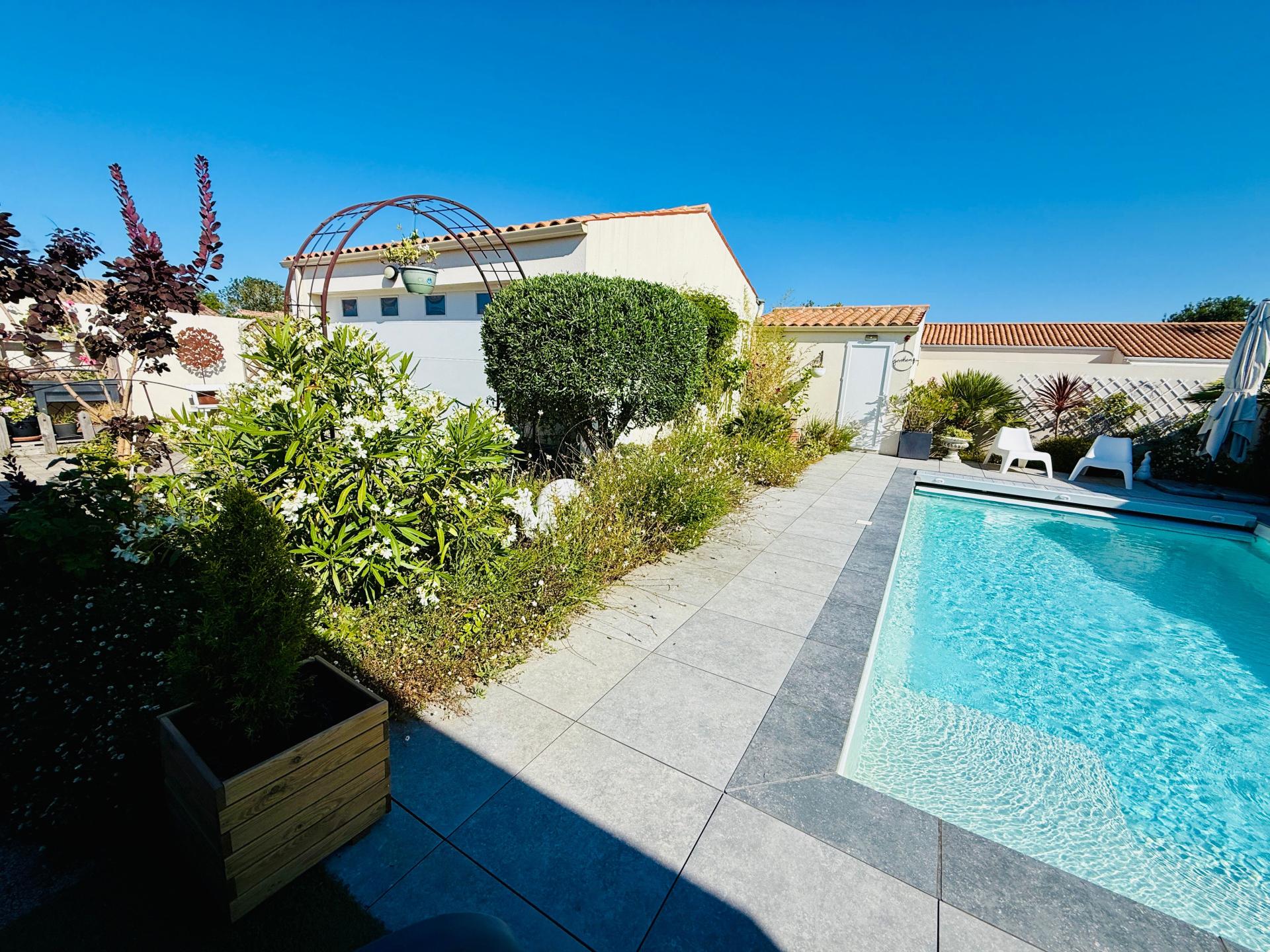 Idéalement située proche toutes commodités, venez découvrir ce superbe plain pied non mitoyen d'environ 133 m² sur une parcelle entièrement close d' environ 500 m2 à l'abri des regards. L’intérieur, lumineux, se compose d'une entrée avec placards desservant un beau salon/séjour avec véranda récente donnant sur la piscine, une cuisine aménagée/équipée et une buanderie.