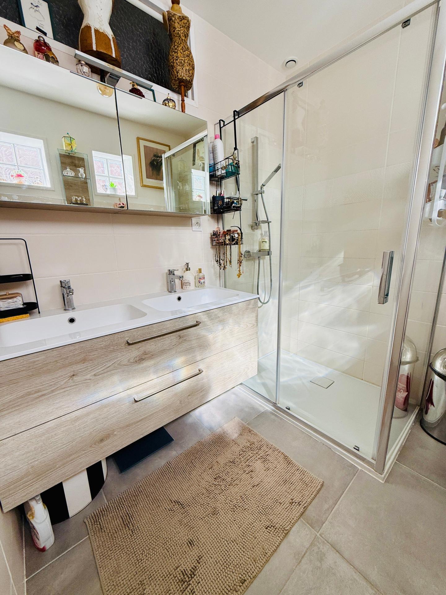 De plus, elle bénéficie de 3 chambres avec placards dont une suite parentale avec sa salle d'eau privative et wc, une seconde salle d'eau et wc séparé.