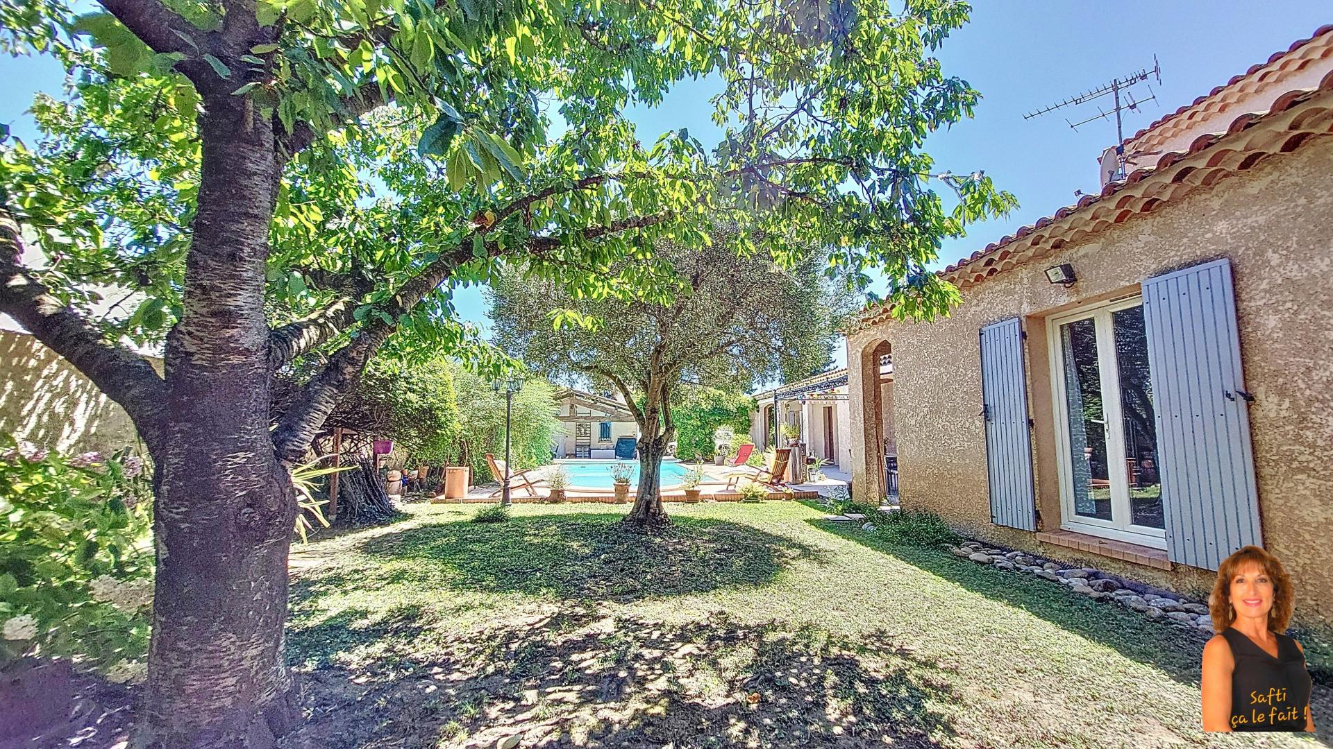 Secteur recherché Salon Ouest, sur une parcelle de plus de 1000 m² sans vis-à-vis, venez découvrir cette magnifique bâtisse de 2003, constructeur "La Provençale" comprenant 2 habitations indépendantes. 1* Une maison R+1 de 130 m² environ (4 chambres) vous propose au rez-de-chaussée, une entrée avec placard, un séjour de 41 m² avec poêle, une cuisine fermée avec buanderie attenante, deux chambres avec placard/dressing, une salle de bain/douche et des WC séparés. À l'étage, un dégagement mène à deux chambres avec placards, une salle d'eau et des WC séparés. Vous bénéficiez sur les 2 niveaux d'une climatisation gainable air/zone pour un confort optimal. 2* Une 2ème maison attenante mais non communicante (2 chambres), 70m² de plain-pied, vous offre un séjour de 24m² avec accès sur la cuisine fermée + buanderie, deux chambres spacieuses, une grande salle d'eau avec wc. Cette maison dispose d'un confort moderne avec chauffage au sol électrique et climatisation. Chaque habitation dispose de son propre espace terrasse face à une superbe piscine au sel 10x5 pour d'agréables moments de détente en famille ou entre amis. Un vaste garage de 42 m², avec double entrée et portes motorisées, permet de garer deux véhicules côte à côte et offre un bel espace de stockage ou de bricolage ainsi qu'un autre espace terrasse protégé aménageable en cuisine d'été. Possibilité également de stationner plusieurs véhicules sur la parcelle. Cette propriété est construite sur vide sanitaire, reliée au tout à l'égout, elle bénéficie également de l'eau d'un forage pour la piscine et le jardin avec arrosage automatique. L'isolation des combles a été revue en 2022. Belles prestations générales : climatisation gainable, portail et portes garage motorisées, fenêtres PVC/DV, DPE C. Vous souhaitez vivre à côté de vos parents retraités en gardant toute votre intimité? Vous exercez une profession libérale? Vous avez besoin d'espace pour recevoir famille et amis? Cette propriété est faite pour vous !! .