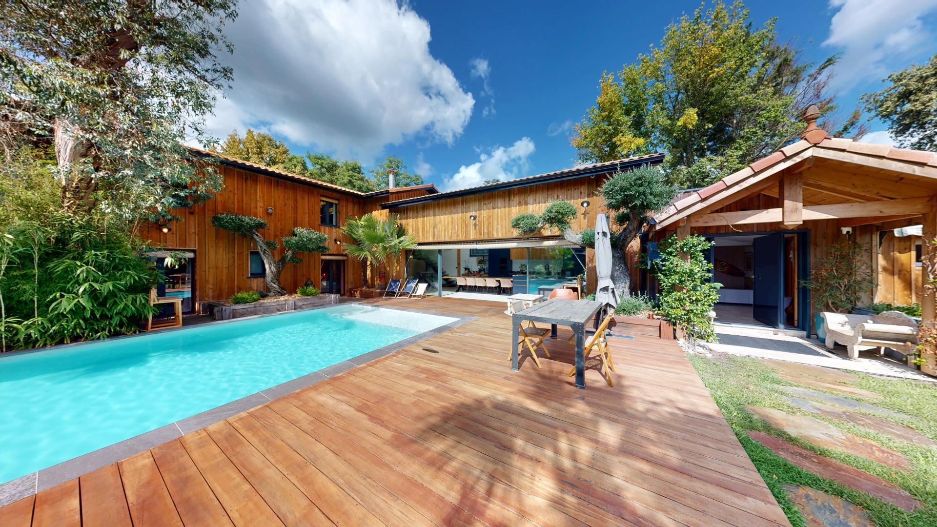 Exclusivité. Dans un hameau paisible, découvrez cette maison récente de 185 m² sur parc paysager de 1 125 m², véritable havre de paix planté d’essences rares. Pièce de vie baignée de lumière grâce à sa grande baie vitrée, 6 pièces dont 4 chambres, suite parentale, mezzanine, 3 salles d’eau et 3 WC. Prestations recherchées : cuisine d’été, dépendance, piscine, double garage et vaste stationnement. Une configuration idéale pour la vie de famille et les réceptions : espaces de jour ouverts, suite indépendante pour l’intimité, extérieurs pensés pour le quotidien comme pour les loisirs. Cadre privilégié à Sanguinet : plages et activités nautiques, commerces, restaurants, écoles et services à proximité, forêts et parcs naturels, accès routiers aisés vers les villes voisines. Prix : 745 000 €. Visites sur RDV. Contactez-moi pour une présentation personnalisée et votre visite.