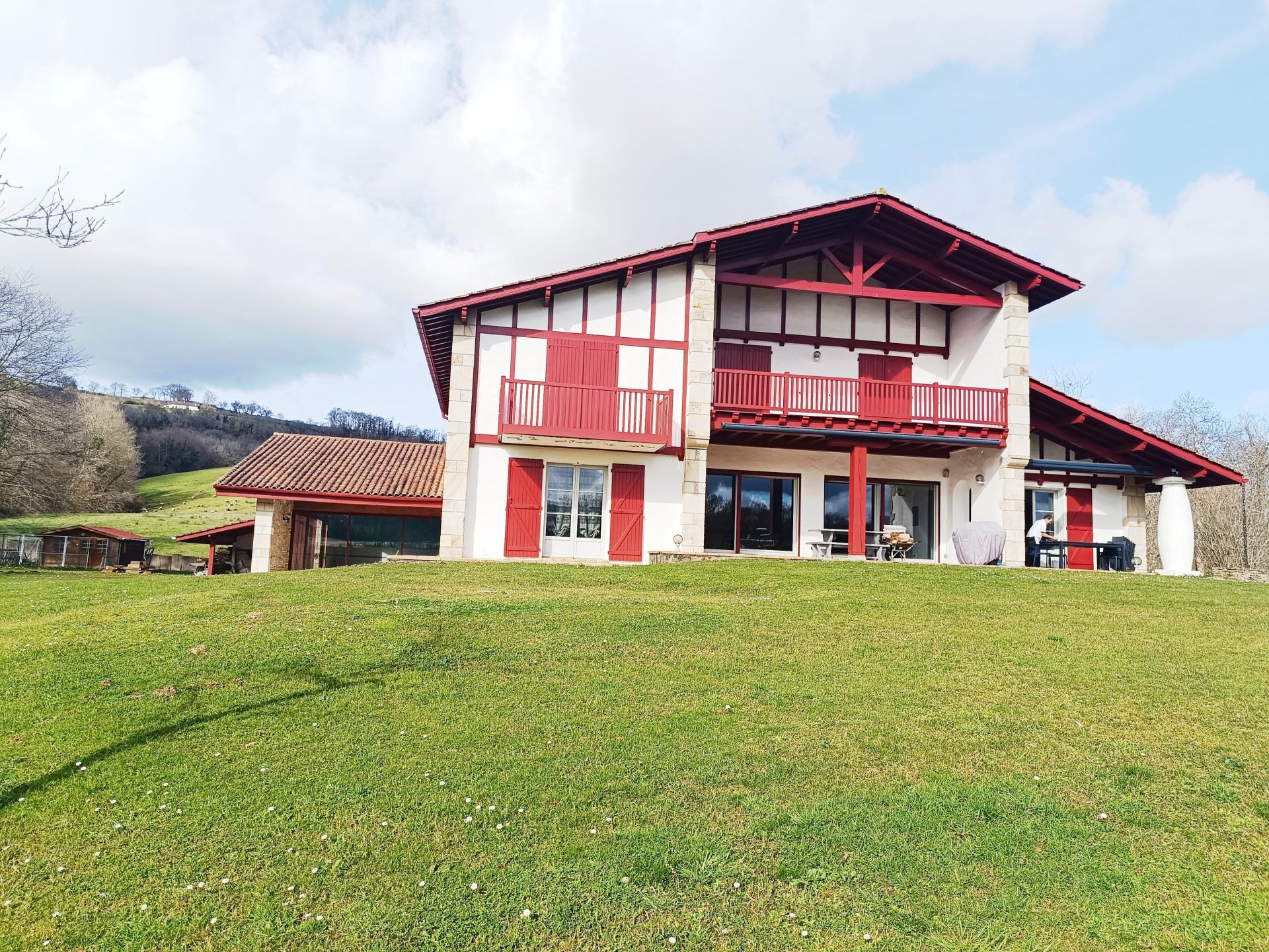 Située à Sare (64310), cette magnifique propriété bénéficie d'un emplacement idéal entre mer, montagne et campagne. Proche des commodités telles que les écoles, le lycée et la crèche, elle offre un cadre de vie paisible et sécurisé. Les amoureux de la nature seront comblés par cette exposition plein sud offrant une vue panoramique exceptionnelle. De plus, les transports en commun sont facilement accessibles grâce à la proximité des lignes de bus. À l'extérieur, cette splendide demeure dispose d'un parc paysager soigné et propose un vaste terrain de 7860 m² comprenant 10 places de parking, un garage, un box et des dépendances. Les journées ensoleillées pourront être appréciées autour de la piscine intérieure de 10x6 mètres au sel, offrant ainsi un espace de détente privilégié au sein de la propriété. À l'intérieur, cette villa de 650 m² construite en 1994 se compose de 11 pièces, dont 8 chambres climatisées avec salles de bain attenantes, 10 toilettes, une chambre de service, une salle de réception ainsi qu'une cuisine équipée. Les caractéristiques modernes telles que l'interphone, le digicode et la connexion fibre ajoutent un confort supplémentaire à ce bien d'exception.