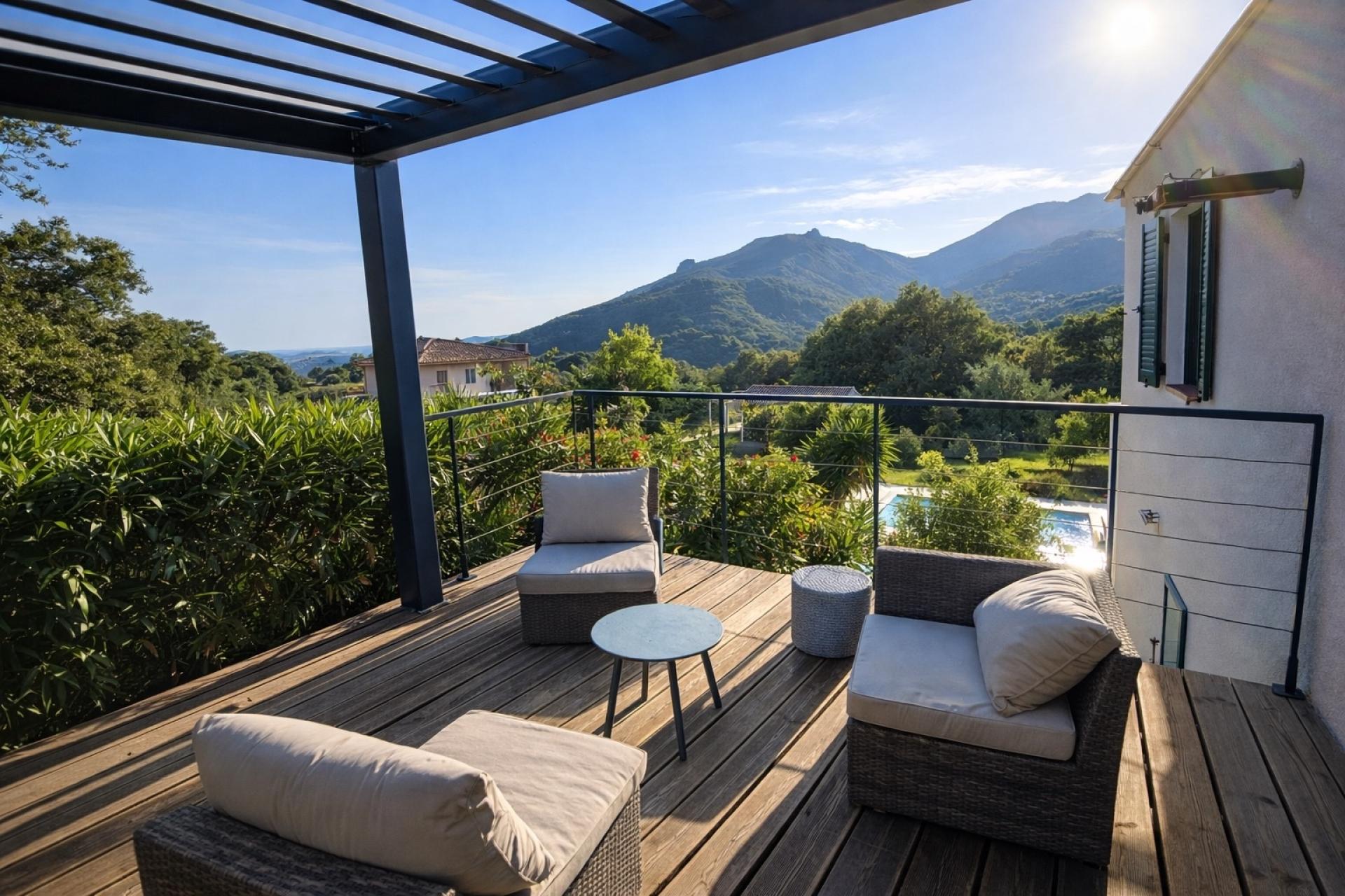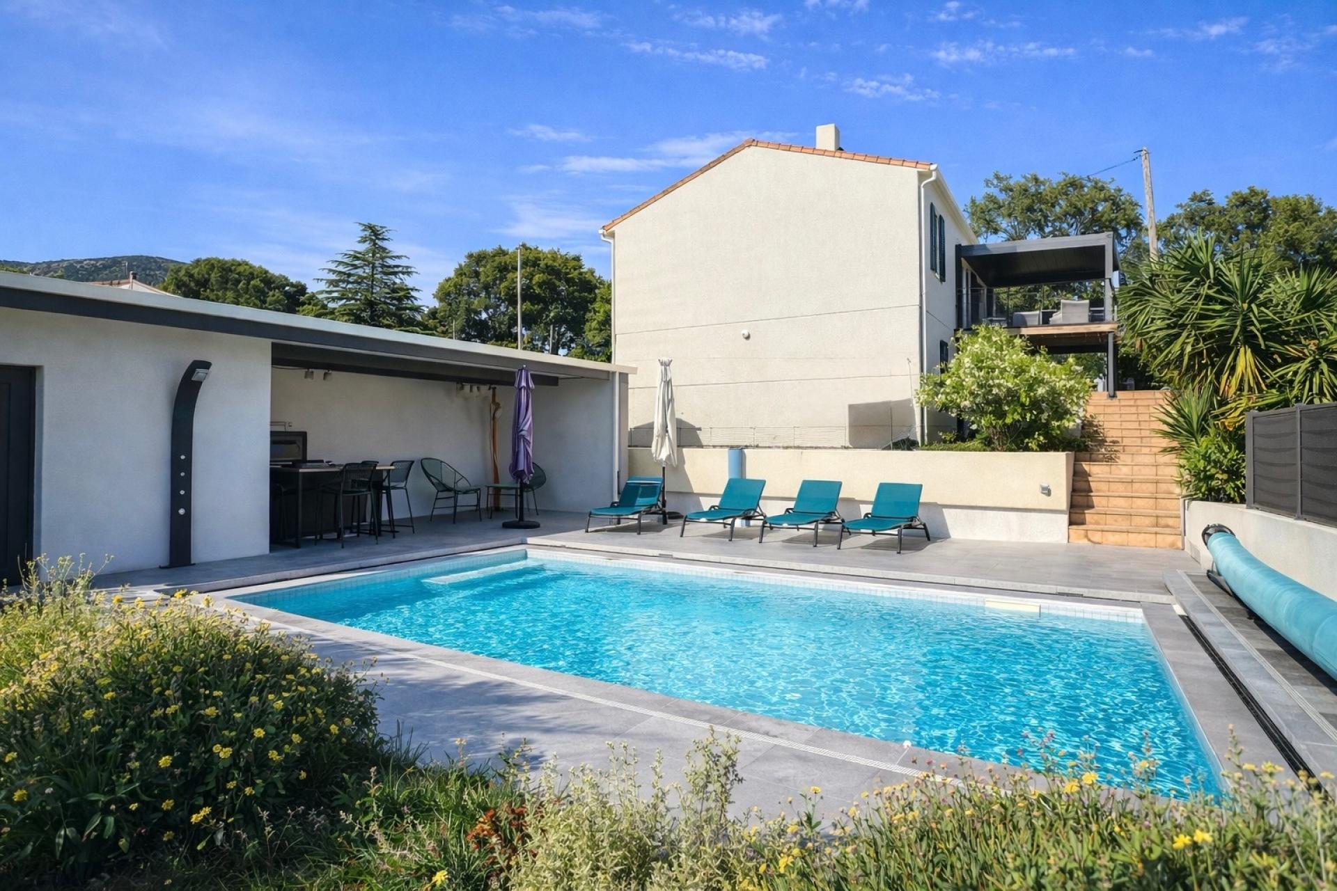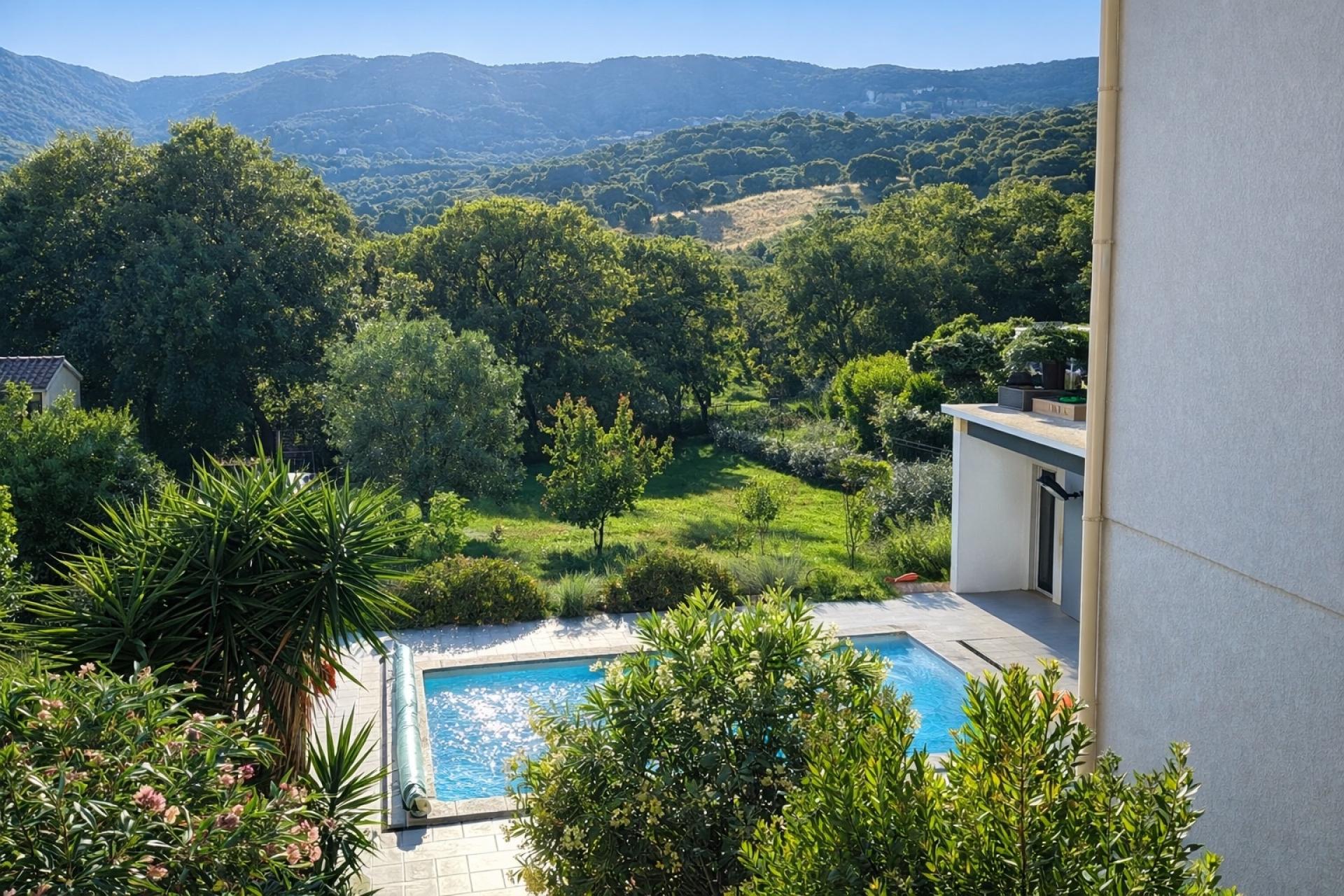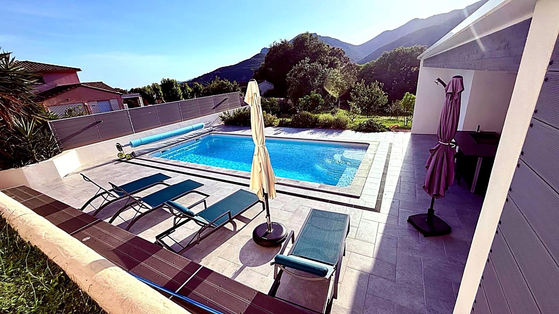 Hors lotissement, au calme absolu et à 15mn d'Ajaccio, cette magnifique villa familiale T5 entièrement rénovée vous séduira par ses prestations haut de gamme et son environnement exceptionnel. La villa se compose en son rdc d'un séjour lumineux de 43m² avec salon, espace repas et cuisine équipée ouverte, une buanderie, un wc, une suite parentale avec chambre de 18.5m², dressing et salle d'eau privative avec wc de 10m². Une 2ème belle chambre avec sa salle de bains. A l'étage, un espace détente/TV, 2 chambres supplémentaires, une salle d'eau et un wc. De plus, un garage indépendant de 47m², une piscine avec pool house, du terrain permettant de créer un espace de jeux sécurisé, une cabane, un potager... ou tout cela ! Un véritable havre de paix pour les amoureux de nature, de confort et d'intimité, où chaque détail a été pensé pour une vie agréable et sereine. Pour plus d'informations ou organiser une visite, contactez Nadège LAVENTURIER au 06.86.65.88.98 .
